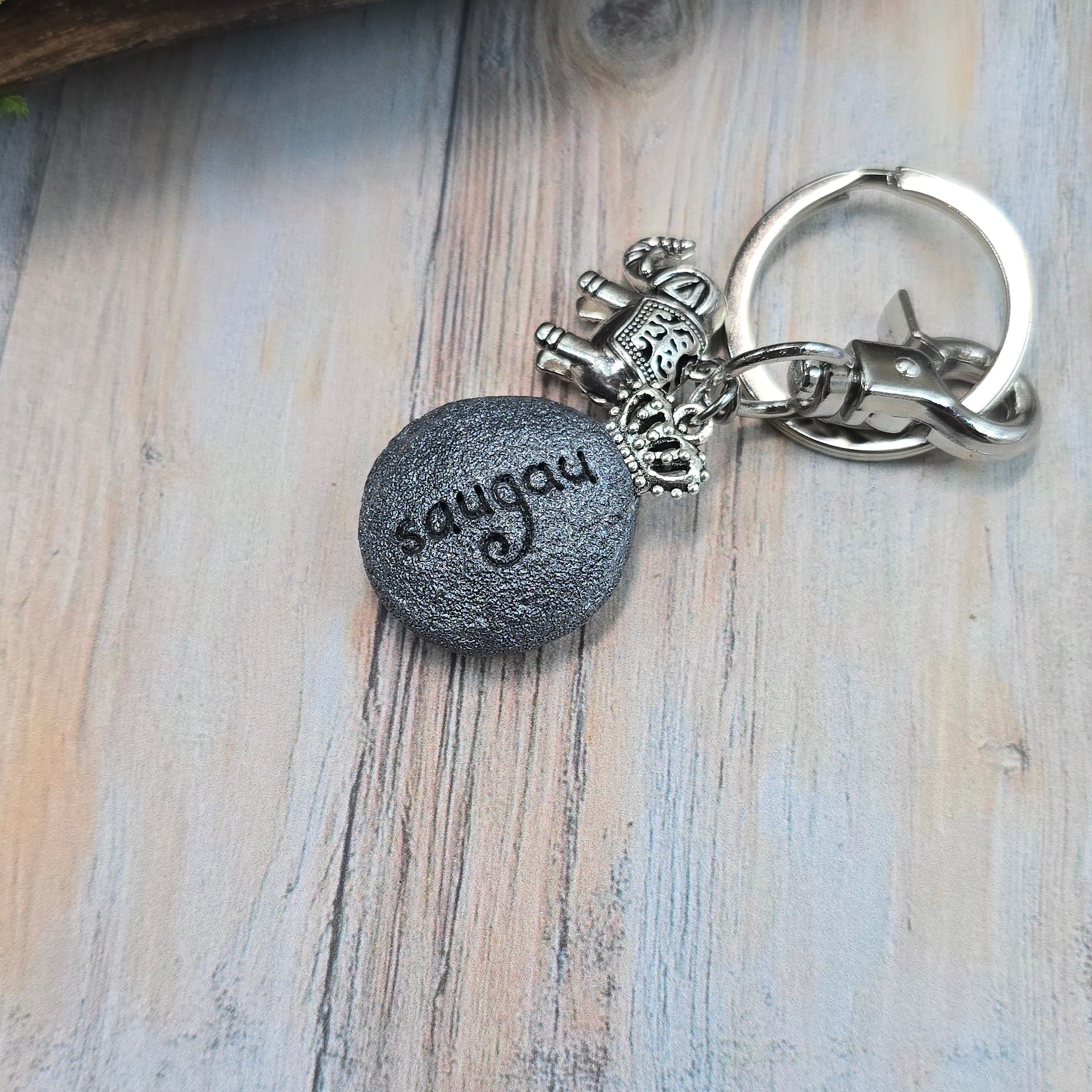 Šis nedidelis, bet ypatingas raktų pakabukas – tai ne tik papuošimas ar funkcionalus daiktas, bet ir tylus tavo ar mylimo žmogaus sargas. Jo širdyje slypi natūralus labradorito akmuo – akmuo, kuris nuo seno laikomas apsaugos, intuicijos ir vidinės stiprybės simboliu.