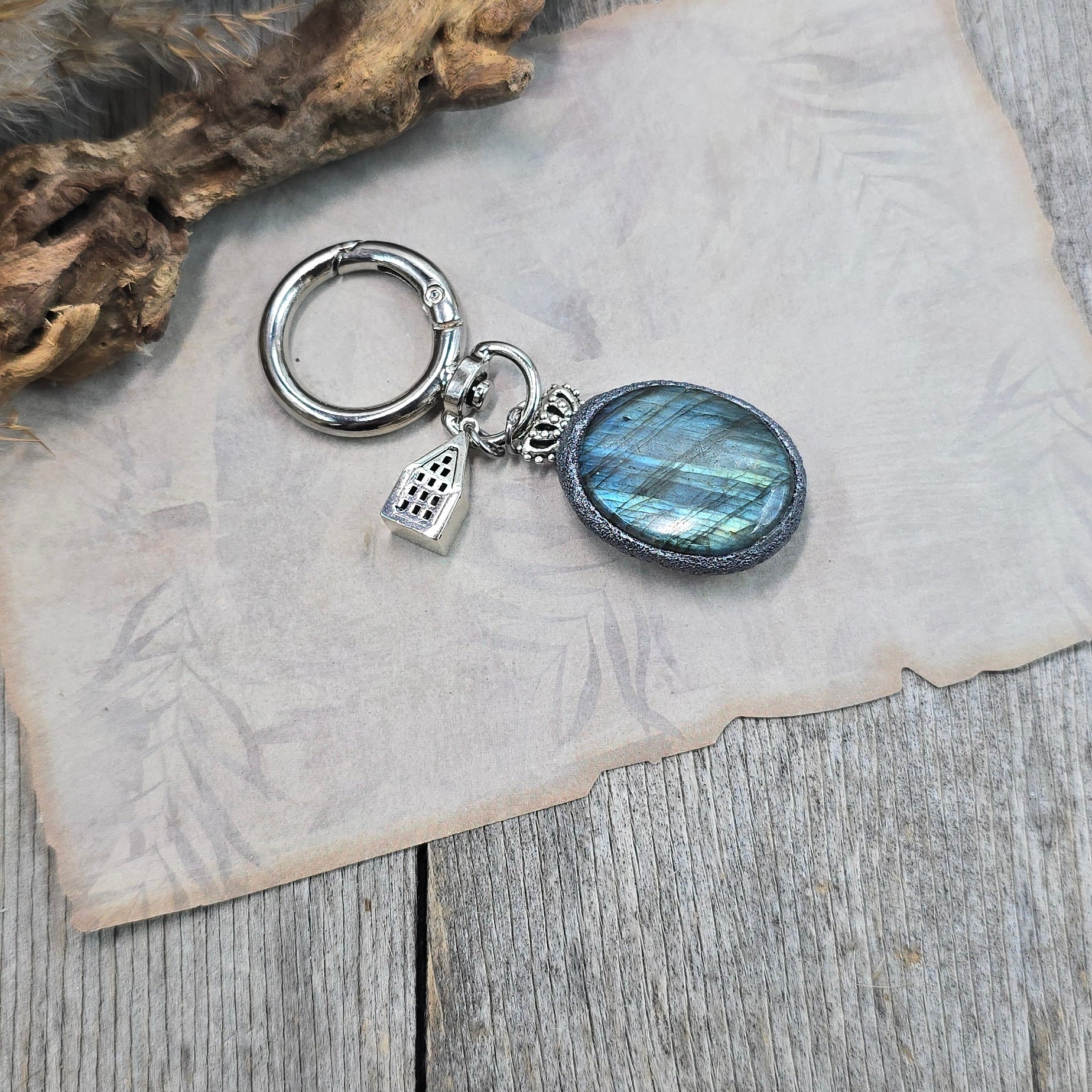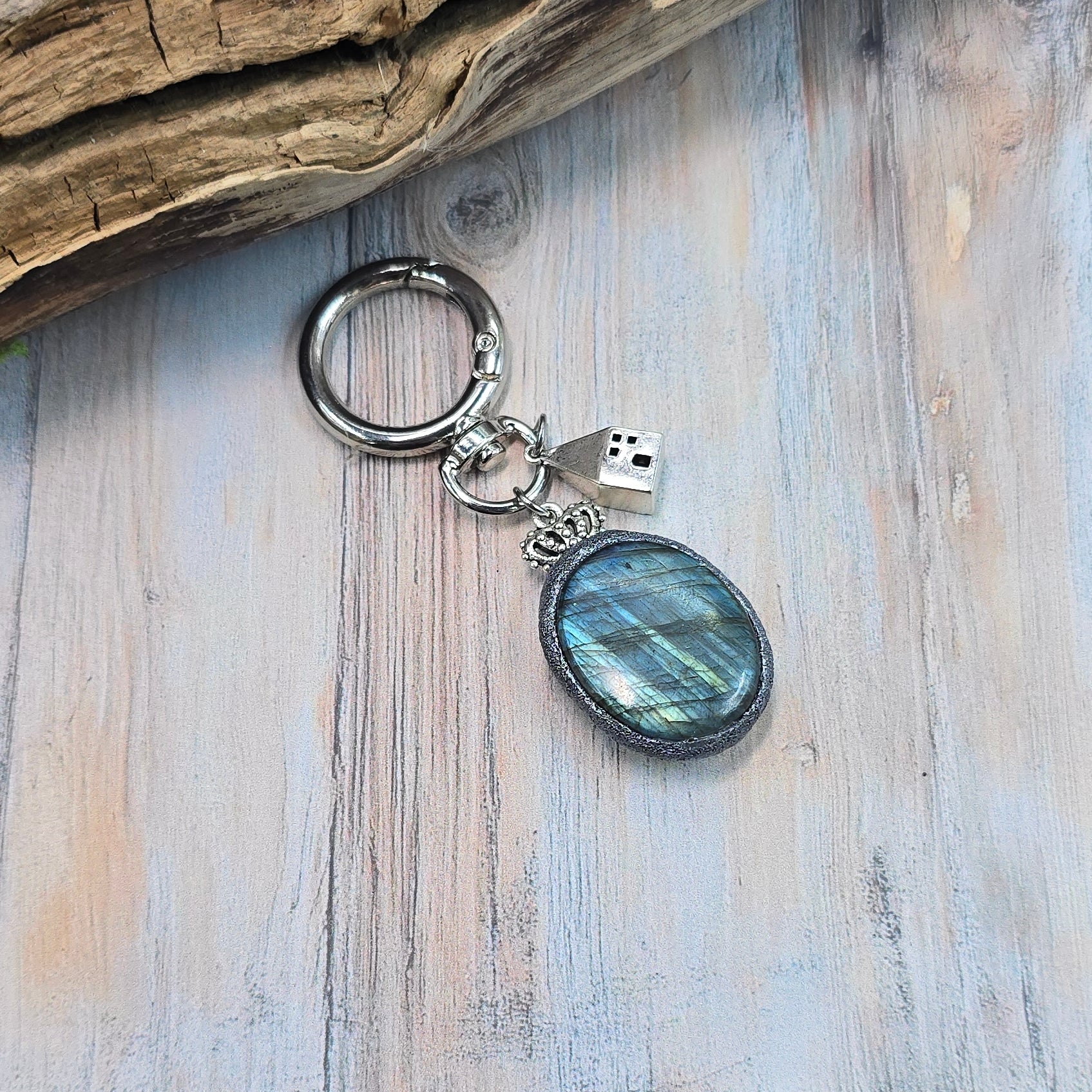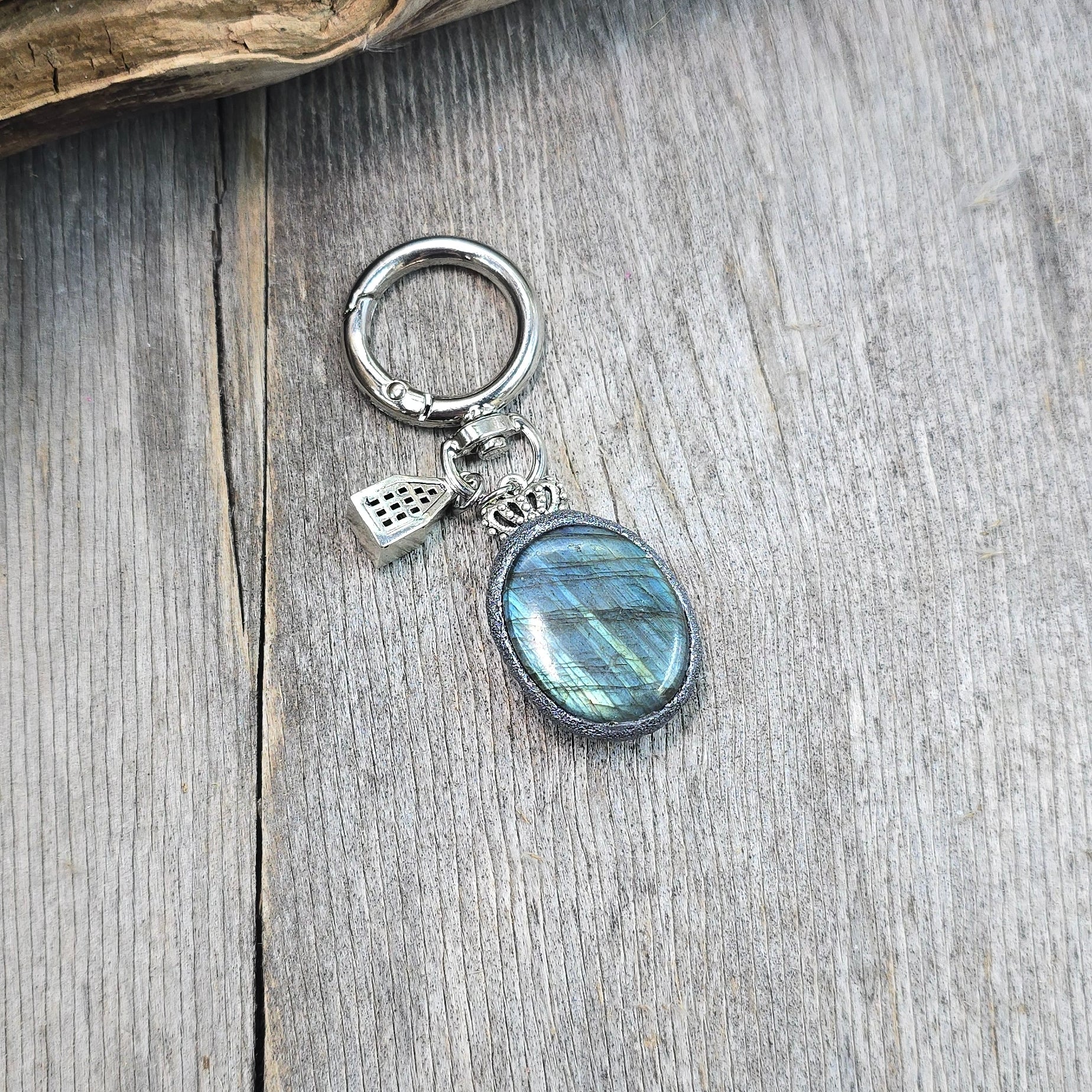 Šis nedidelis, bet ypatingas raktų pakabukas – tai ne tik papuošimas ar funkcionalus daiktas, bet ir tylus tavo ar mylimo žmogaus sargas. Jo širdyje slypi natūralus labradorito akmuo – akmuo, kuris nuo seno laikomas apsaugos, intuicijos ir vidinės stiprybės simboliu.