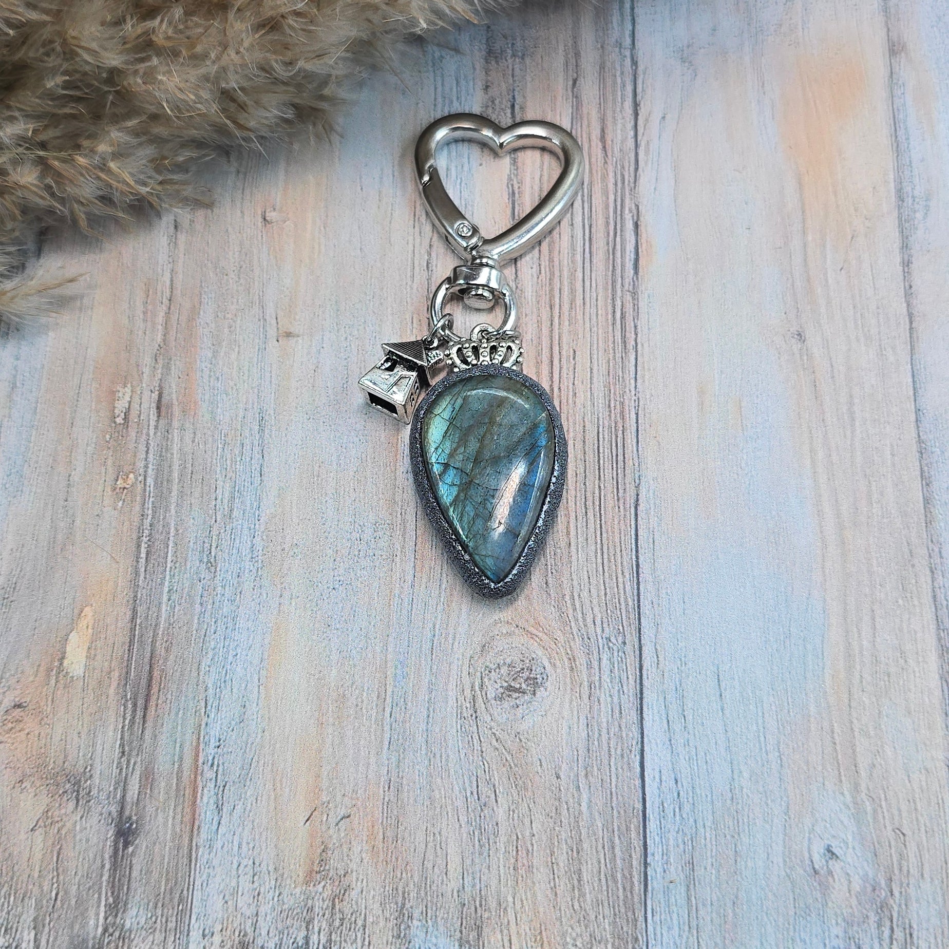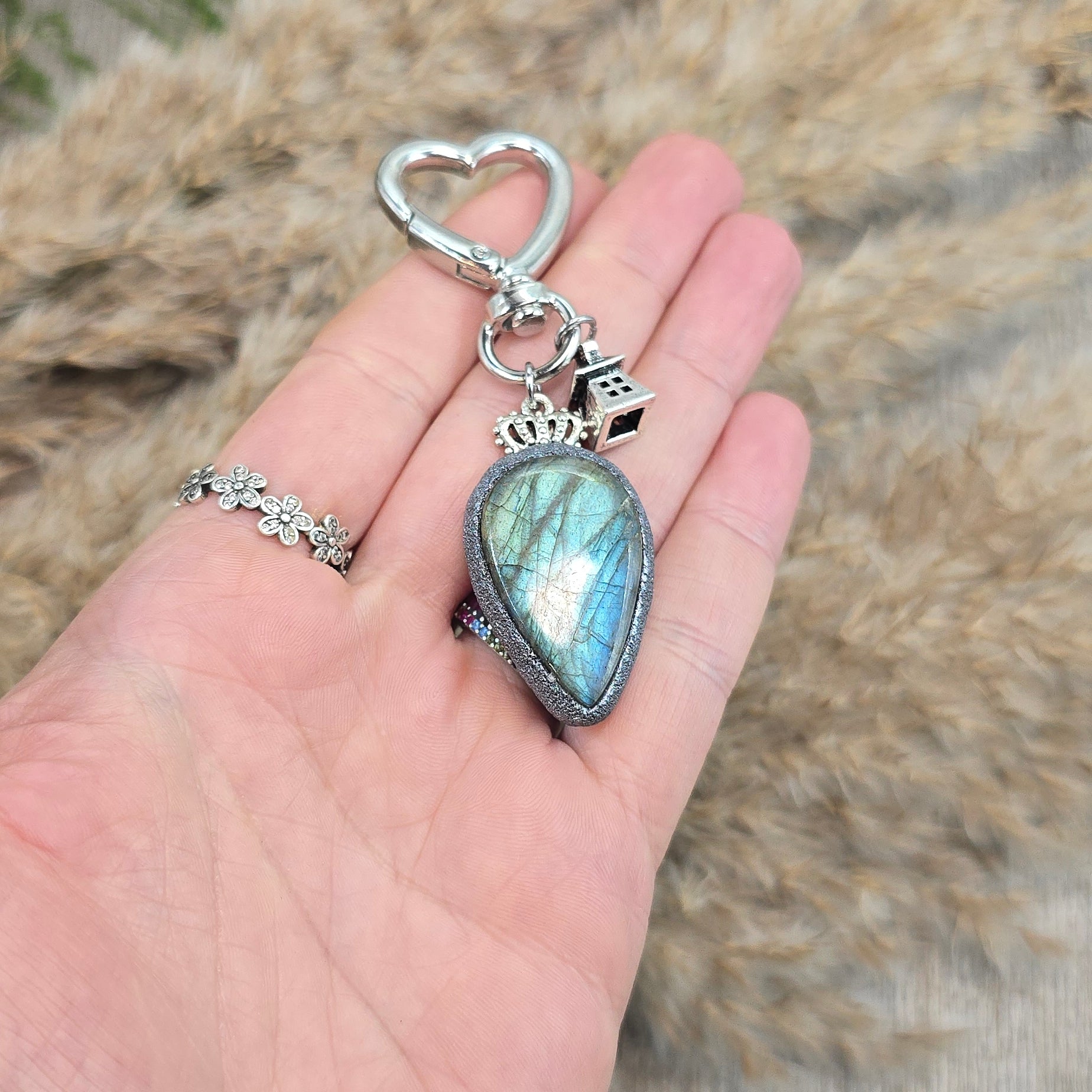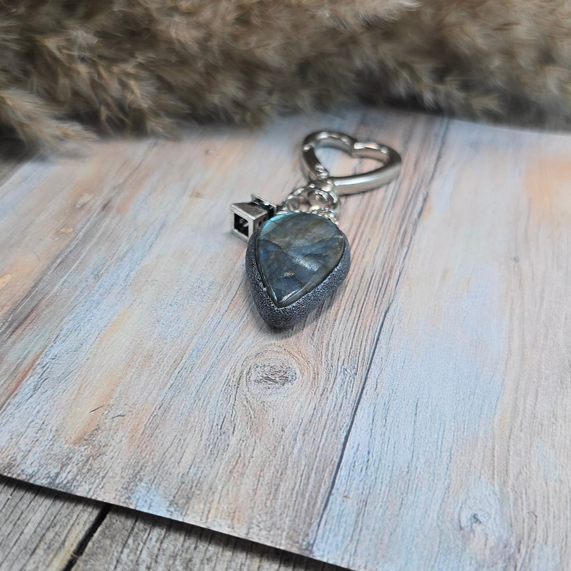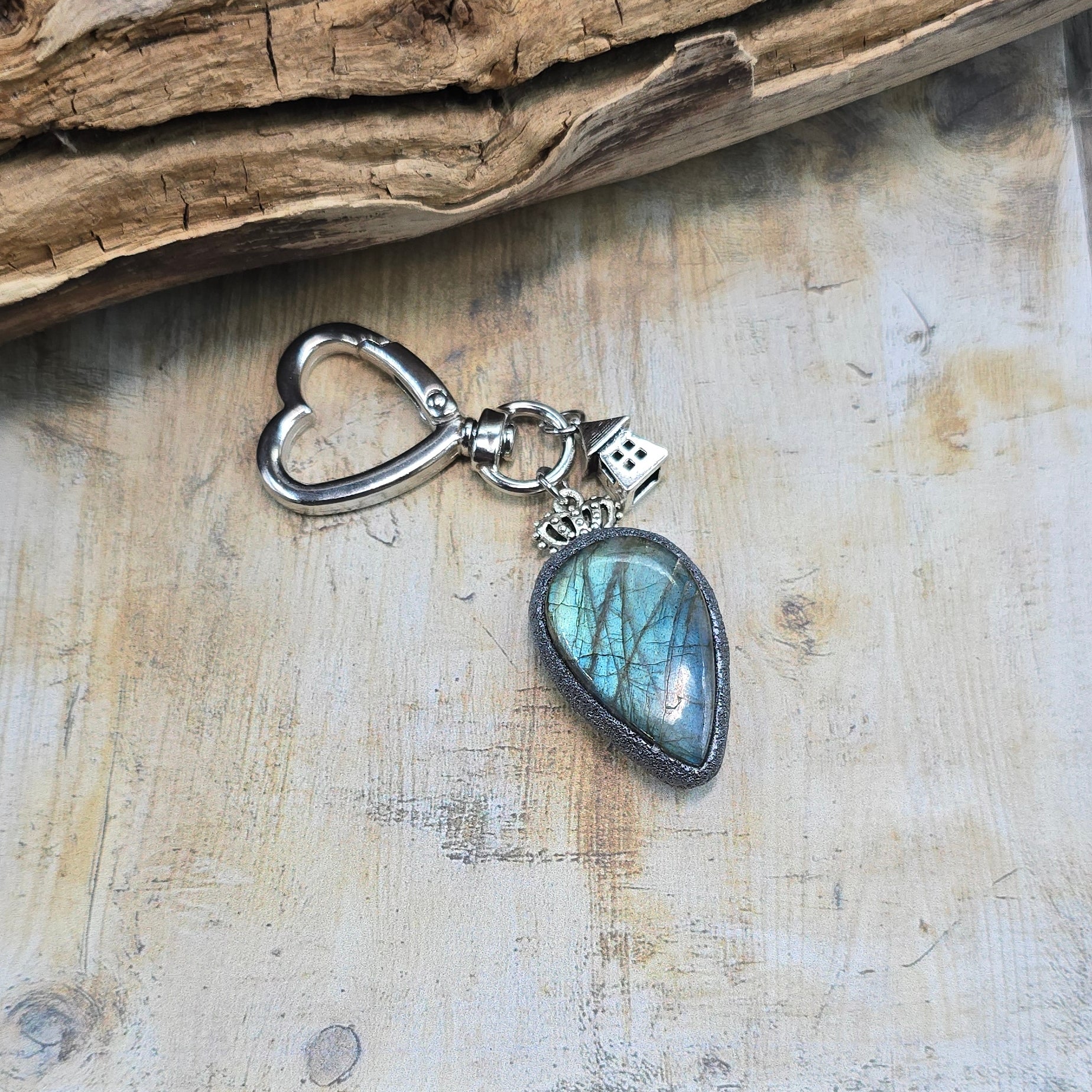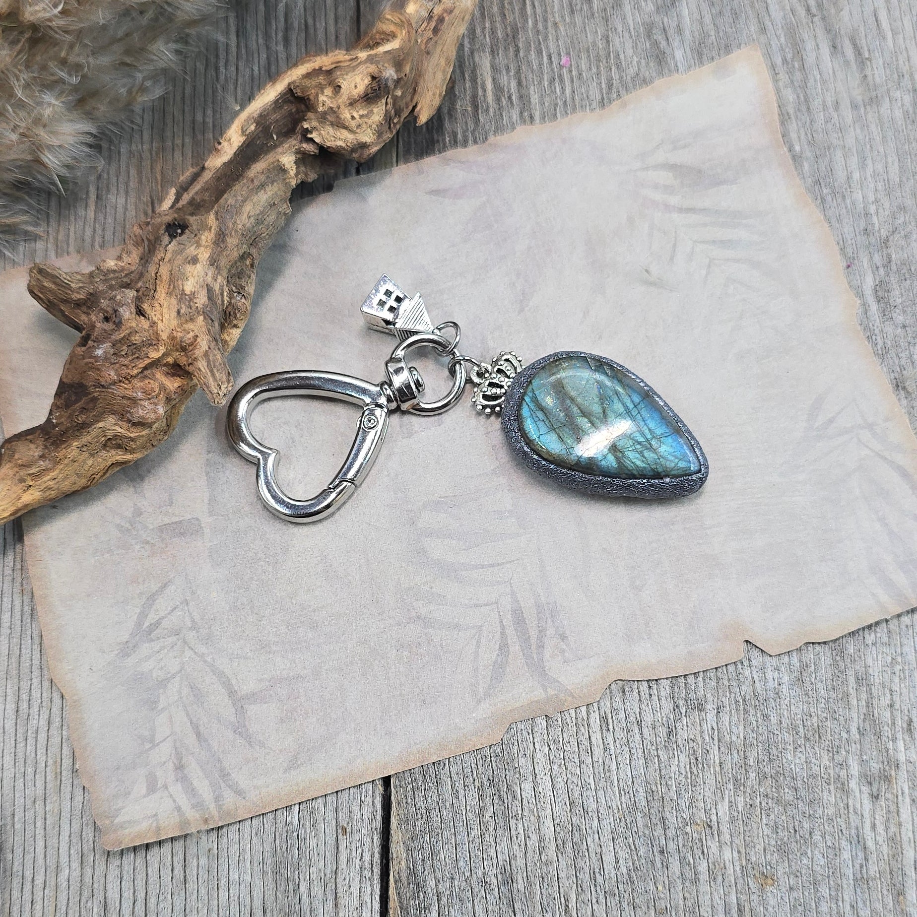 Šis nedidelis, bet ypatingas raktų pakabukas – tai ne tik papuošimas ar funkcionalus daiktas, bet ir tylus tavo ar mylimo žmogaus sargas. Jo širdyje slypi natūralus labradorito akmuo – akmuo, kuris nuo seno laikomas apsaugos, intuicijos ir vidinės stiprybės simboliu.