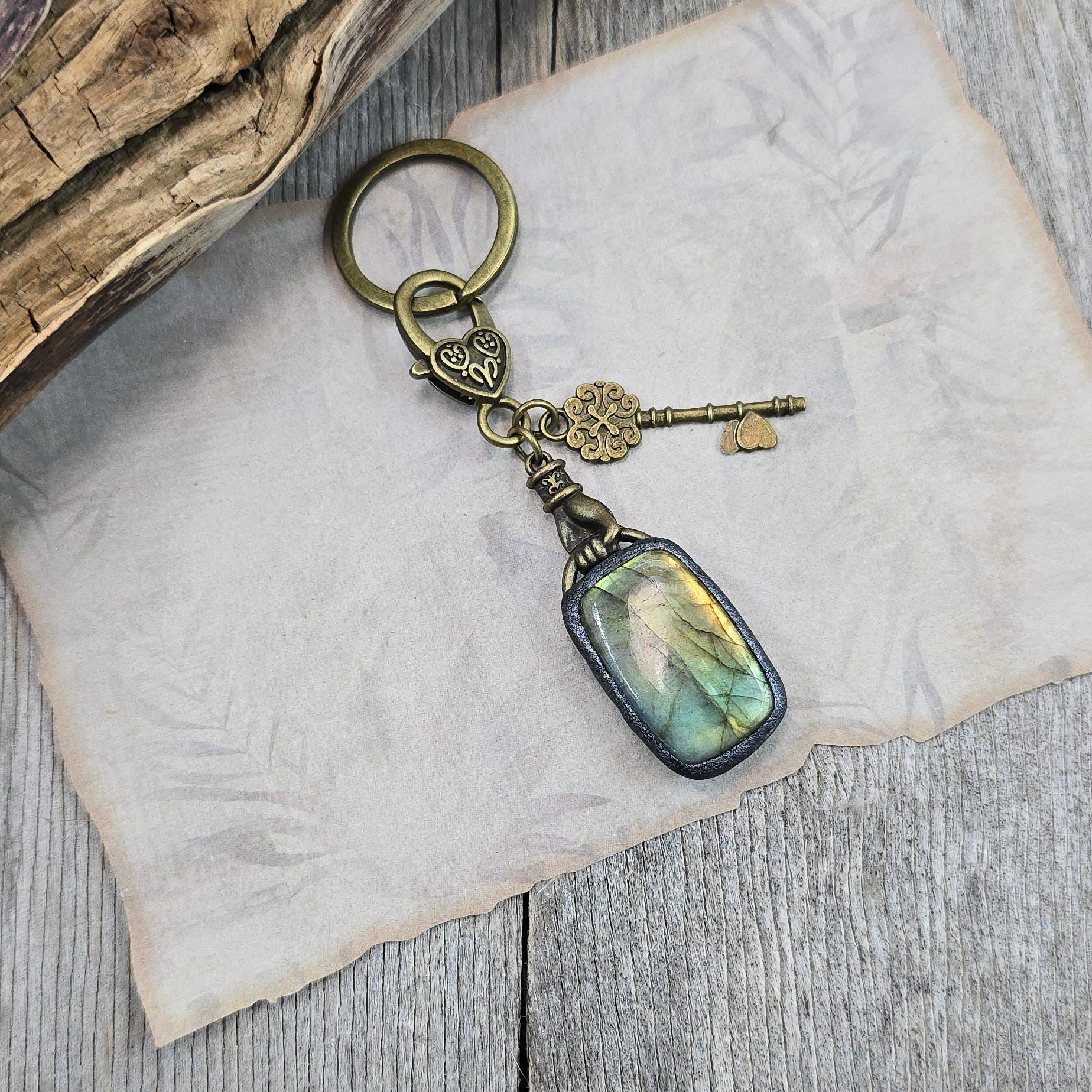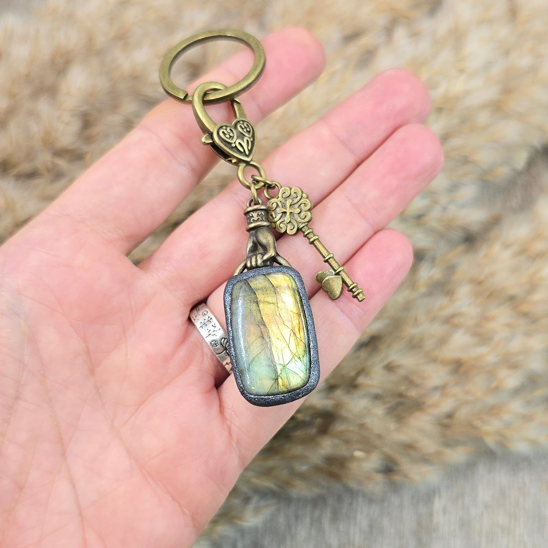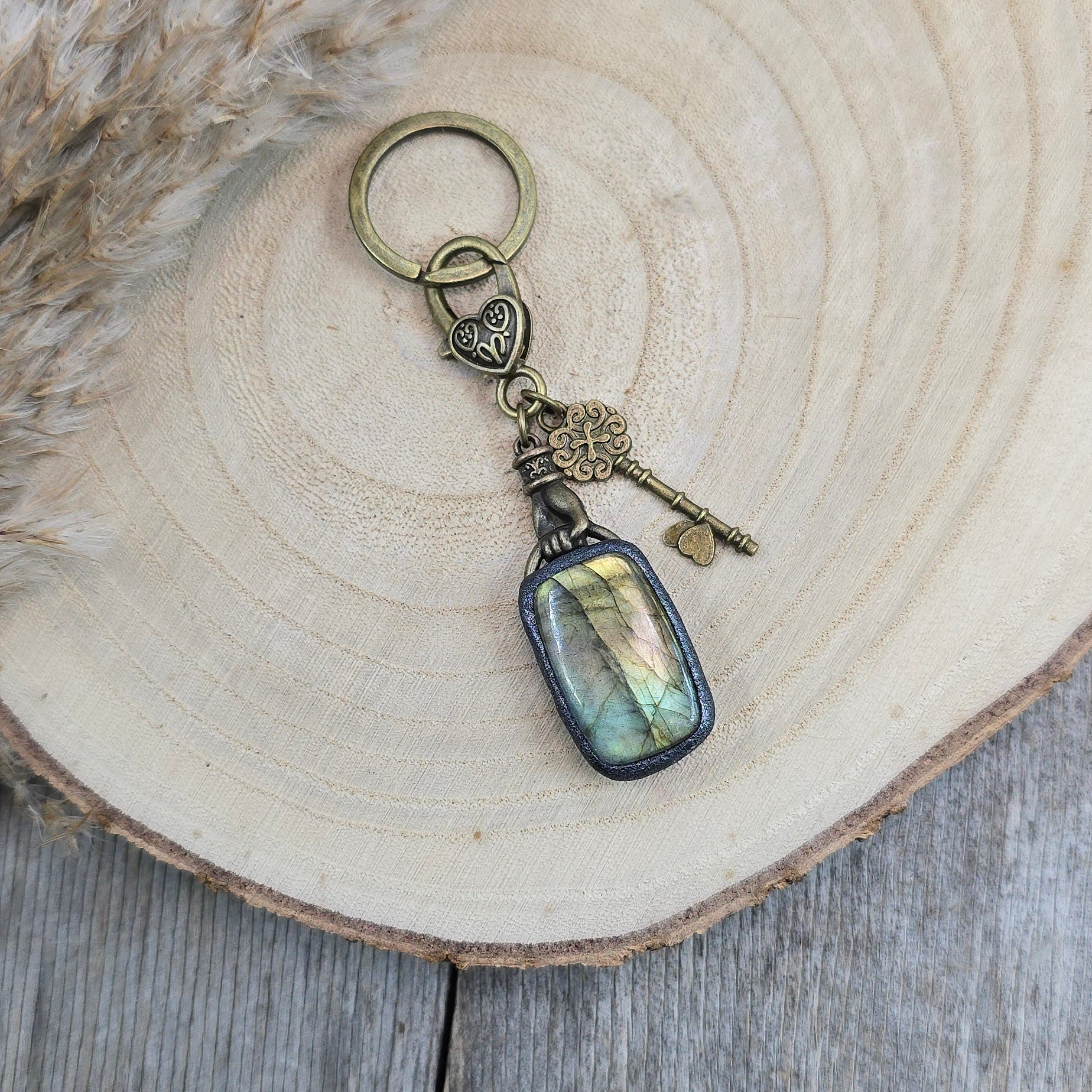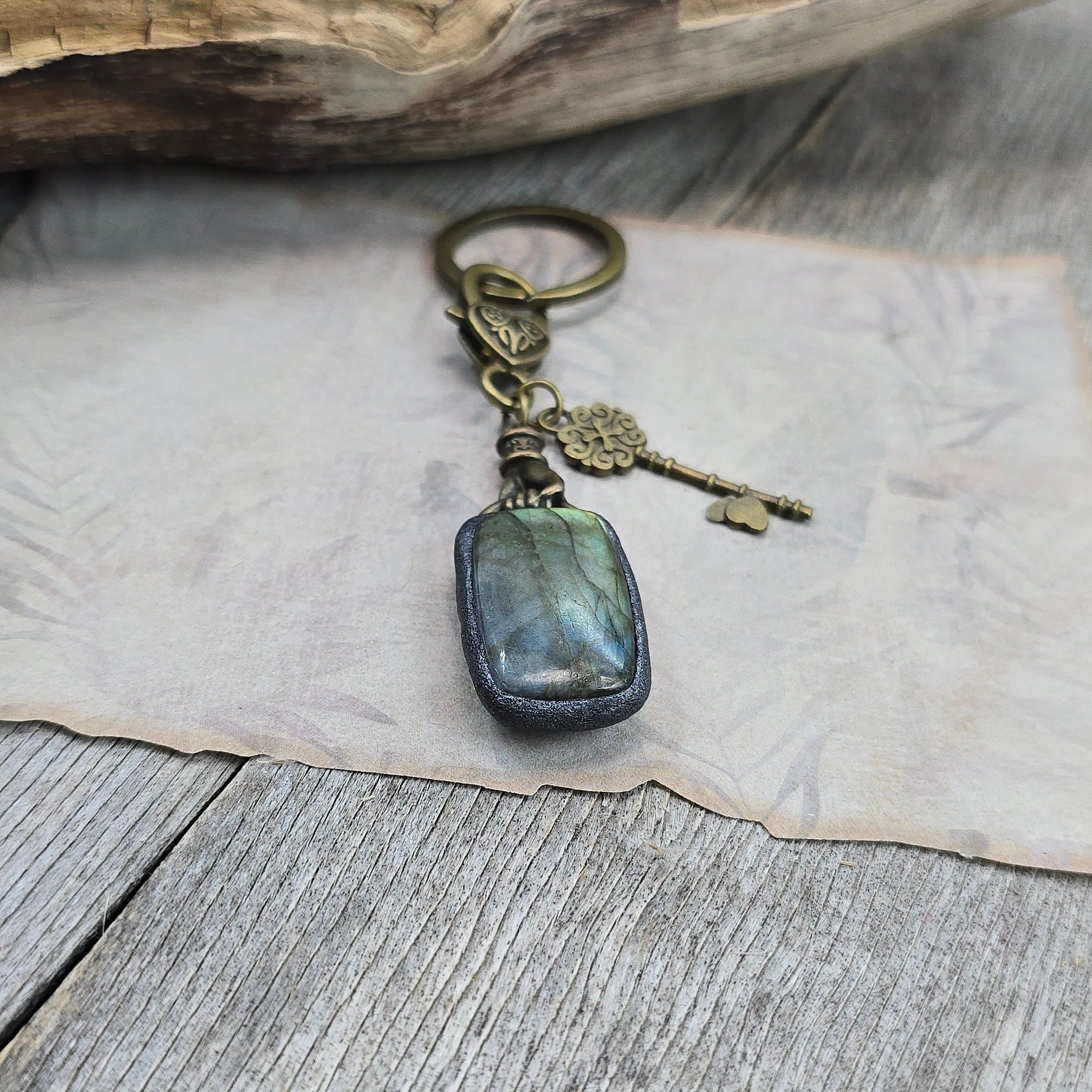 Šis nedidelis, bet ypatingas raktų pakabukas – tai ne tik papuošimas ar funkcionalus daiktas, bet ir tylus tavo ar mylimo žmogaus sargas. Jo širdyje slypi natūralus labradorito akmuo – akmuo, kuris nuo seno laikomas apsaugos, intuicijos ir vidinės stiprybės simboliu.