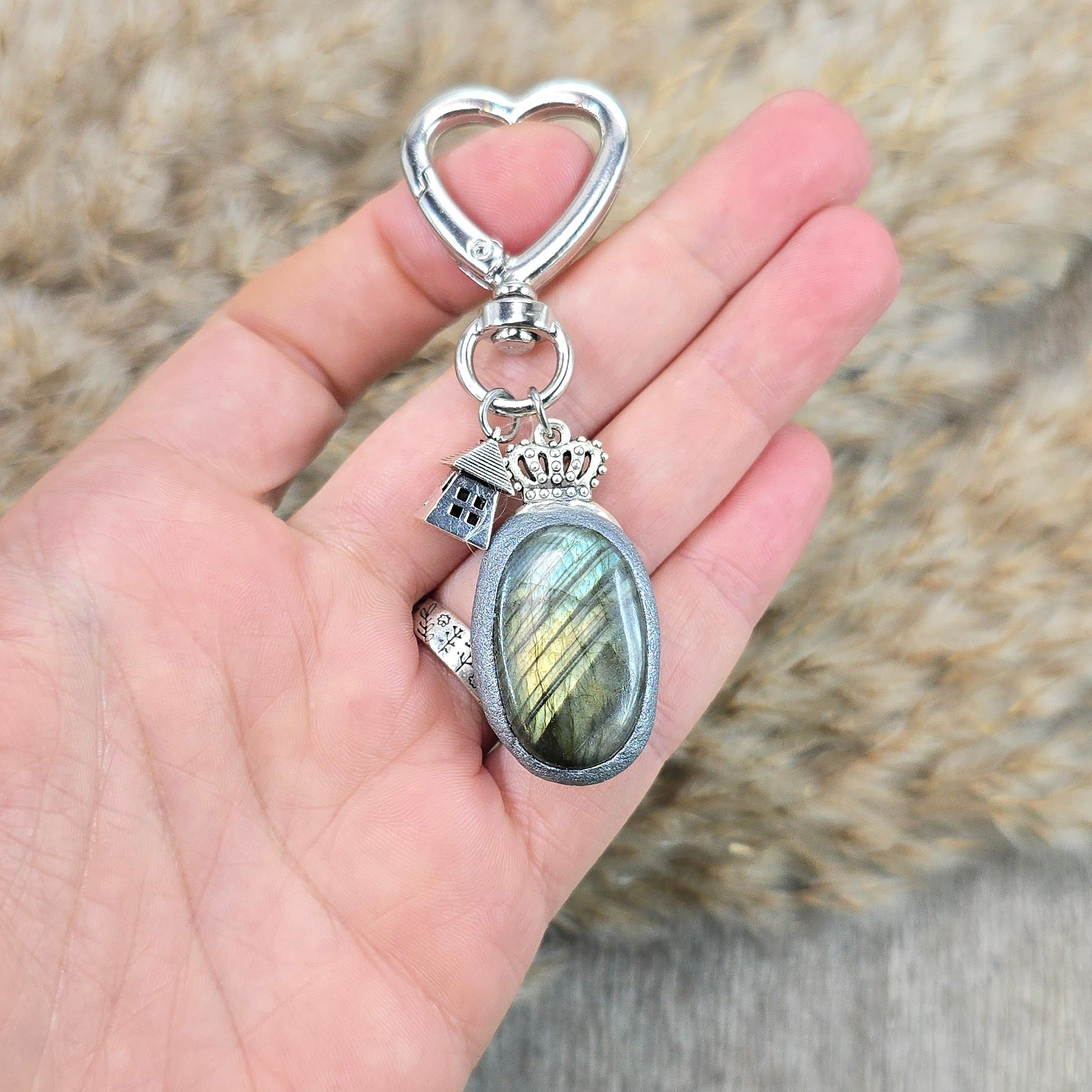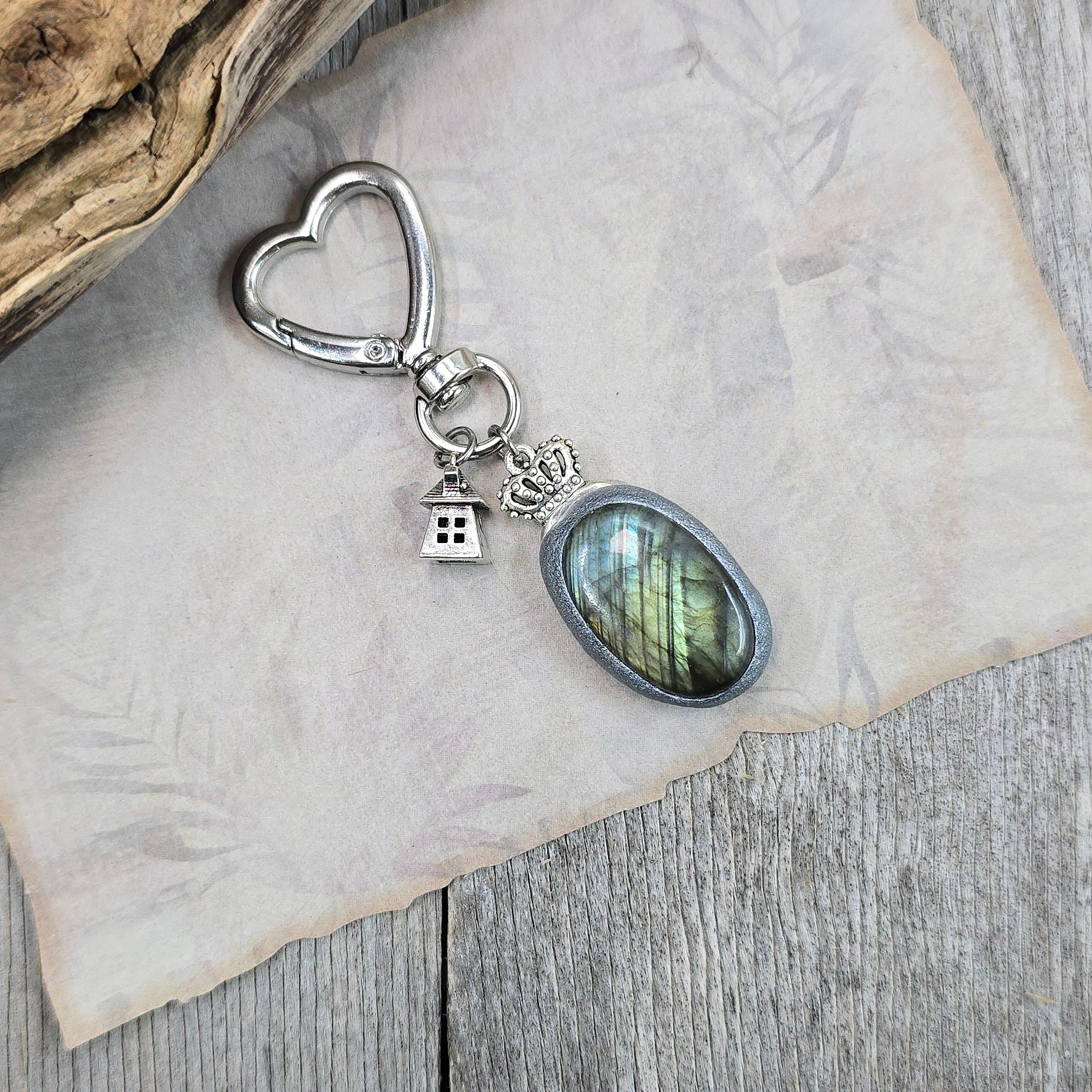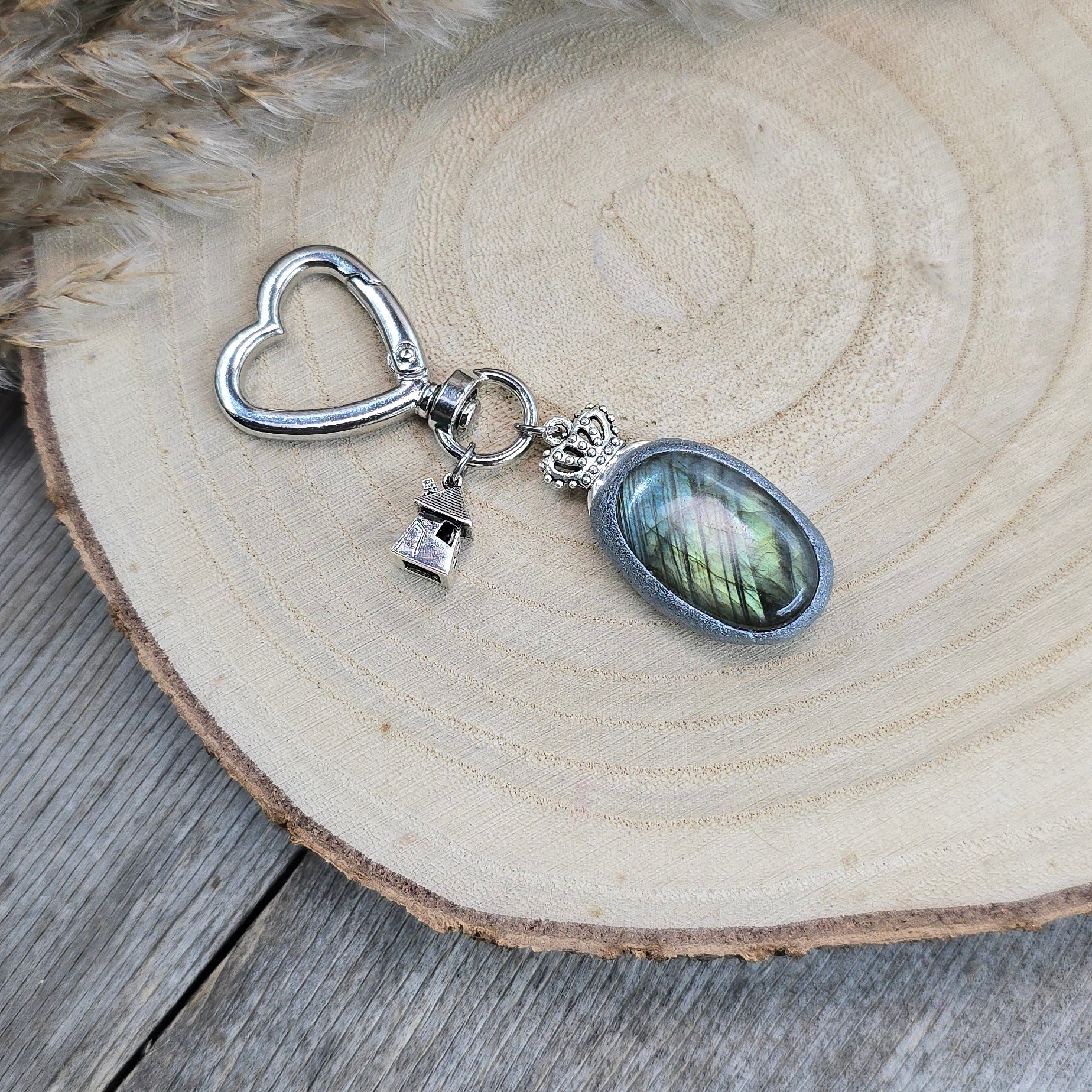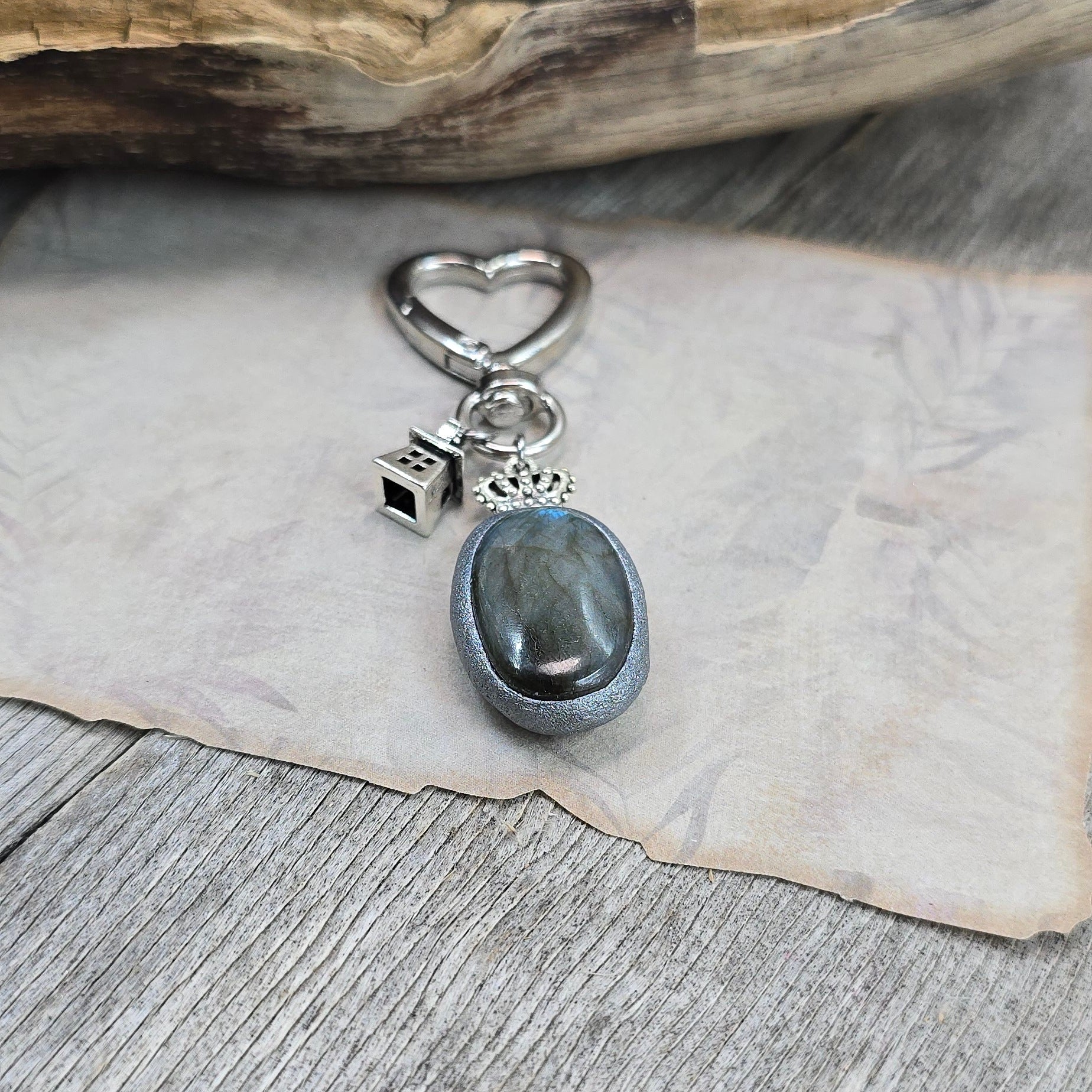 Šis nedidelis, bet ypatingas raktų pakabukas – tai ne tik papuošimas ar funkcionalus daiktas, bet ir tylus tavo ar mylimo žmogaus sargas. Jo širdyje slypi natūralus labradorito akmuo – akmuo, kuris nuo seno laikomas apsaugos, intuicijos ir vidinės stiprybės simboliu.
