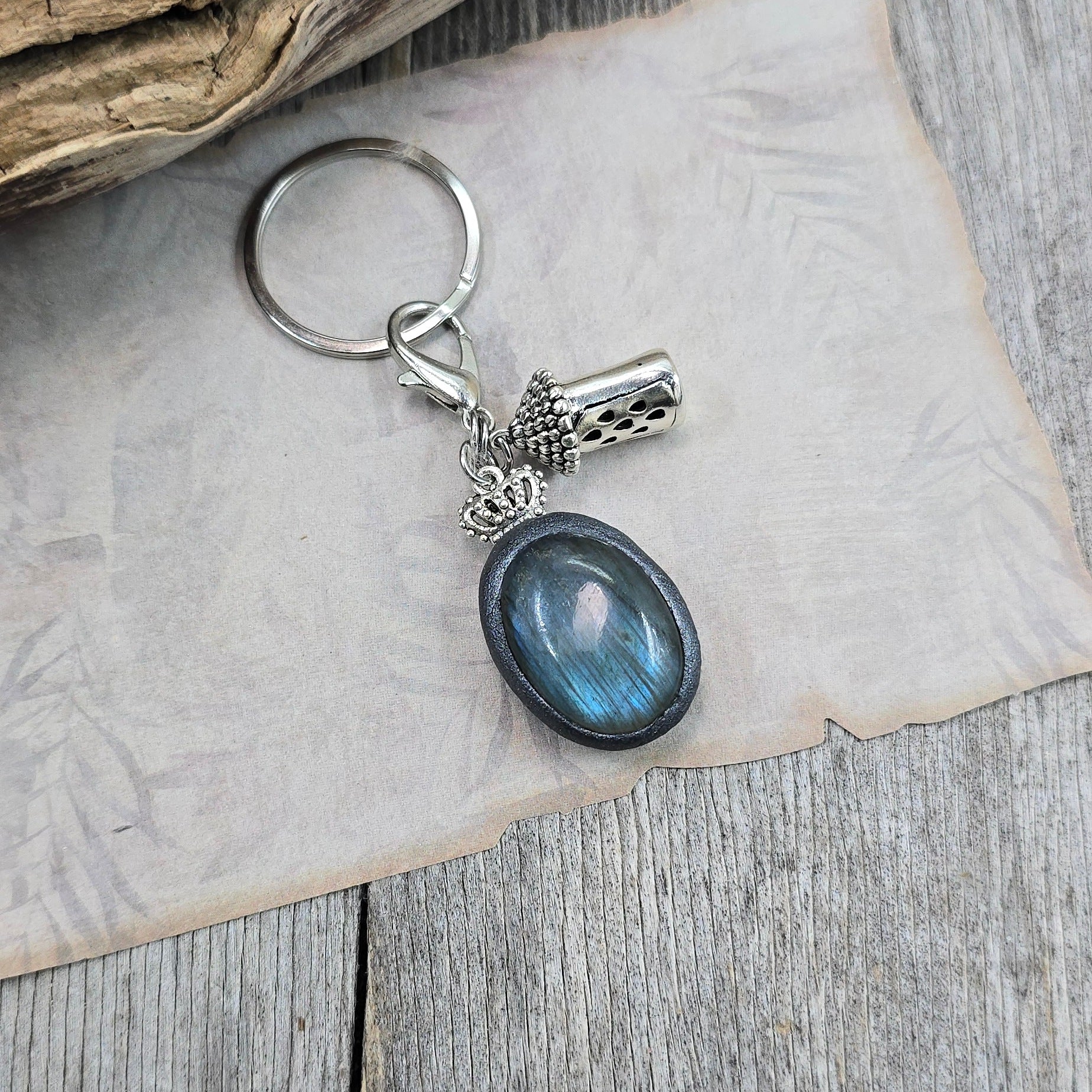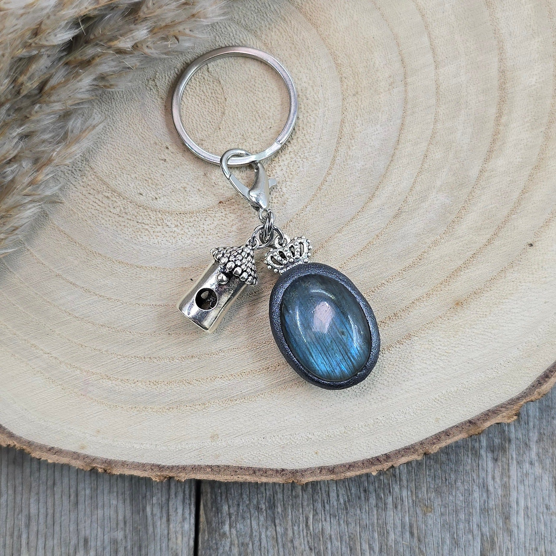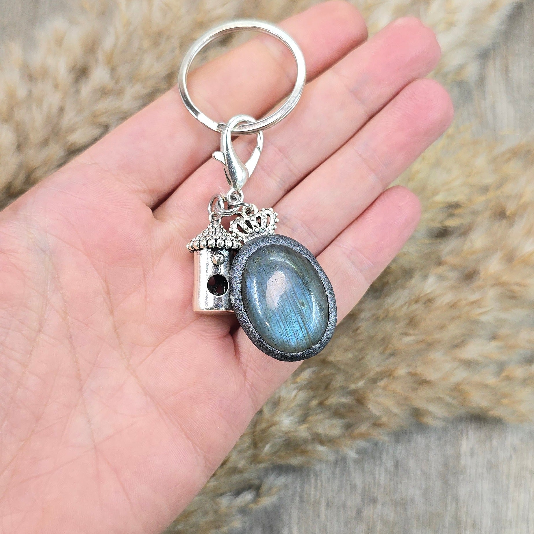 Šis nedidelis, bet ypatingas raktų pakabukas – tai ne tik papuošimas ar funkcionalus daiktas, bet ir tylus tavo ar mylimo žmogaus sargas. Jo širdyje slypi natūralus labradorito akmuo – akmuo, kuris nuo seno laikomas apsaugos, intuicijos ir vidinės stiprybės simboliu.