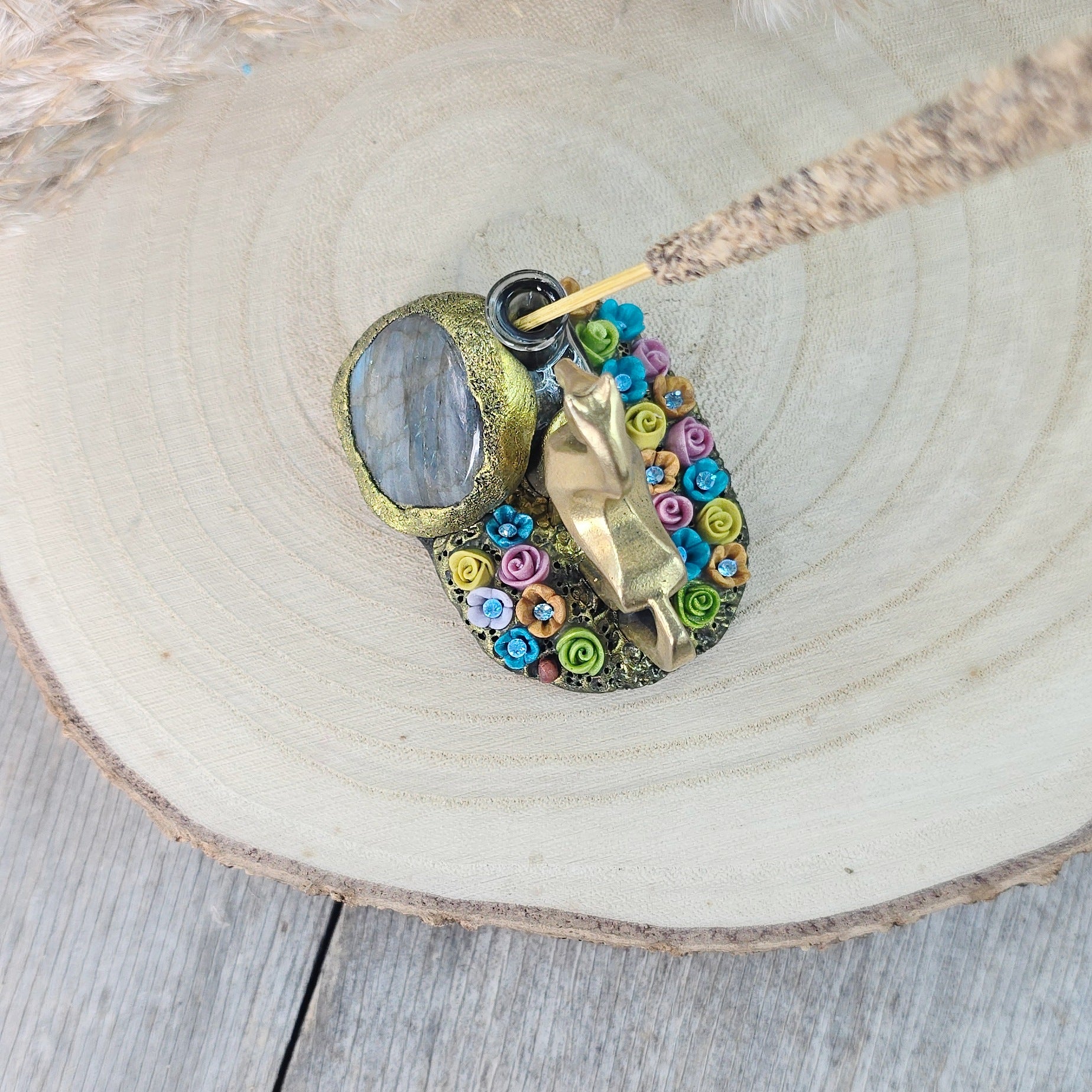 Ši ypatinga smilkalinė – tai daugiau nei tiesiog dekoracija. Ji – mažas rankų darbo talismanas. Įstatyk smilkalą, o šalia padėk nedidelę lėkštelę pelenams ir tegul magija vyksta :)
