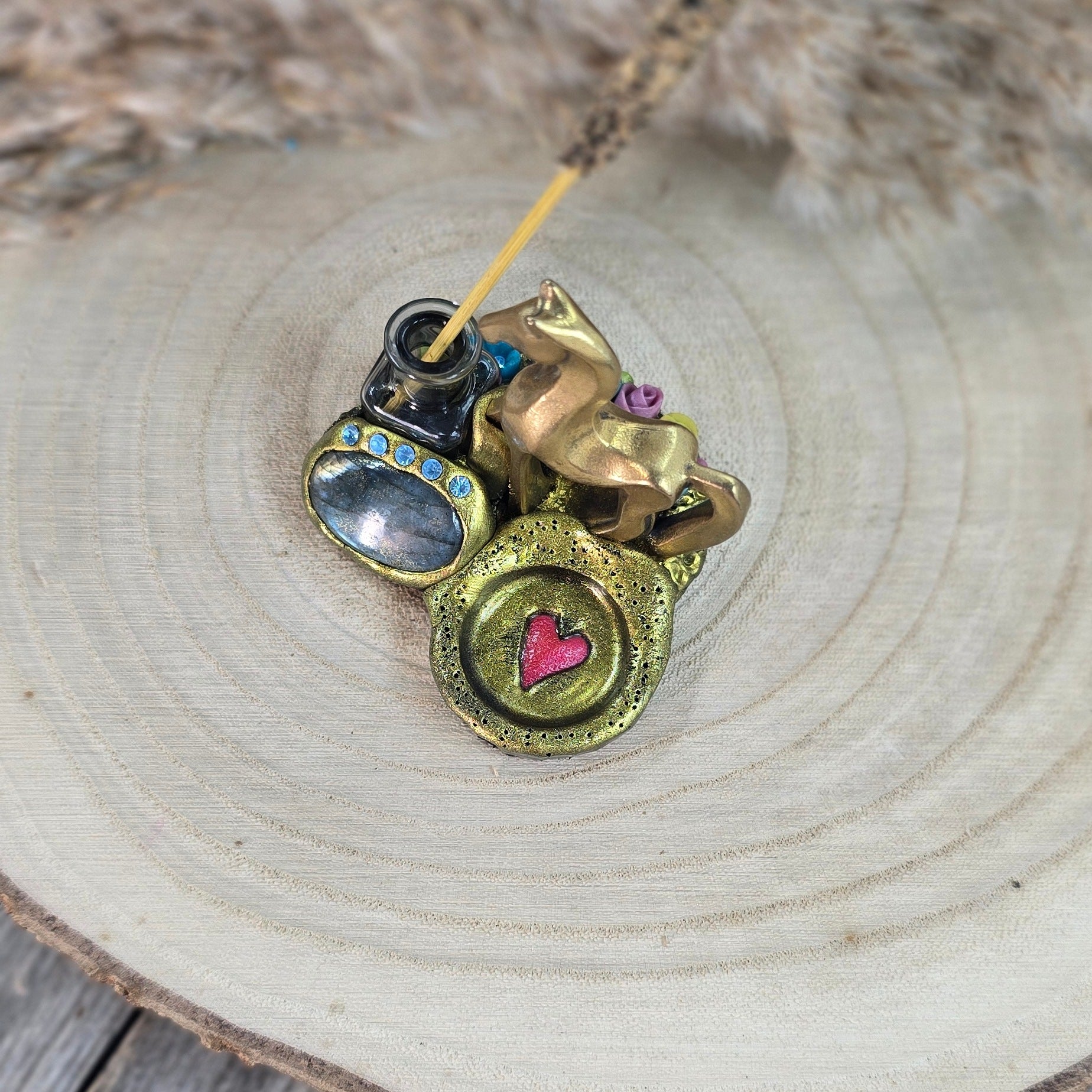 Ši ypatinga smilkalinė – tai daugiau nei tiesiog dekoracija. Ji – mažas rankų darbo talismanas. Įstatyk smilkalą, o šalia padėk nedidelę lėkštelę pelenams ir tegul magija vyksta :)