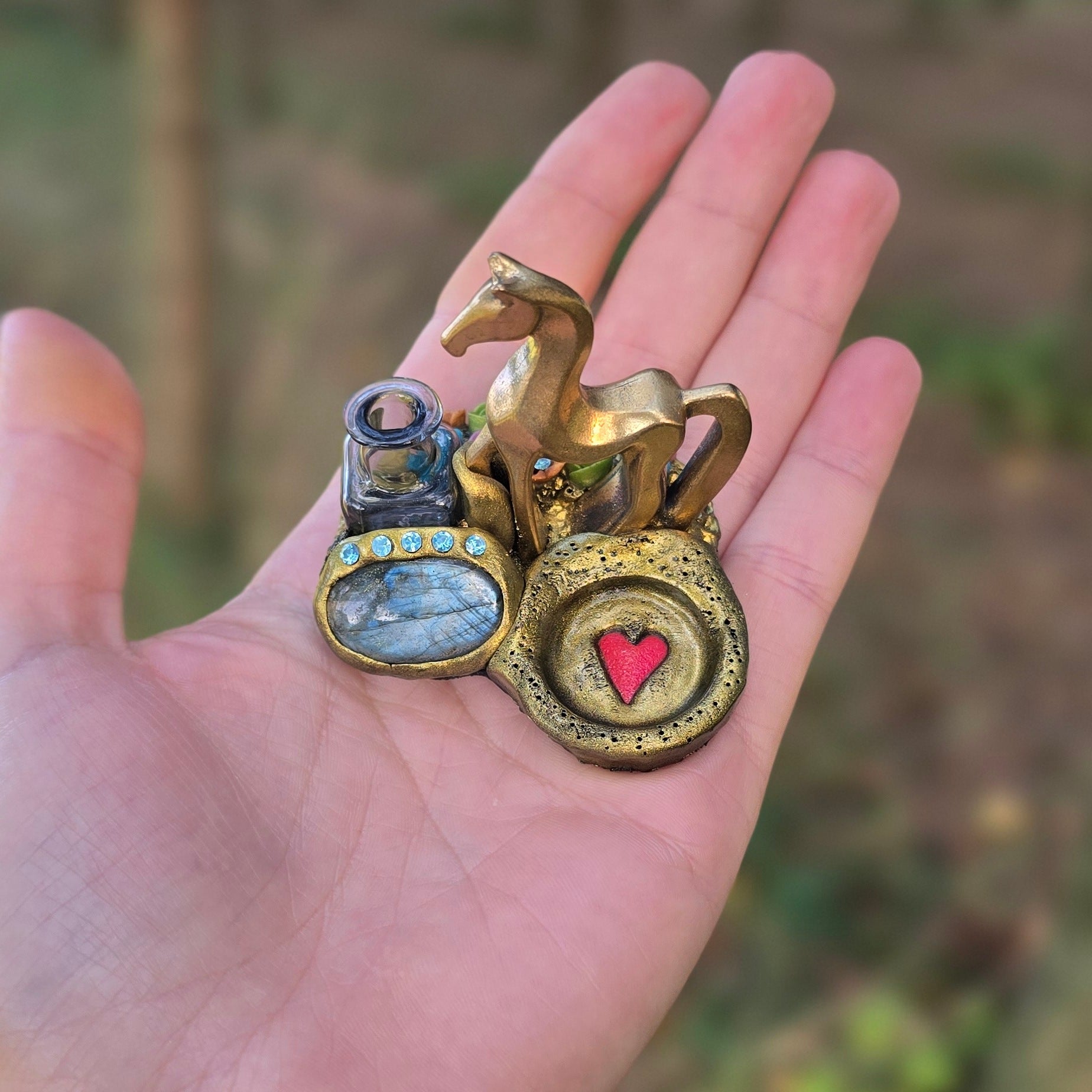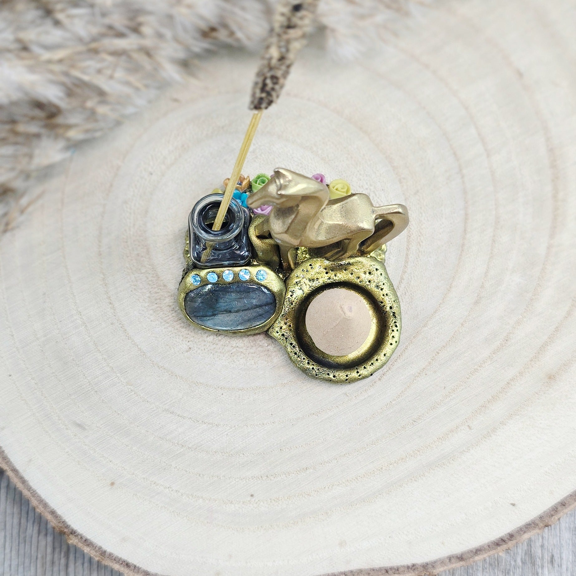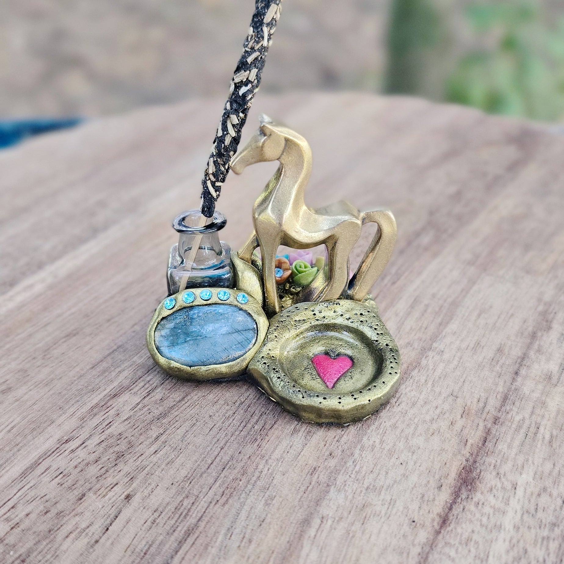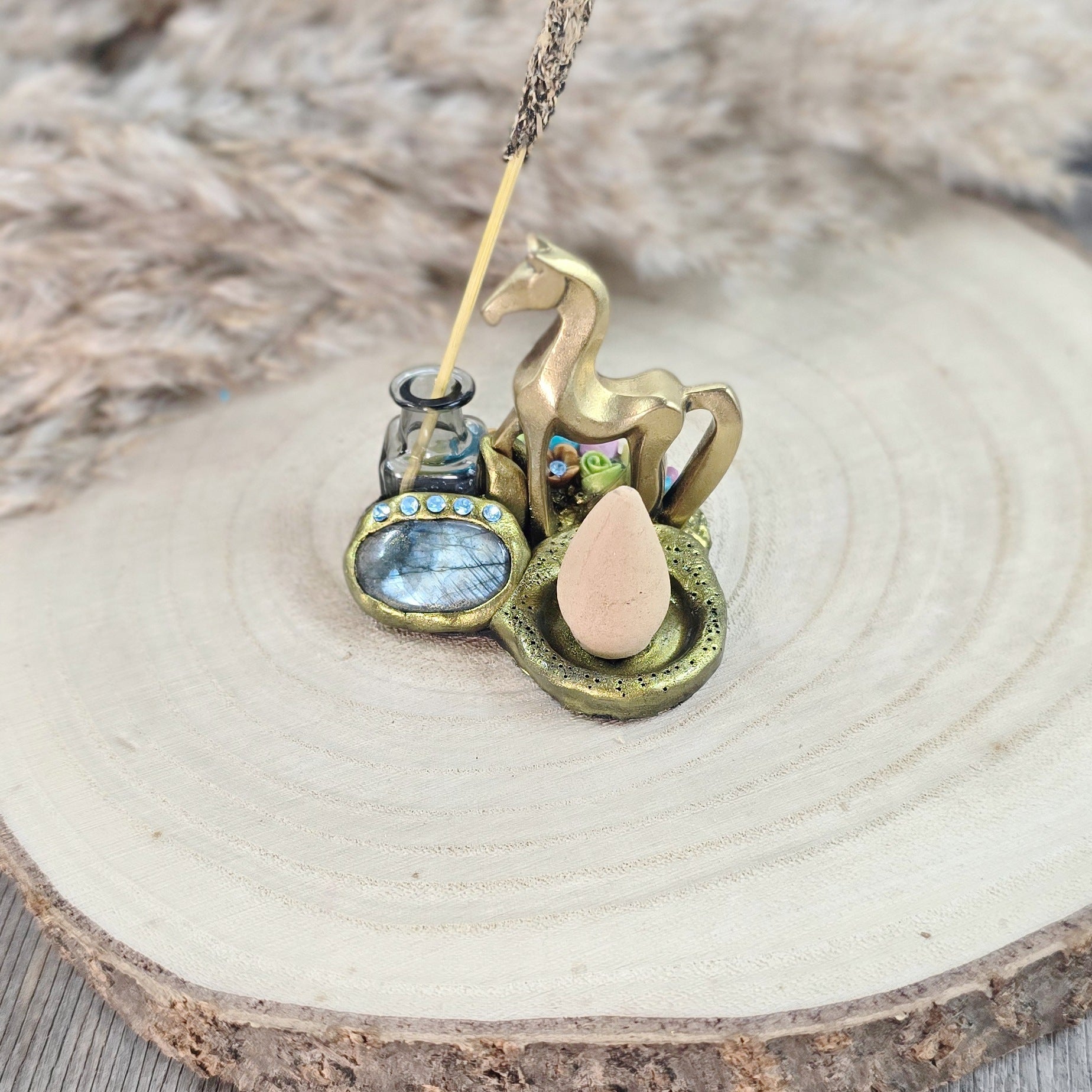 Smilkaline su labradoritu ir arkliuku - 2026m. simboliu (tinka kūginiams smilkalams)
