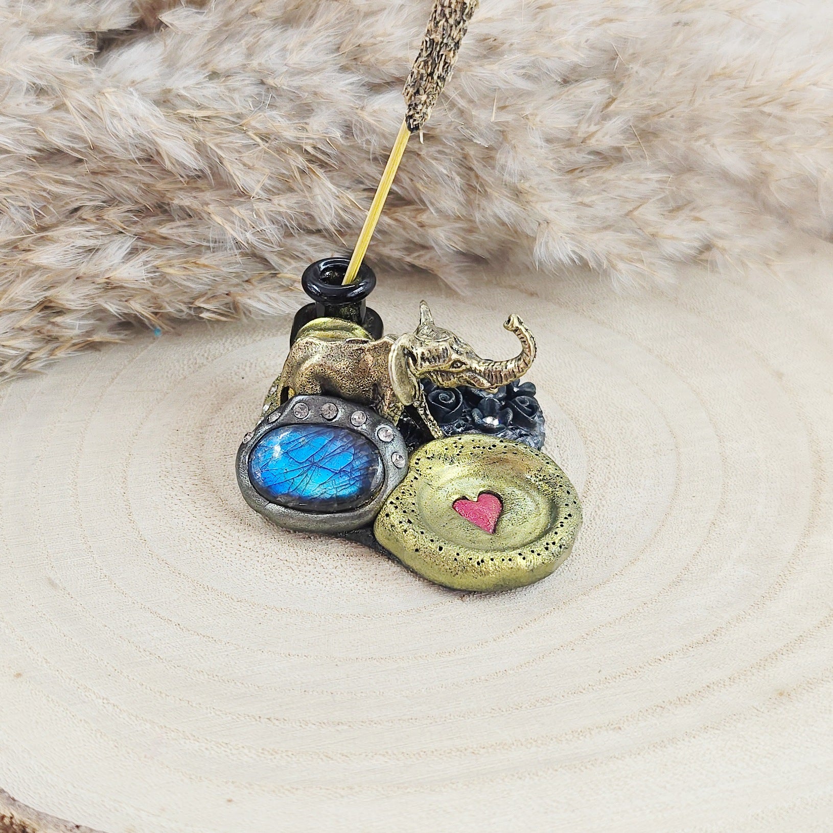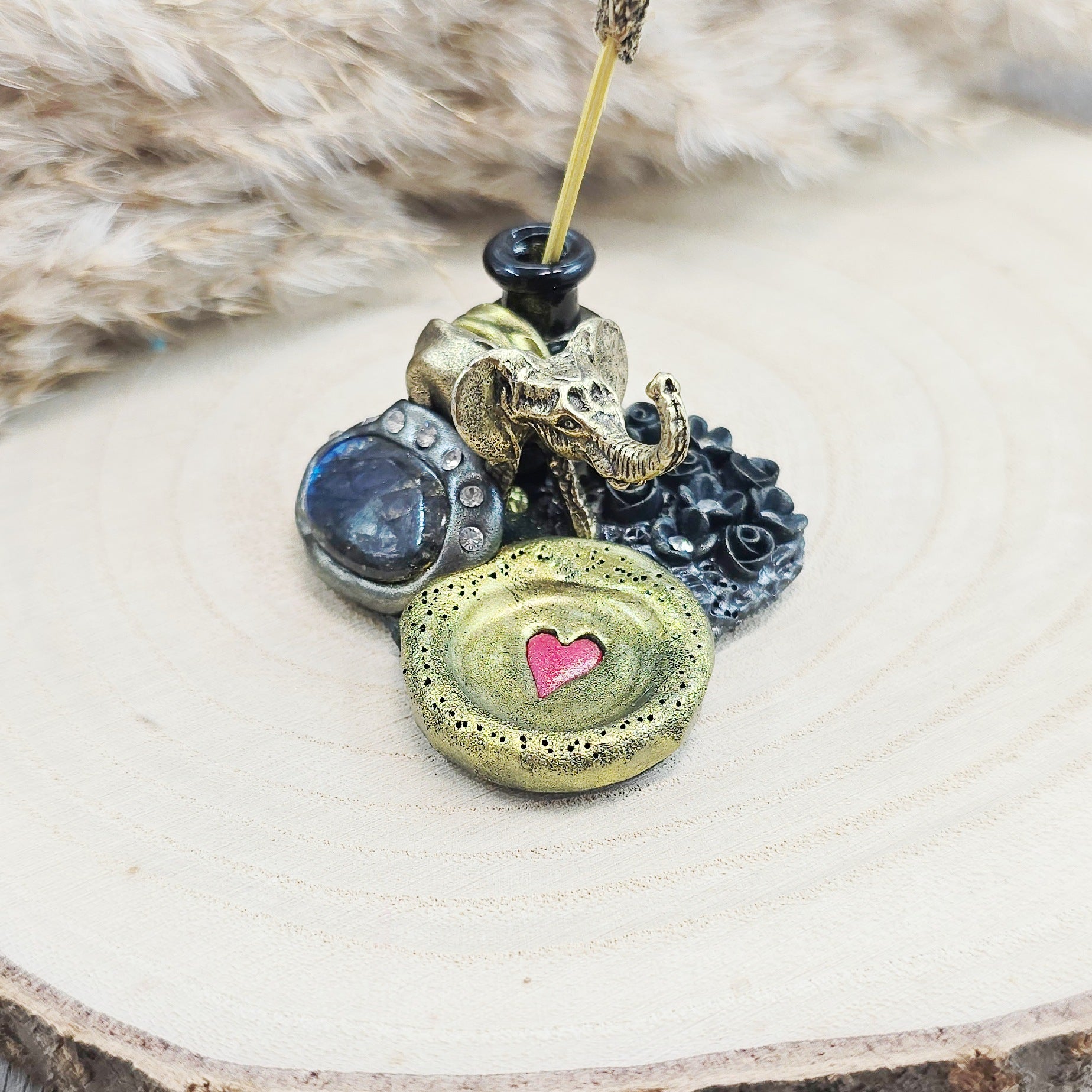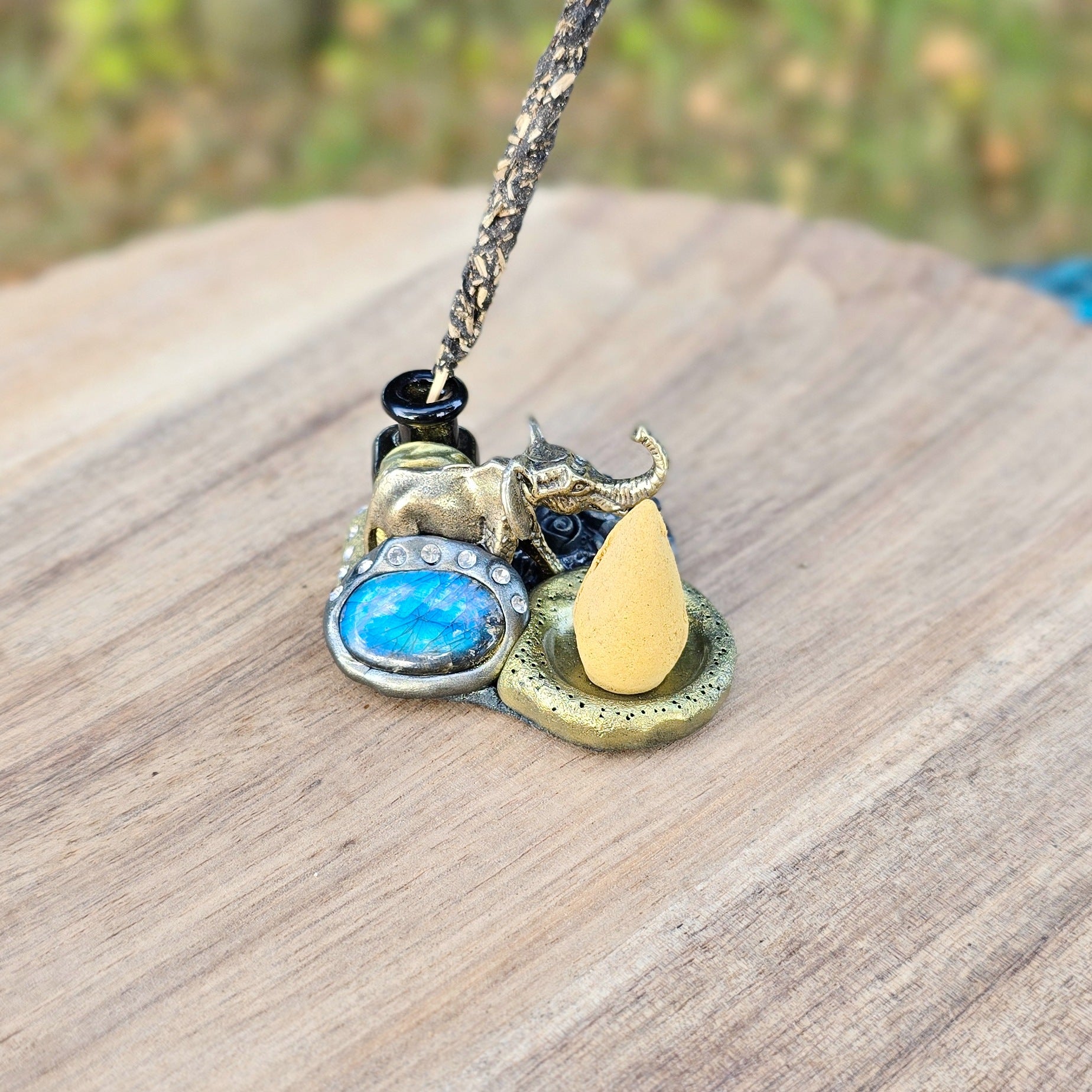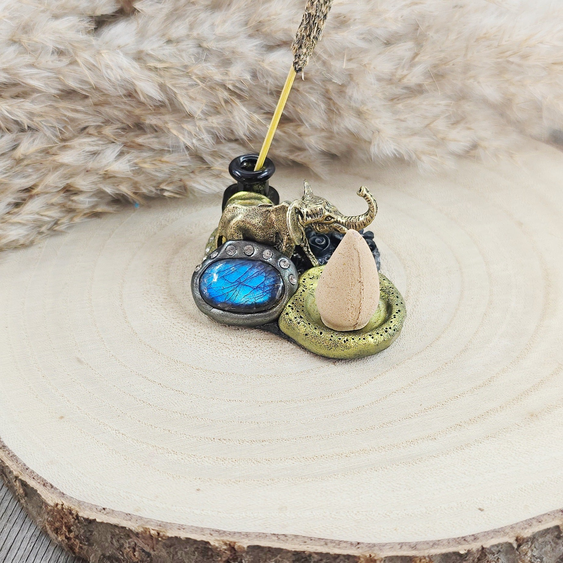 Smilkaline su labradoritu ir drambliuku (tinka kūginiams smilkalams)