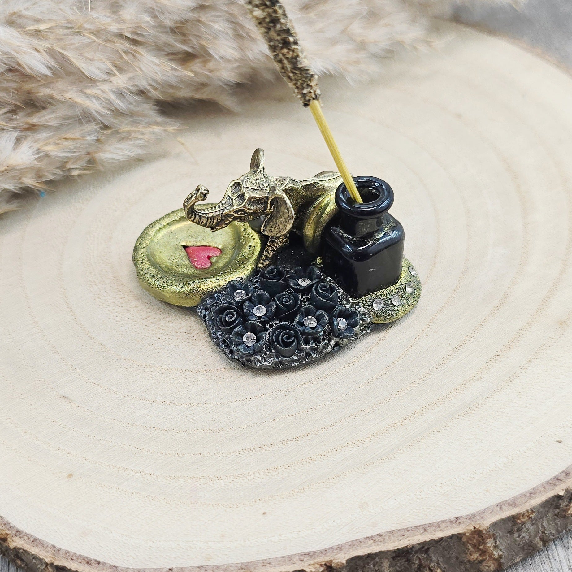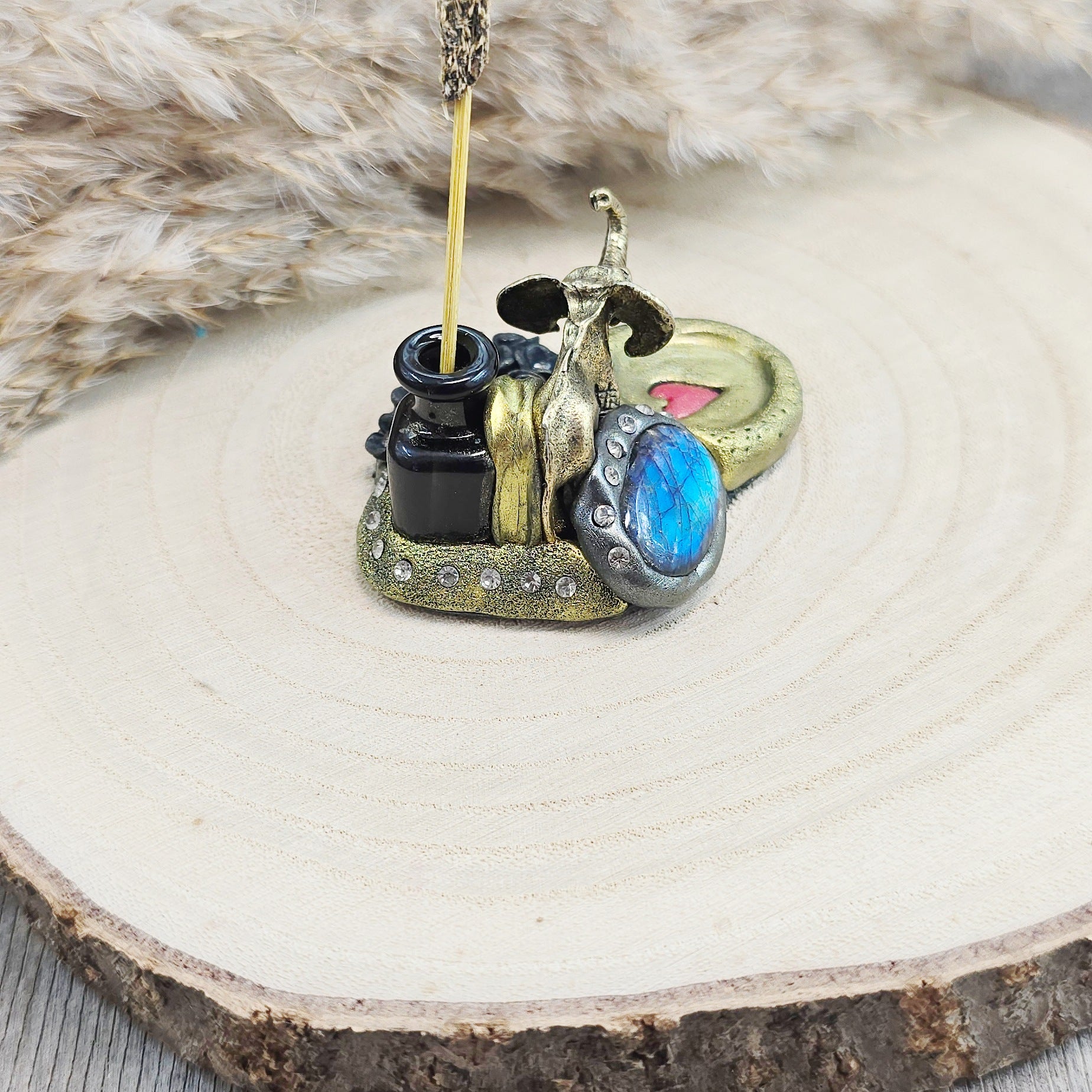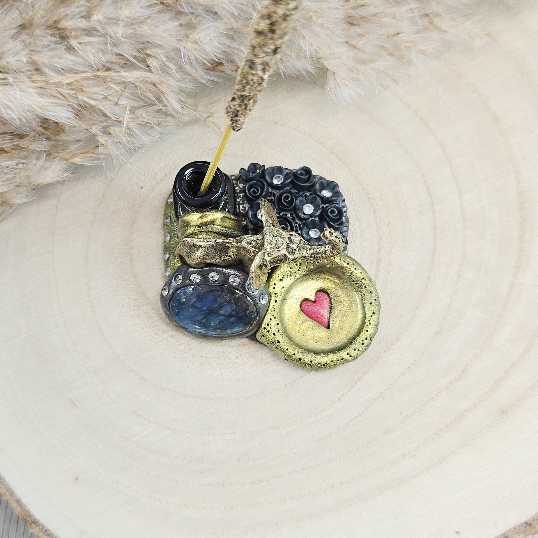 Ši ypatinga smilkalinė – tai daugiau nei tiesiog dekoracija. Ji – mažas rankų darbo talismanas. Įstatyk smilkalą, o šalia padėk nedidelę lėkštelę pelenams ir tegul magija vyksta :)