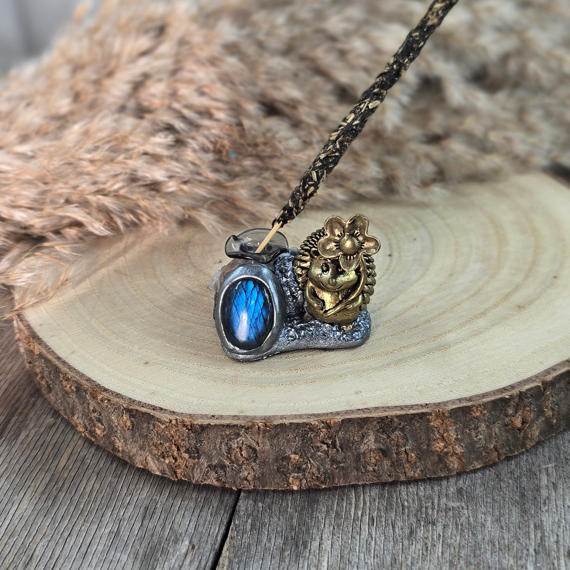 Ši ypatinga smilkalinė – tai daugiau nei tiesiog dekoracija. Ji – mažas rankų darbo talismanas. Įstatyk smilkalą, o šalia padėk nedidelę lėkštelę pelenams ir tegul magija vyksta :)