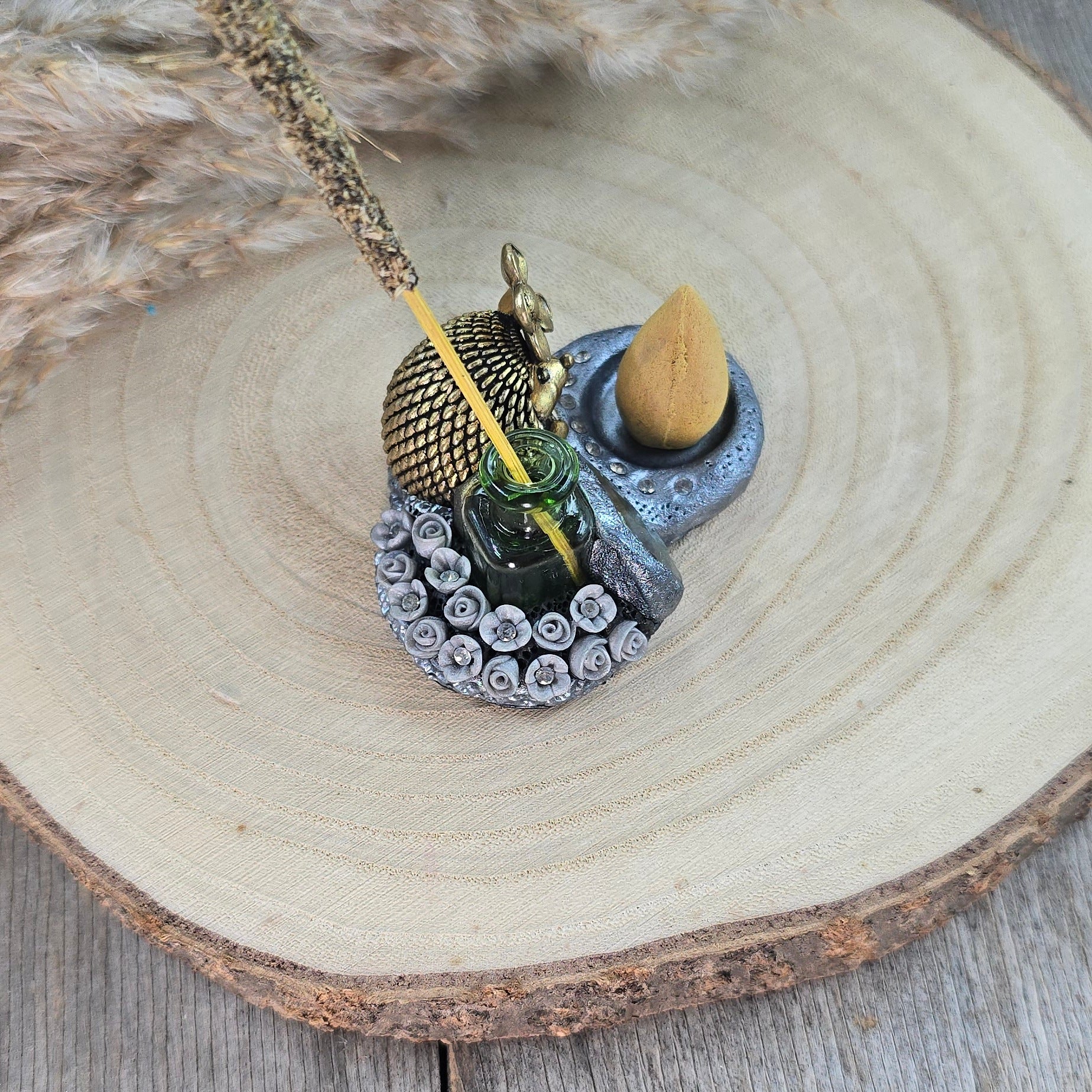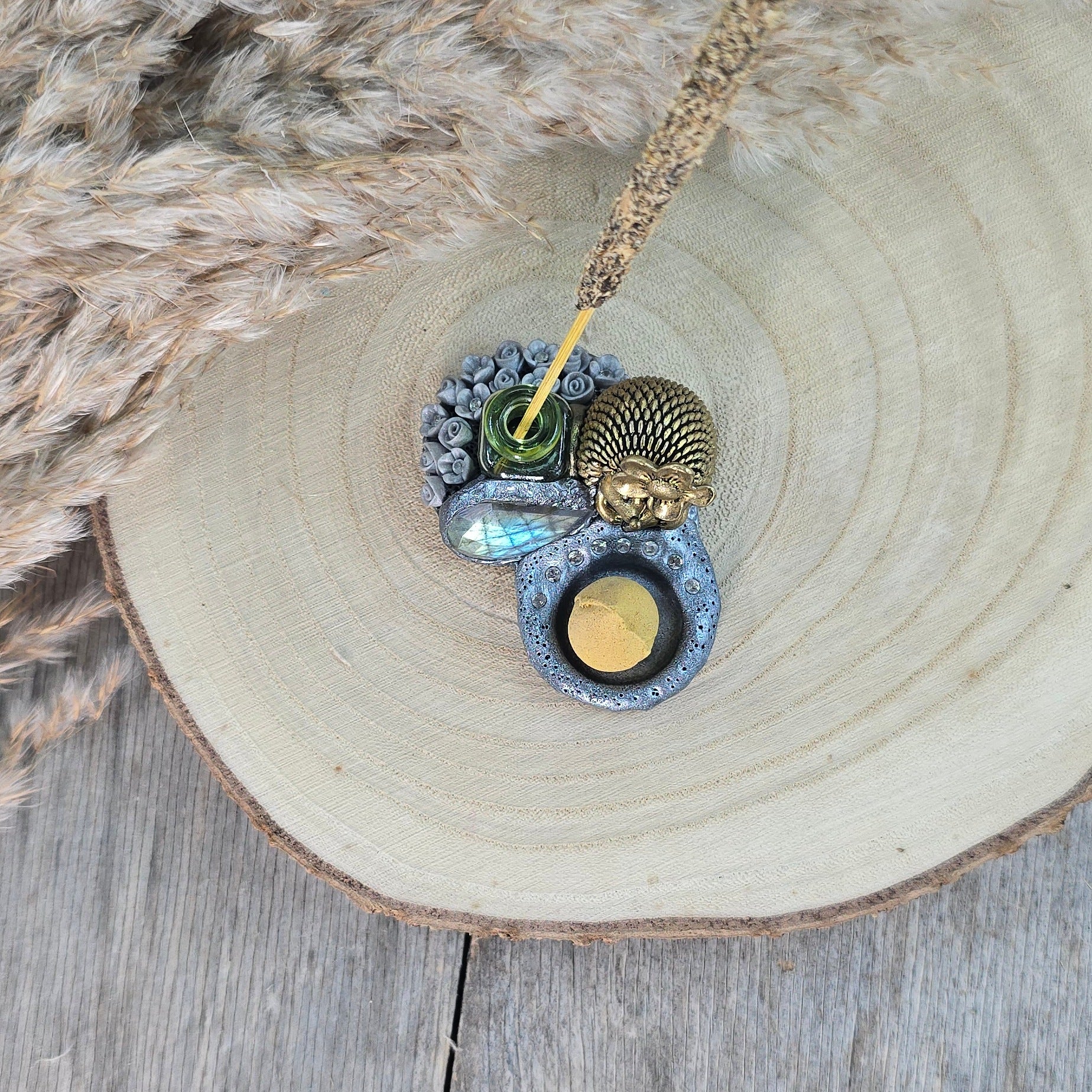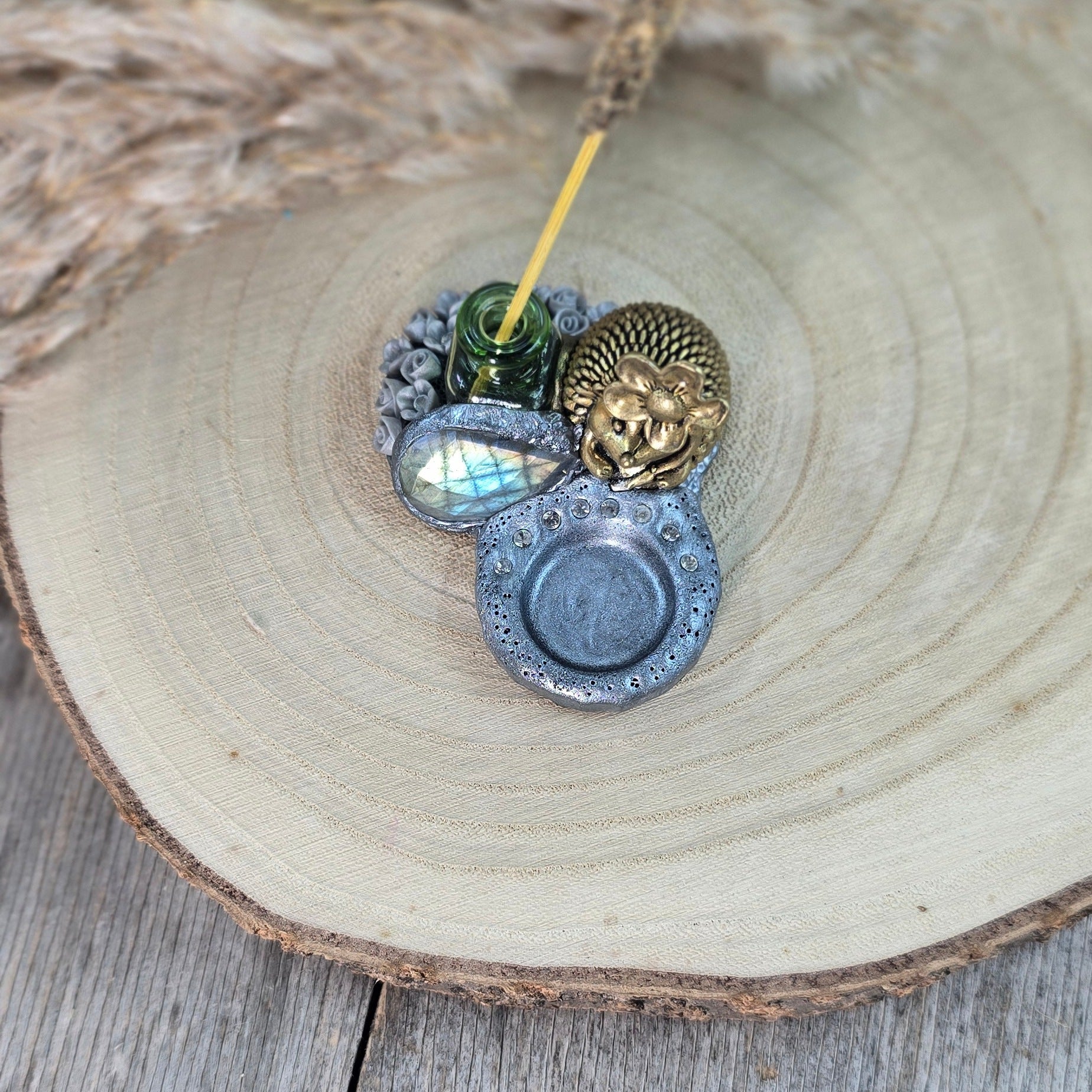 Ši ypatinga smilkalinė – tai daugiau nei tiesiog dekoracija. Ji – mažas rankų darbo talismanas. Įstatyk smilkalą, o šalia padėk nedidelę lėkštelę pelenams ir tegul magija vyksta :)
