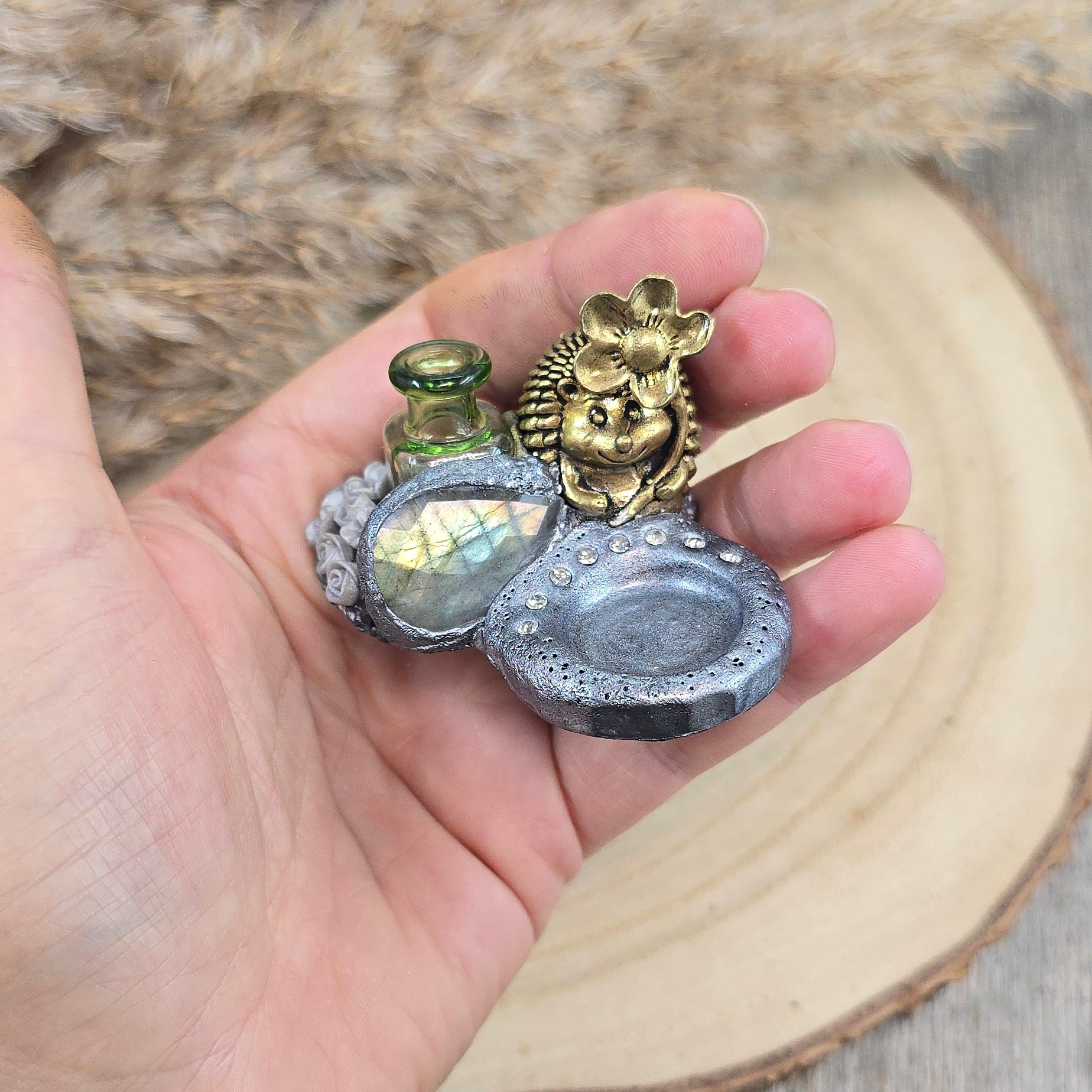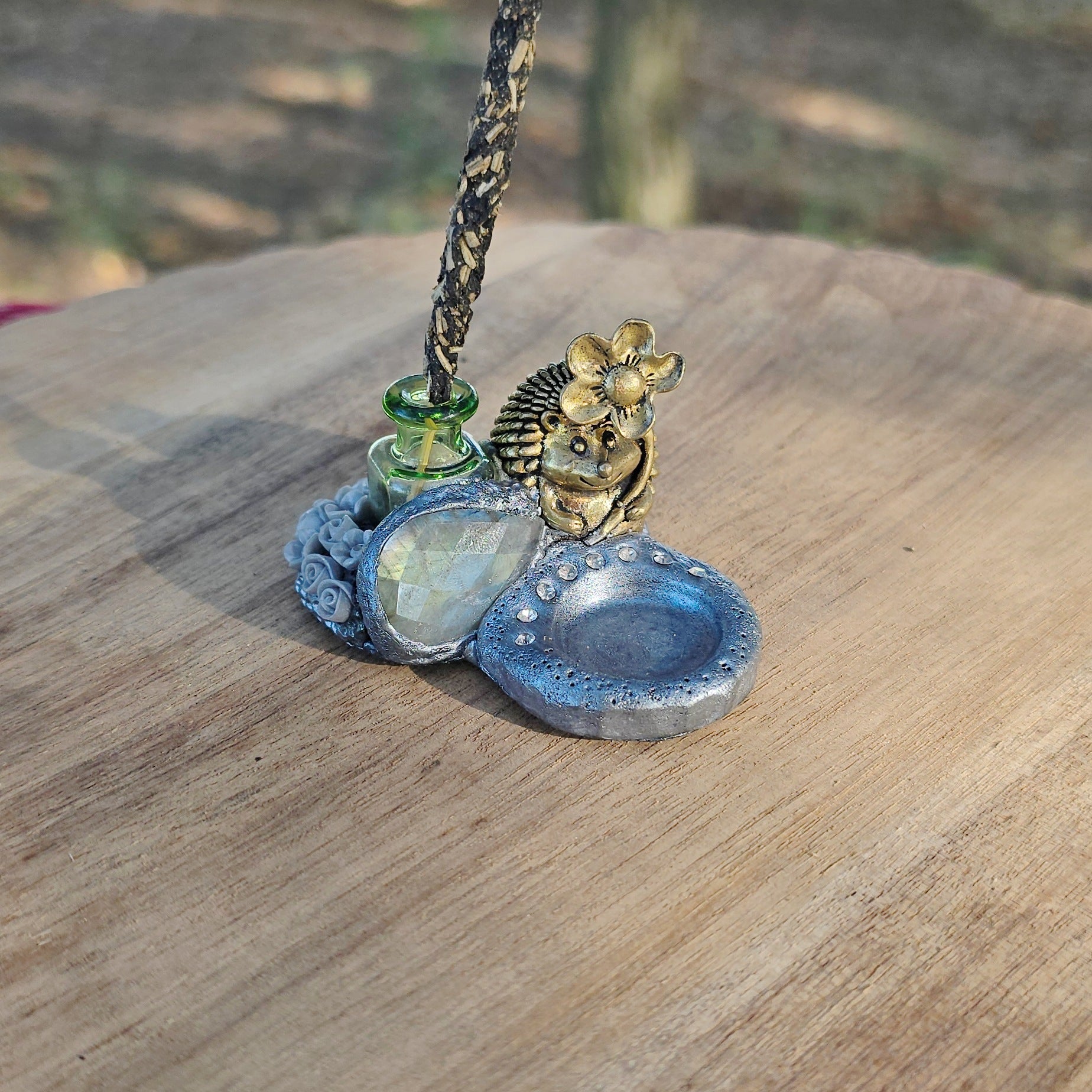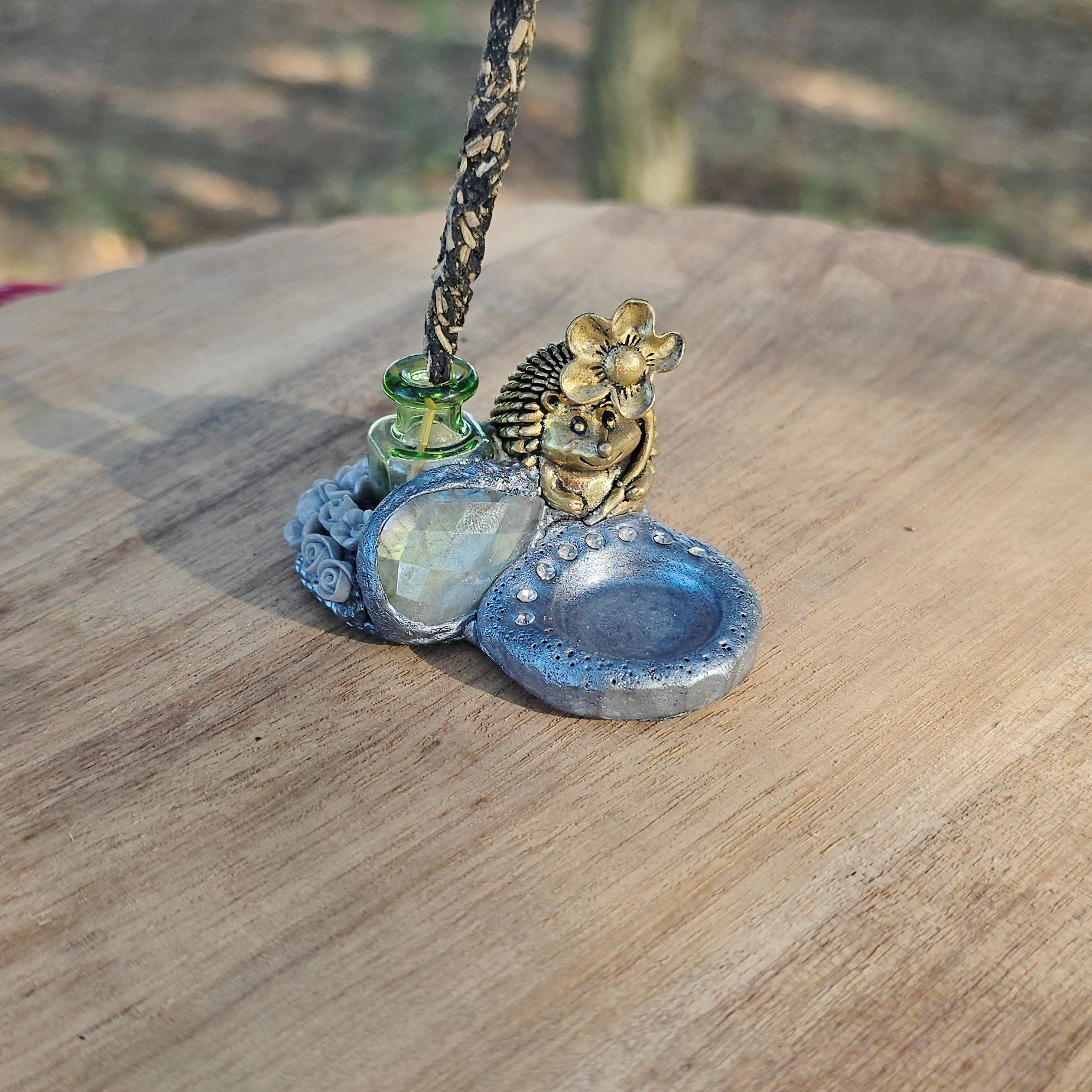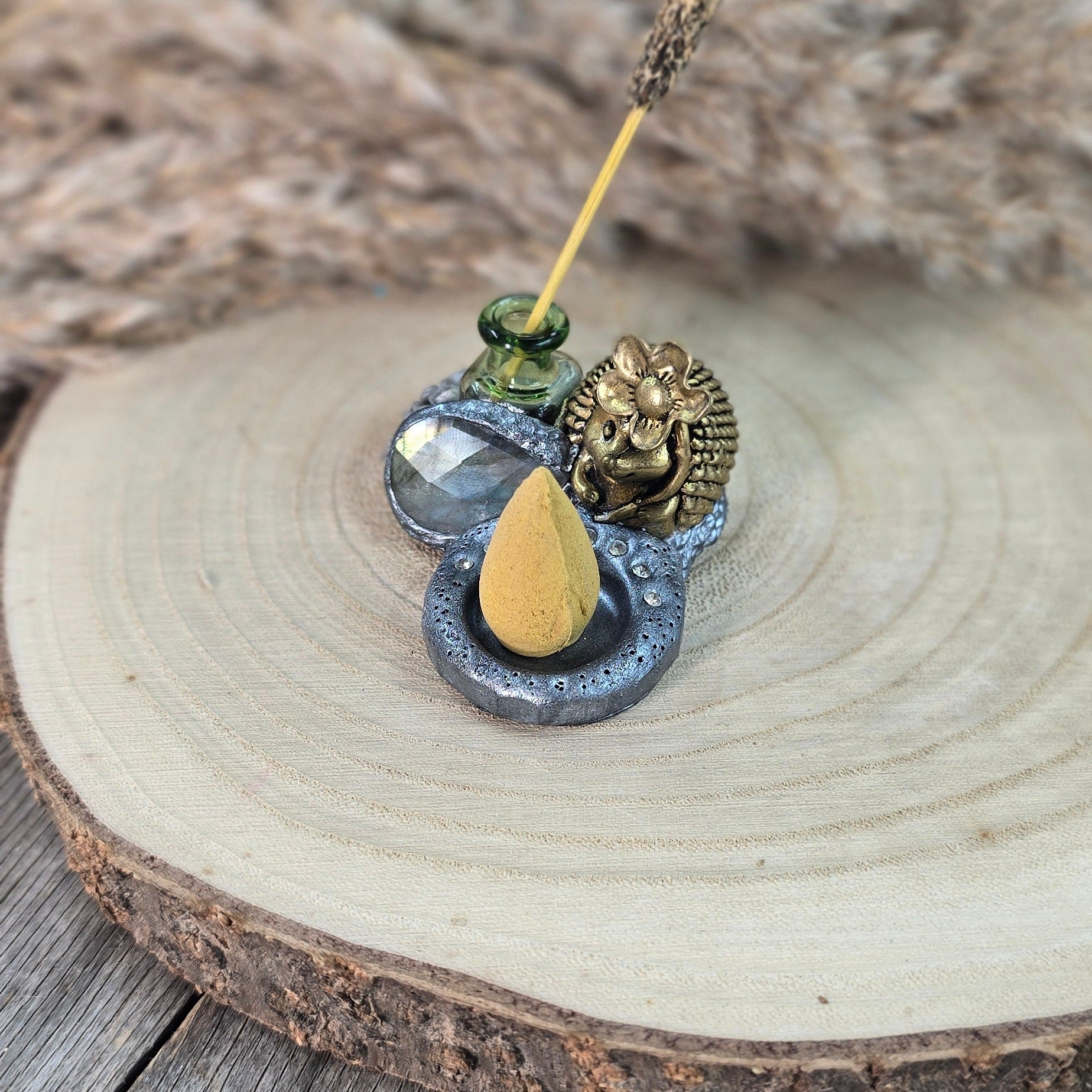 Smilkaline su labradoritu ir ežiuku (tinka kūginiams smilkalams)