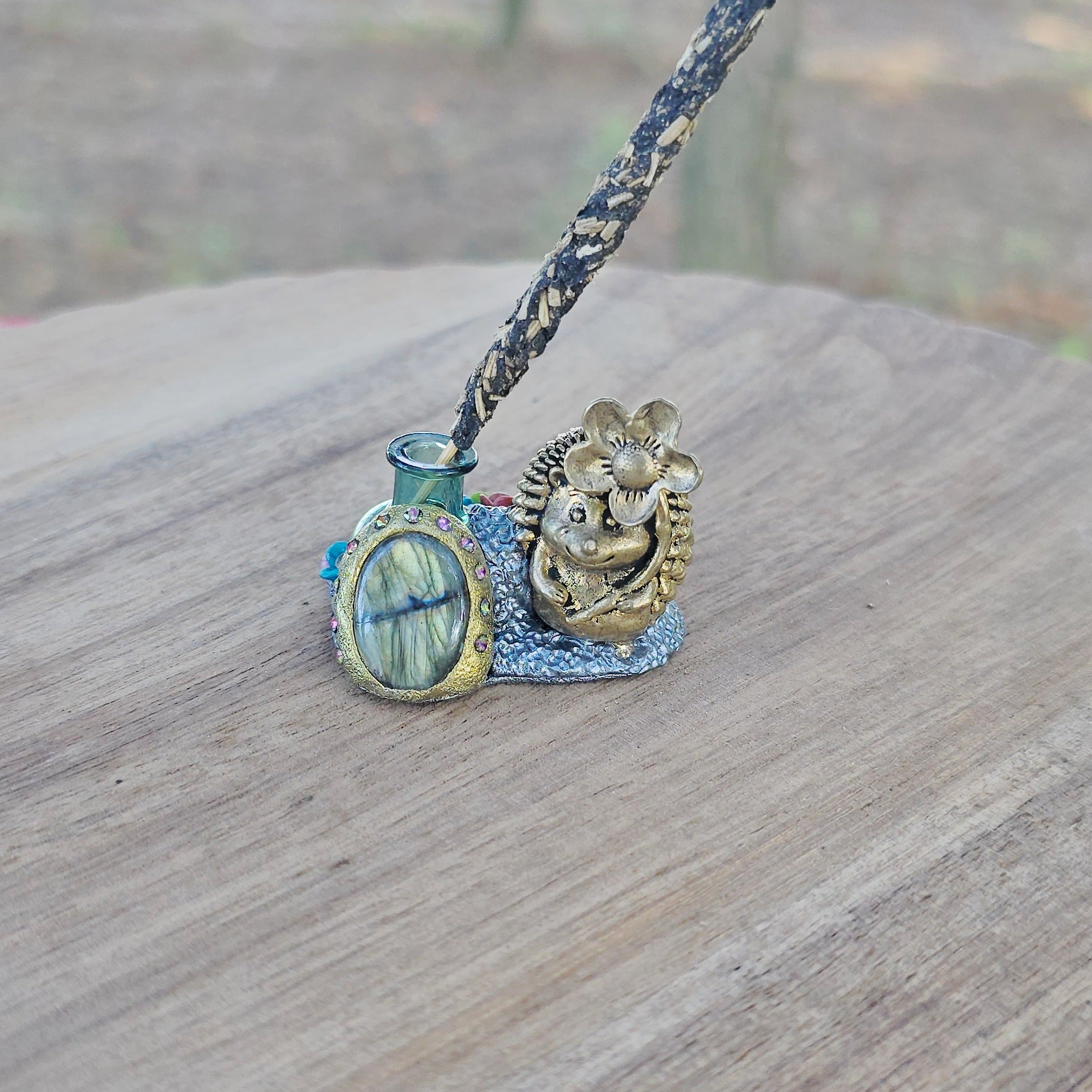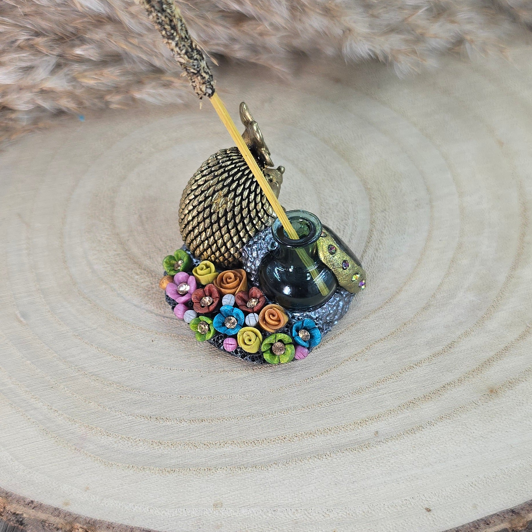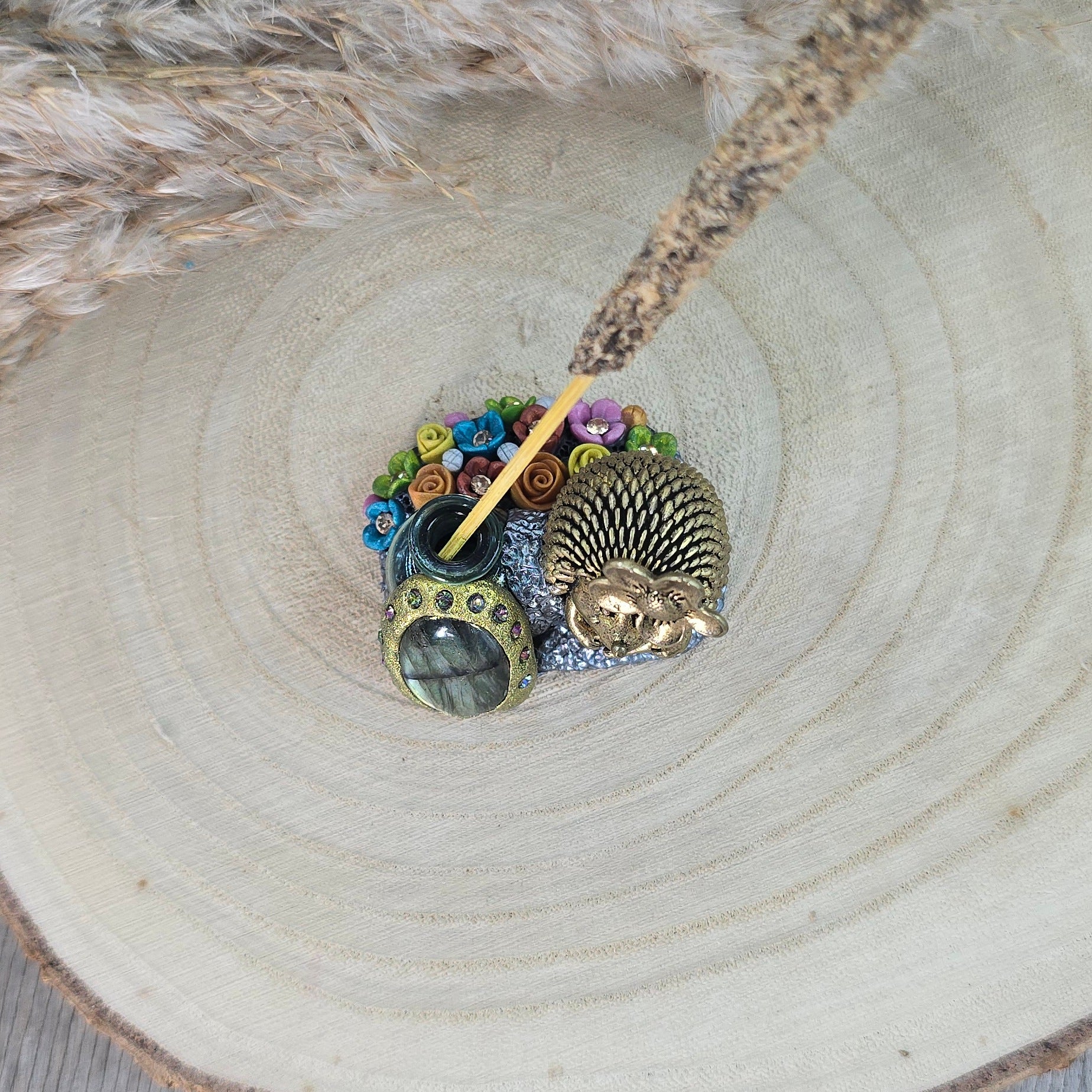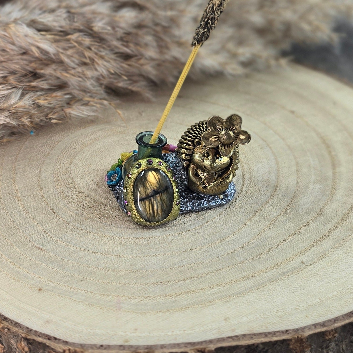 Ši ypatinga smilkalinė – tai daugiau nei tiesiog dekoracija. Ji – mažas rankų darbo talismanas. Įstatyk smilkalą, o šalia padėk nedidelę lėkštelę pelenams ir tegul magija vyksta :)