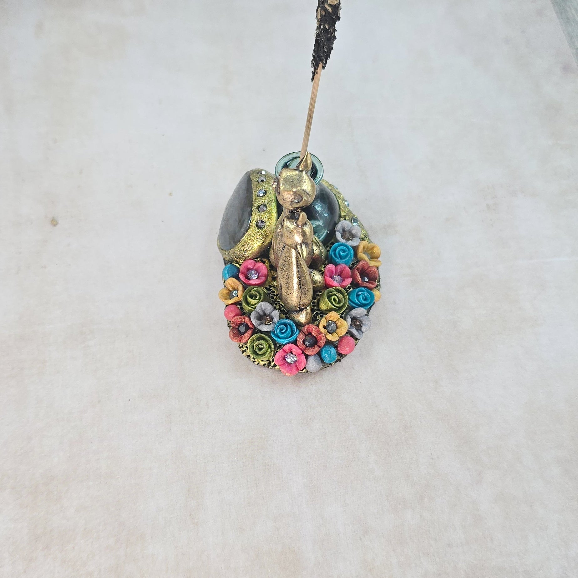 Ši ypatinga smilkalinė – tai daugiau nei tiesiog dekoracija. Ji – mažas rankų darbo talismanas. Įstatyk smilkalą, o šalia padėk nedidelę lėkštelę pelenams ir tegul magija vyksta :)