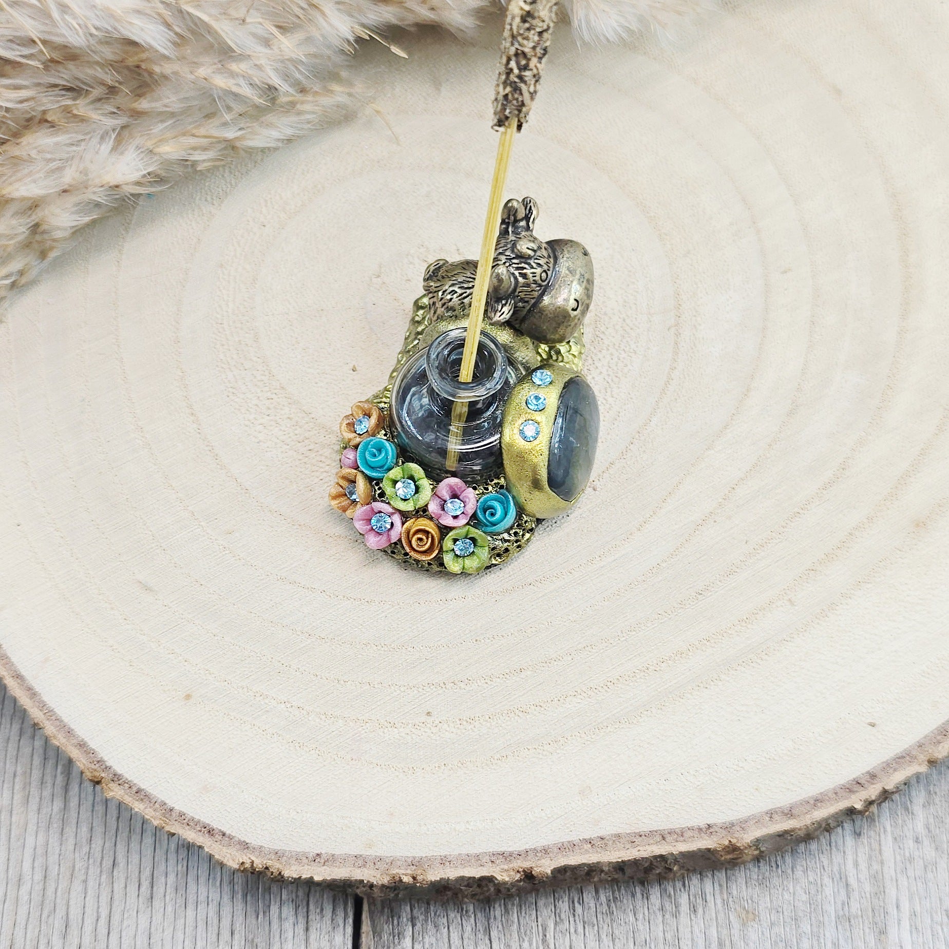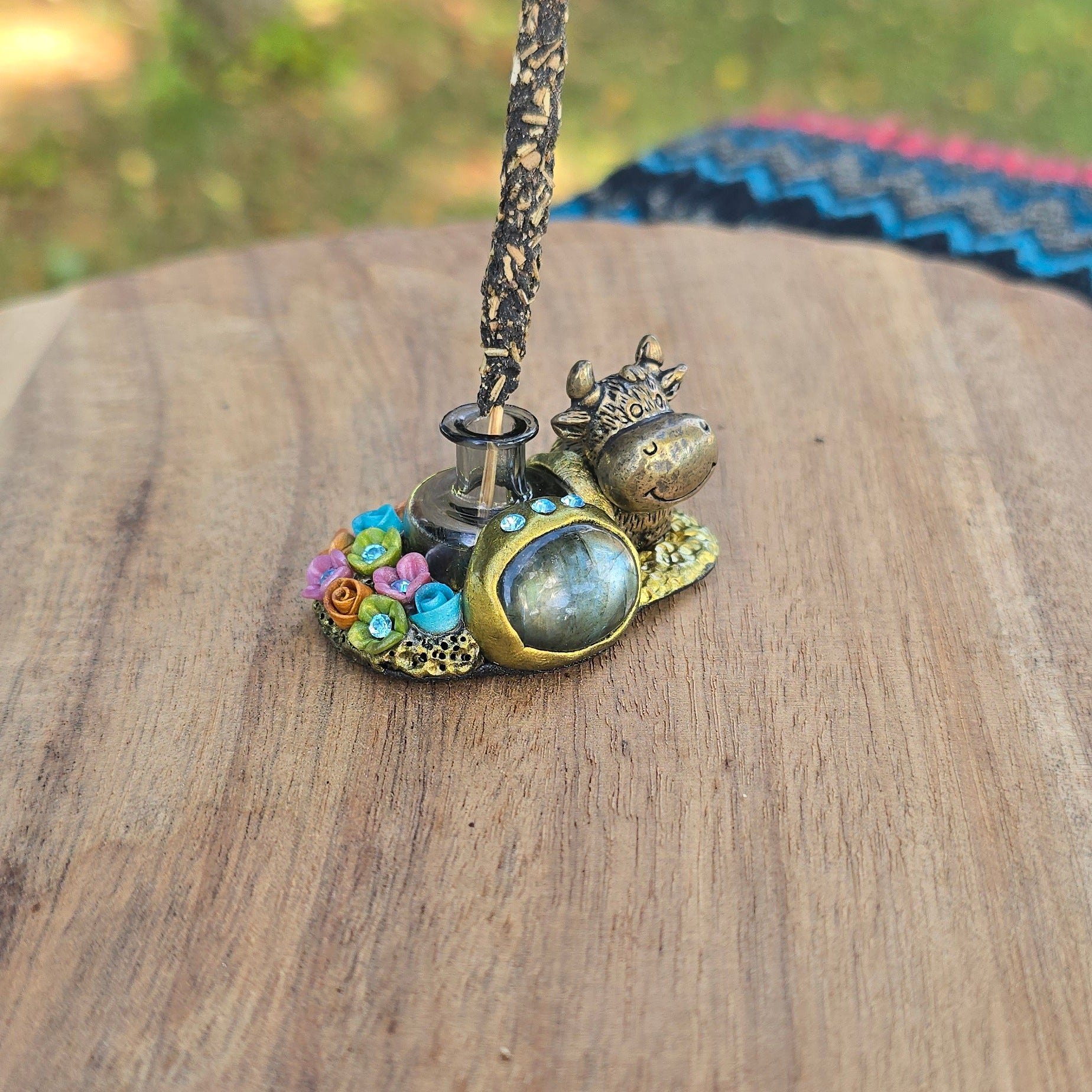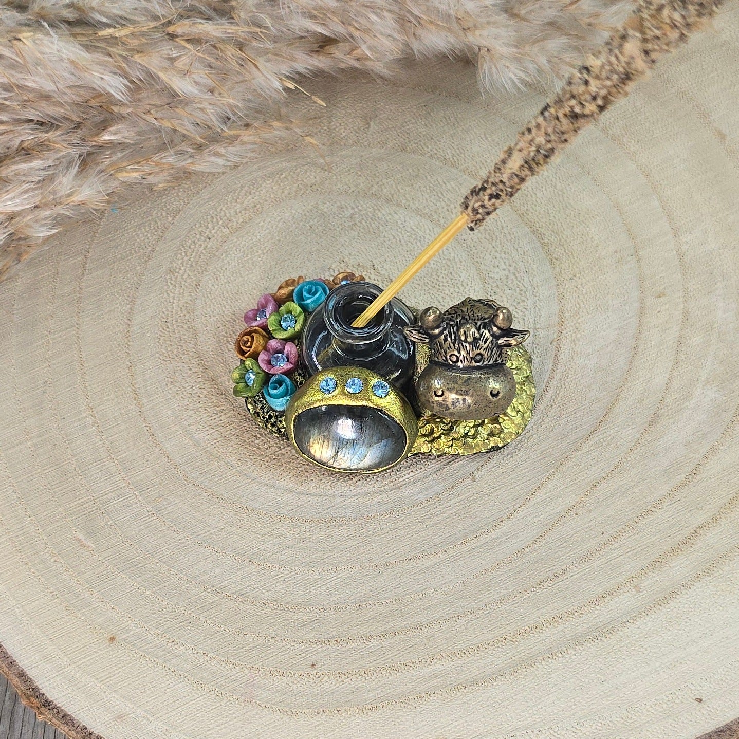 Ši ypatinga smilkalinė – tai daugiau nei tiesiog dekoracija. Ji – mažas rankų darbo talismanas. Įstatyk smilkalą, o šalia padėk nedidelę lėkštelę pelenams ir tegul magija vyksta :)