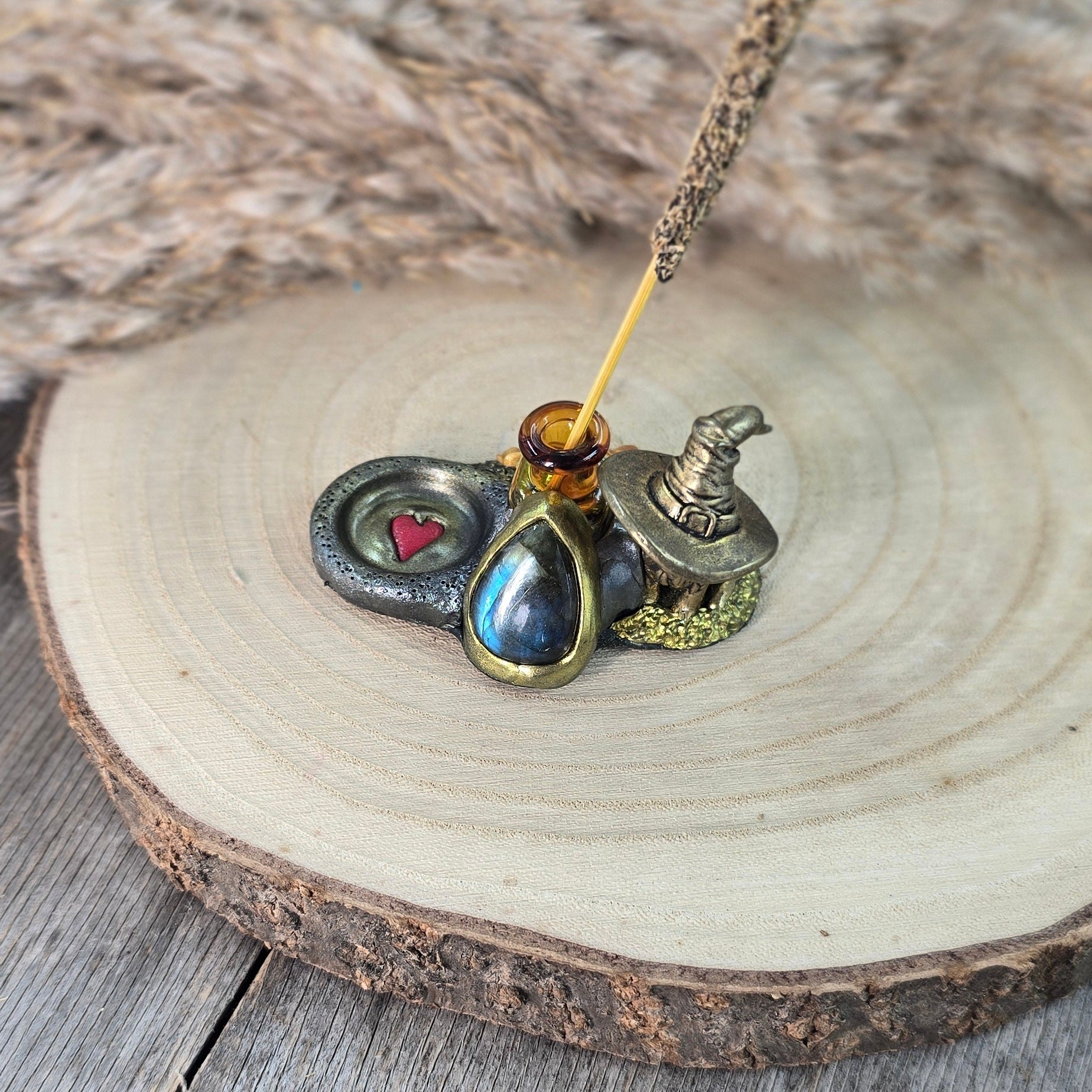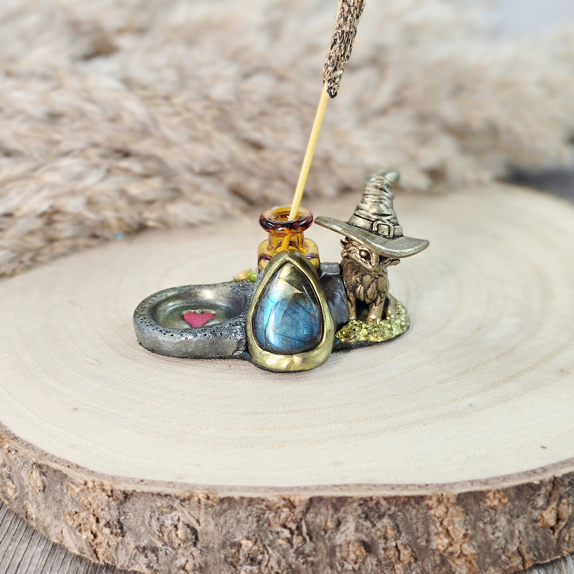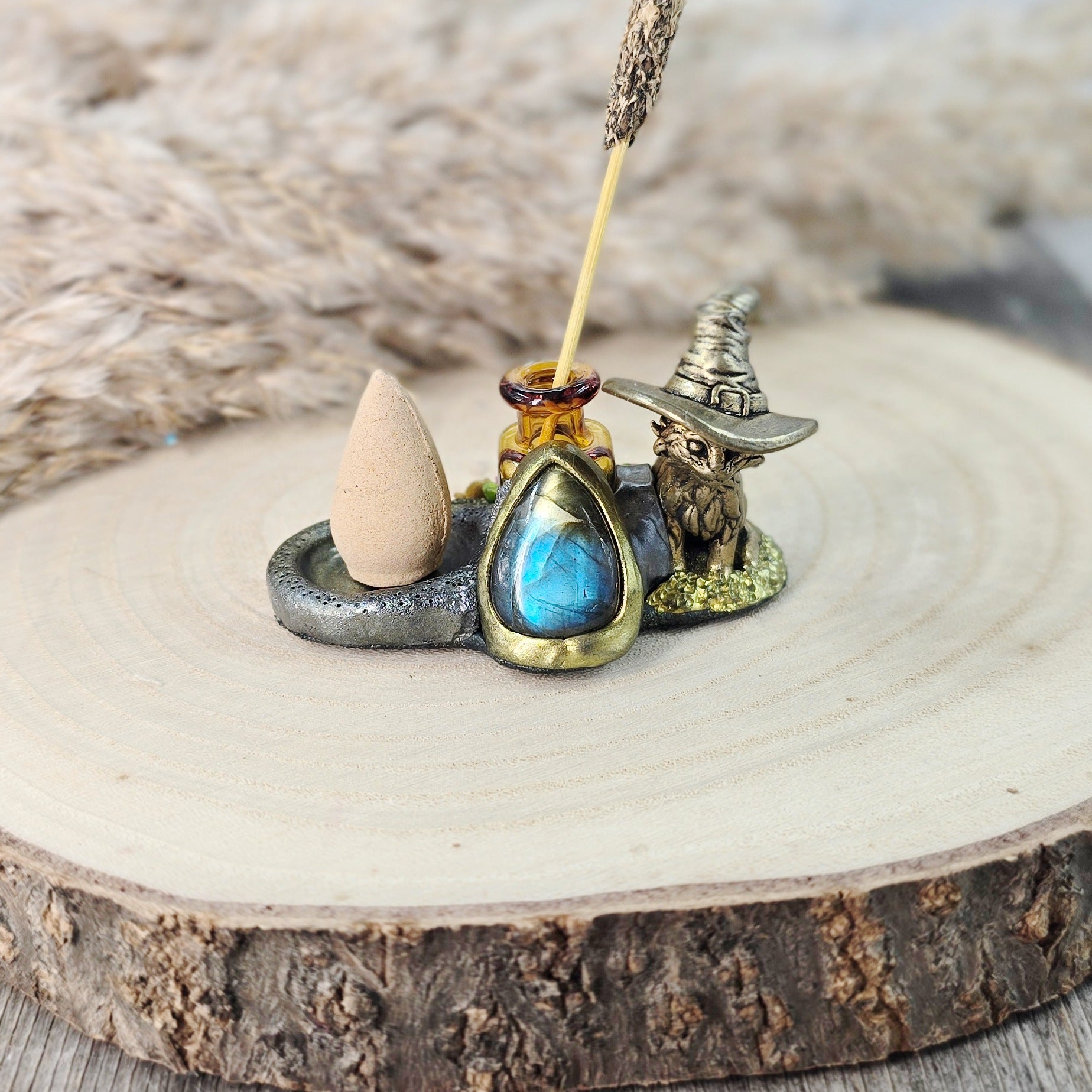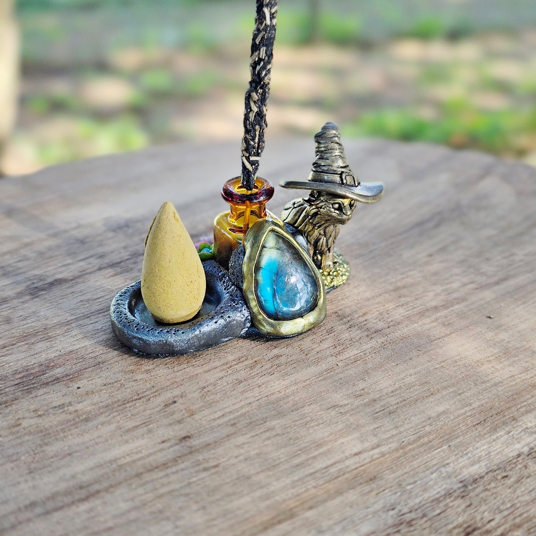 Smilkaline su labradoritu ir katinu (tinka kūginiams smilkalams)