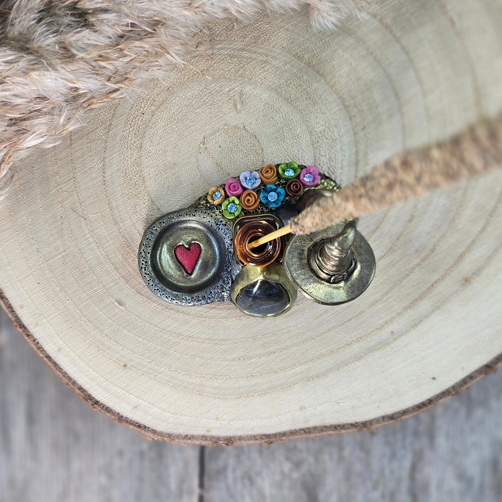Ši ypatinga smilkalinė – tai daugiau nei tiesiog dekoracija. Ji – mažas rankų darbo talismanas. Įstatyk smilkalą, o šalia padėk nedidelę lėkštelę pelenams ir tegul magija vyksta :)