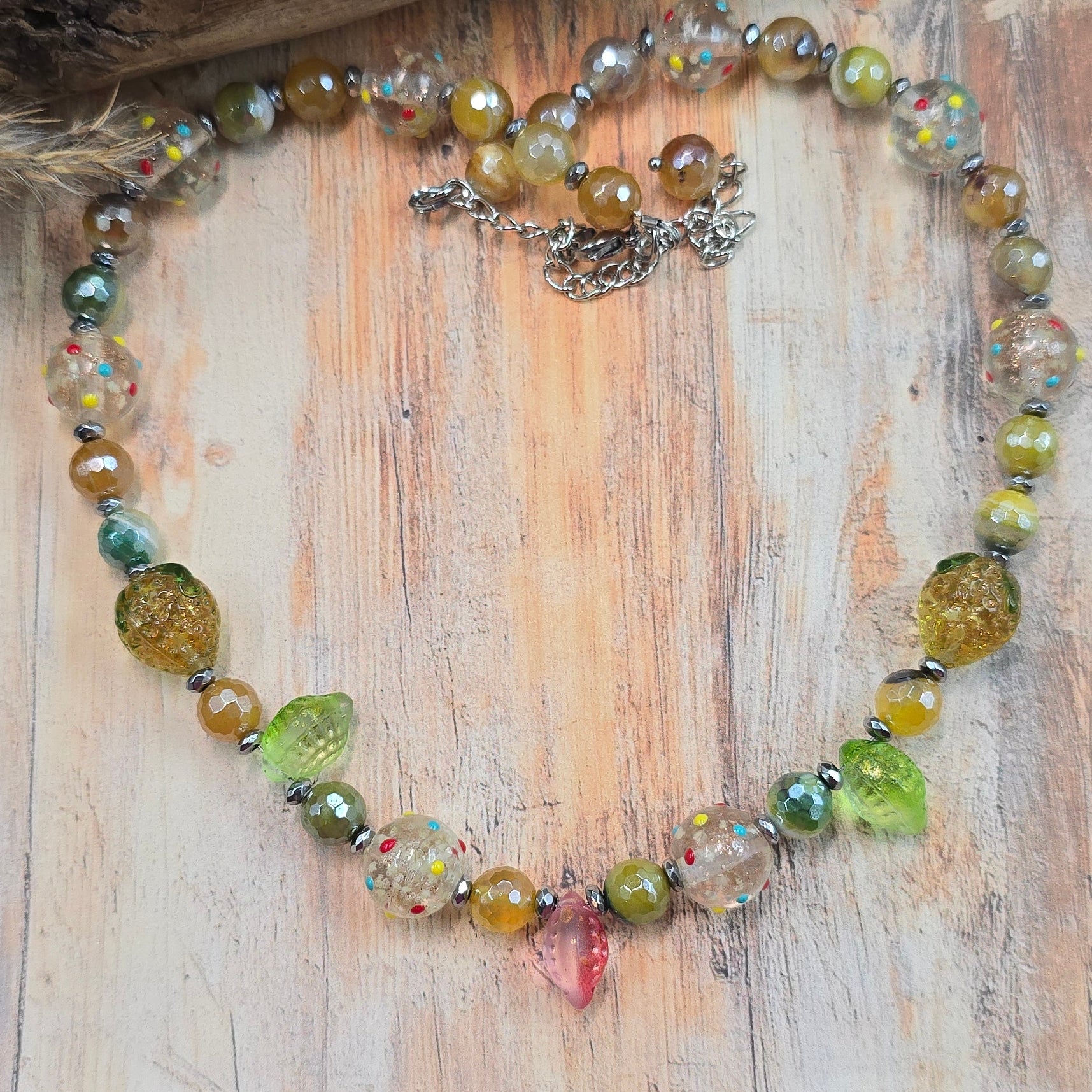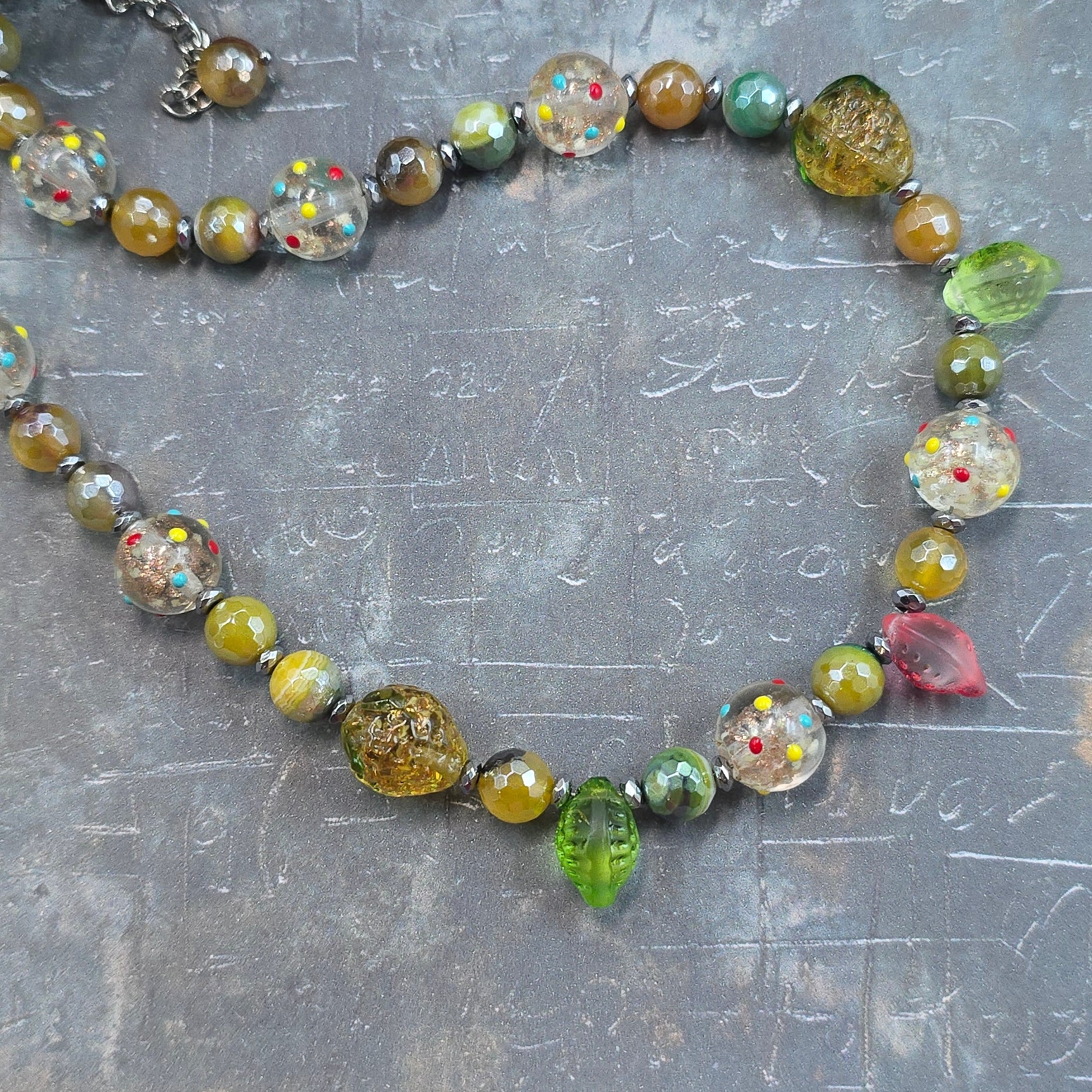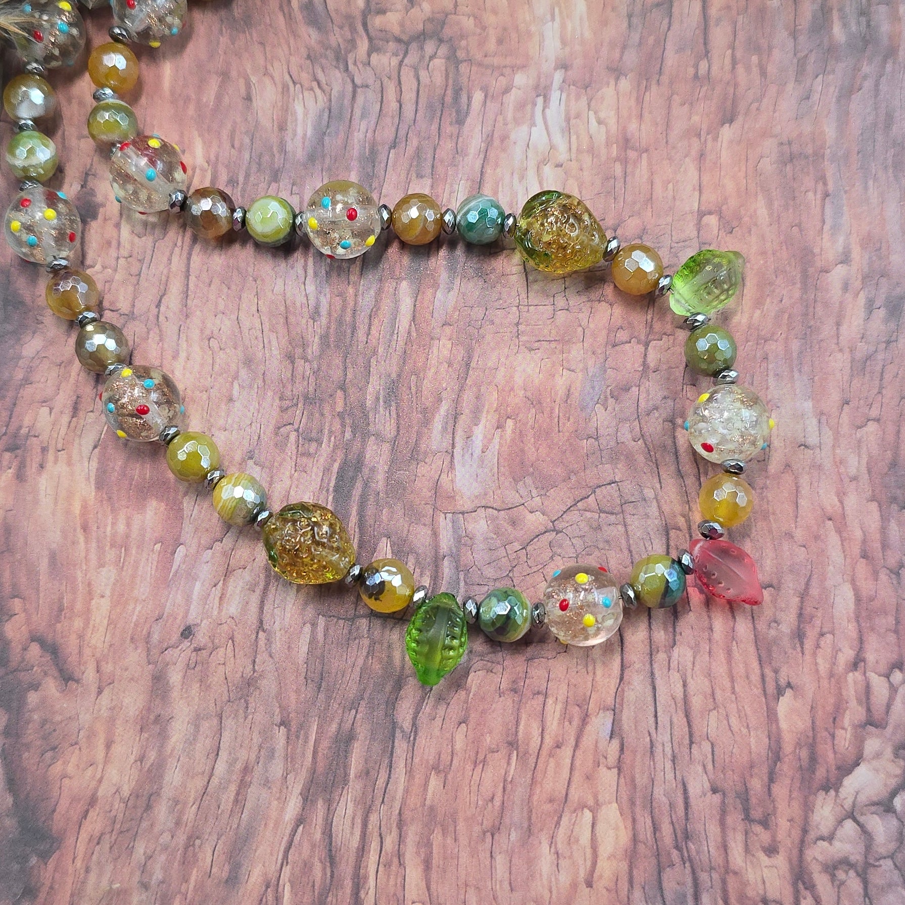 ·Karoliukai nuo 8 mm iki 15 mm, blizgus agatas, stikliniai milefiori karoliukai, hematitas