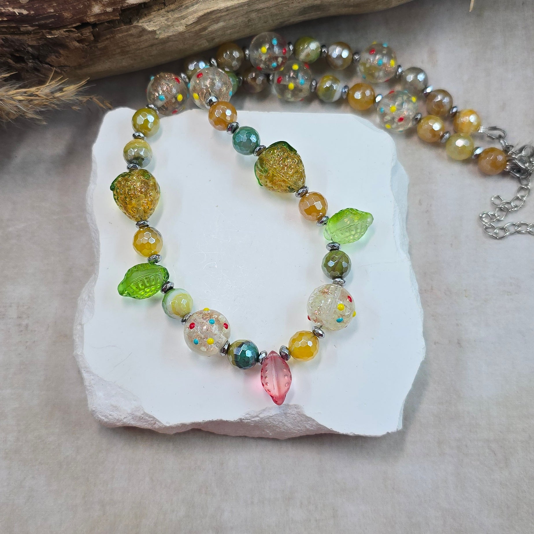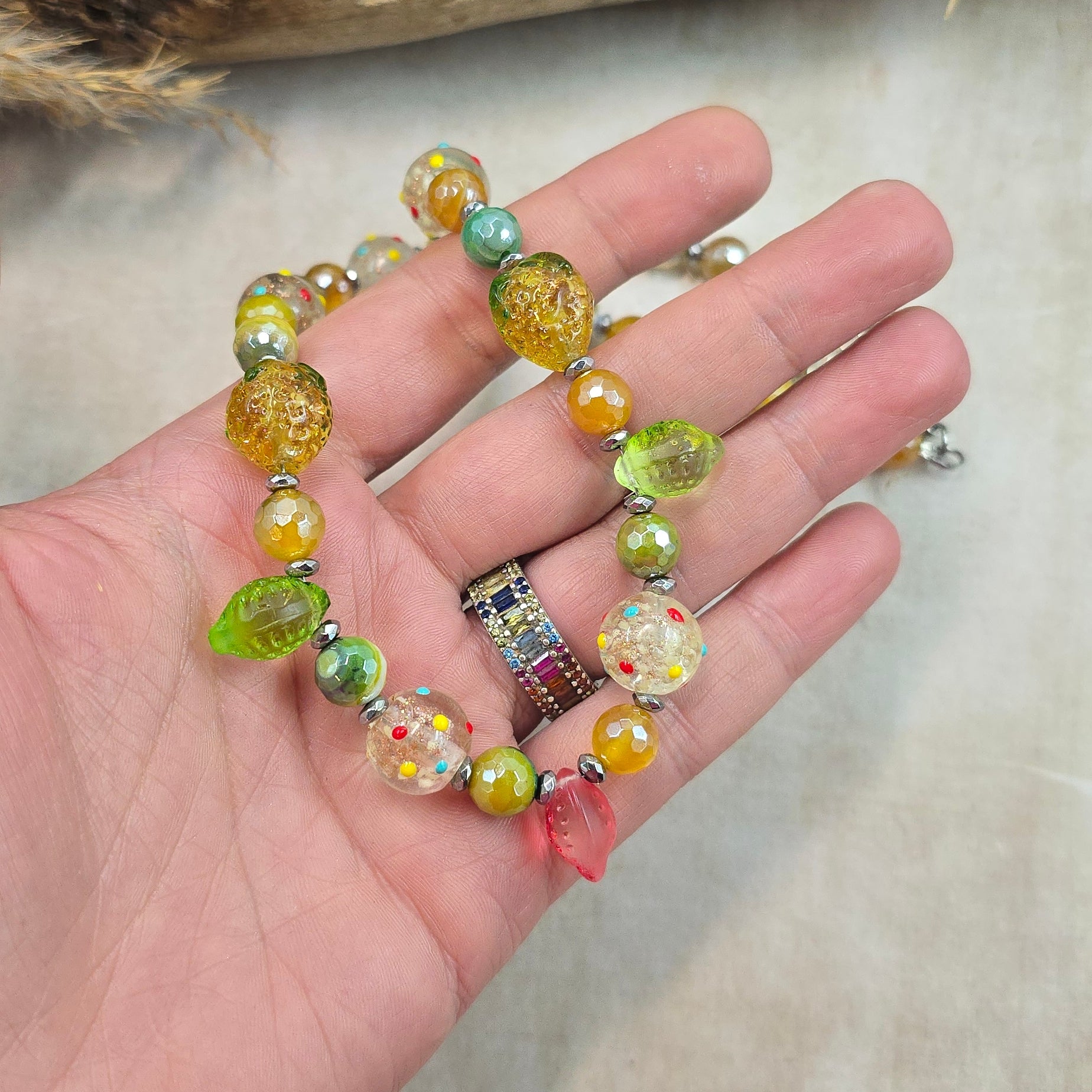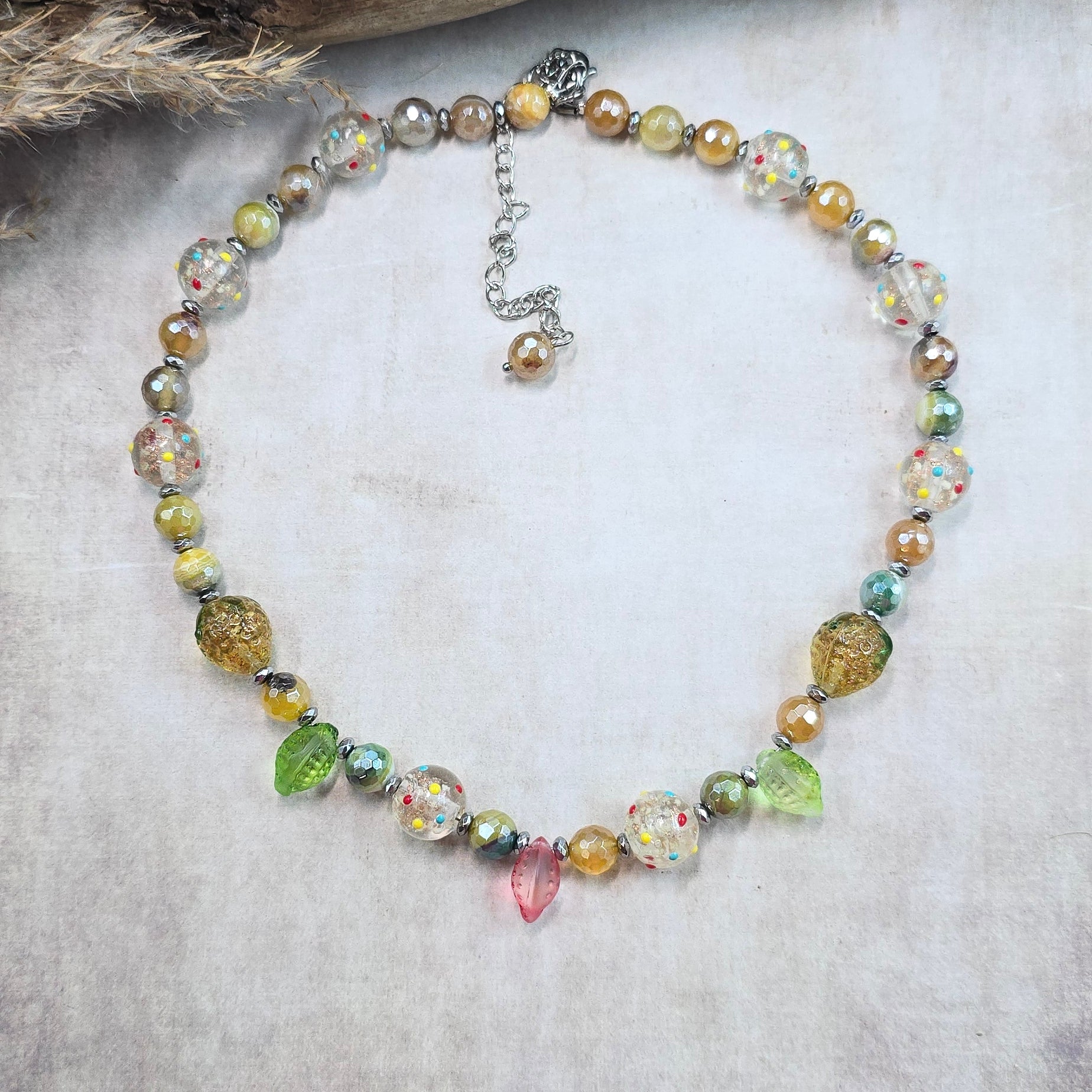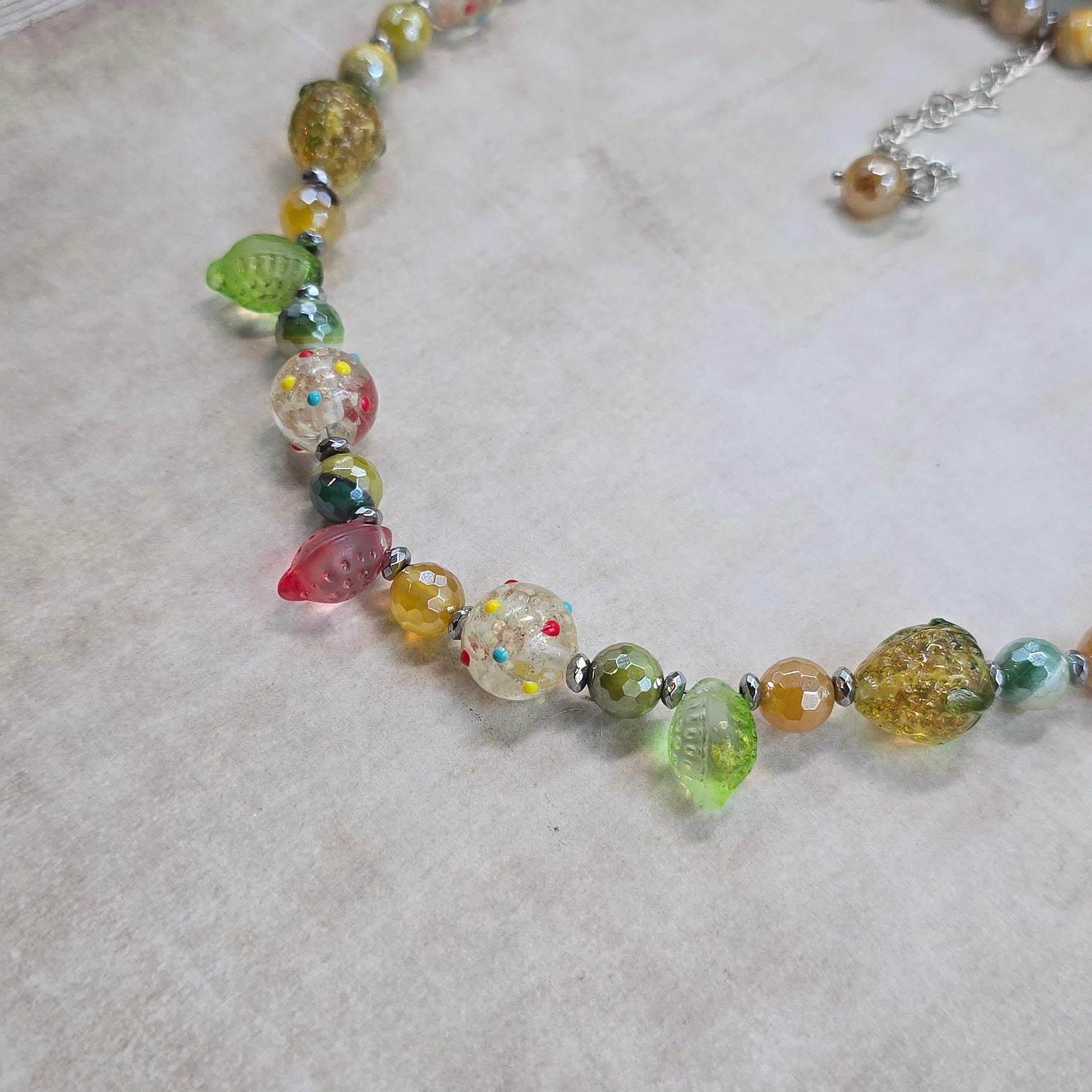 ·Karoliukai nuo 8 mm iki 15 mm, blizgus agatas, stikliniai milefiori karoliukai, hematitas