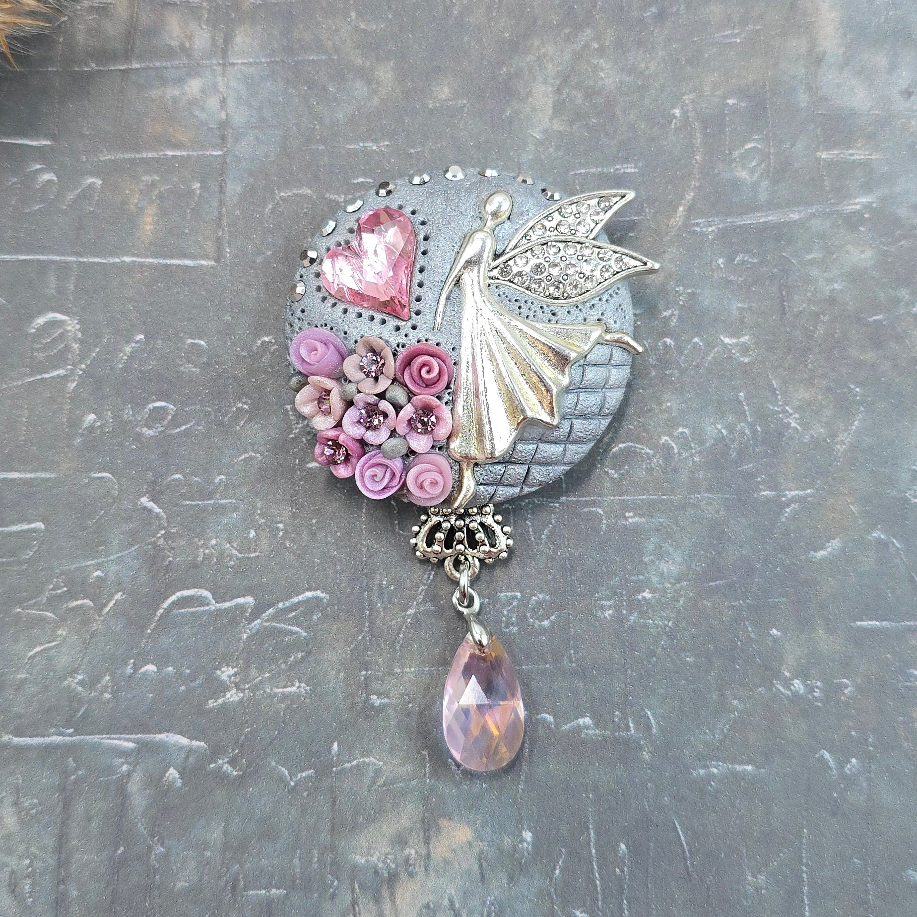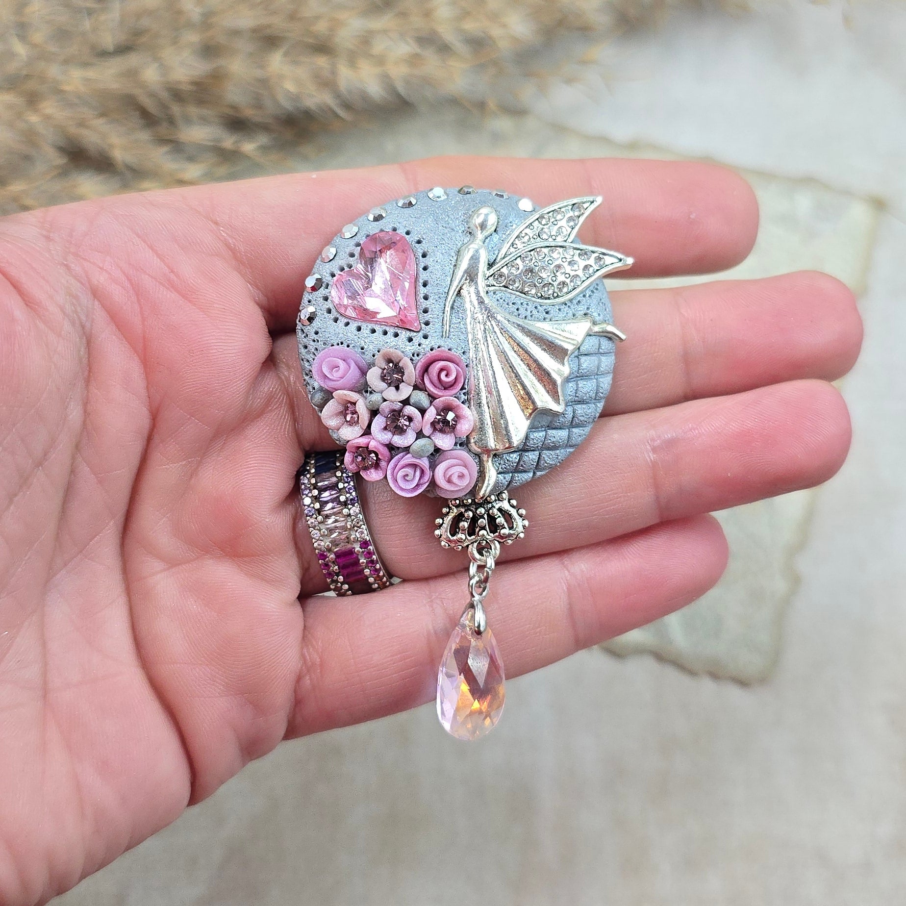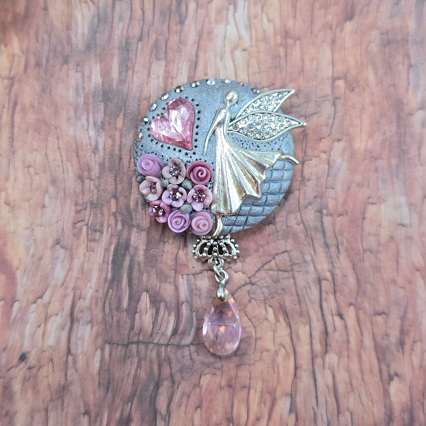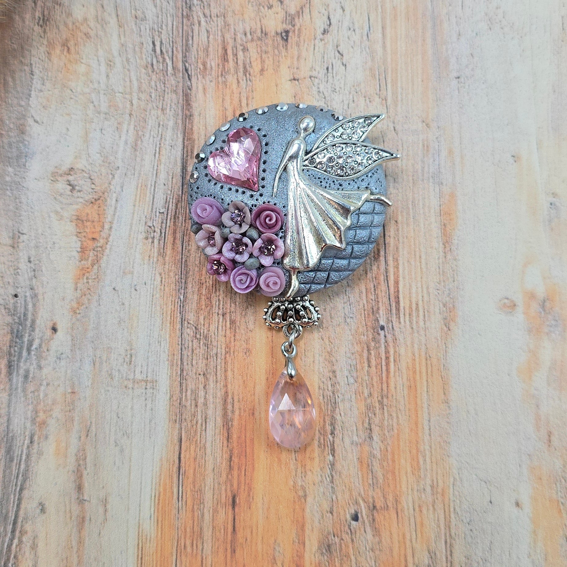 Švelniai rožinė sagė su fėja ir širdele