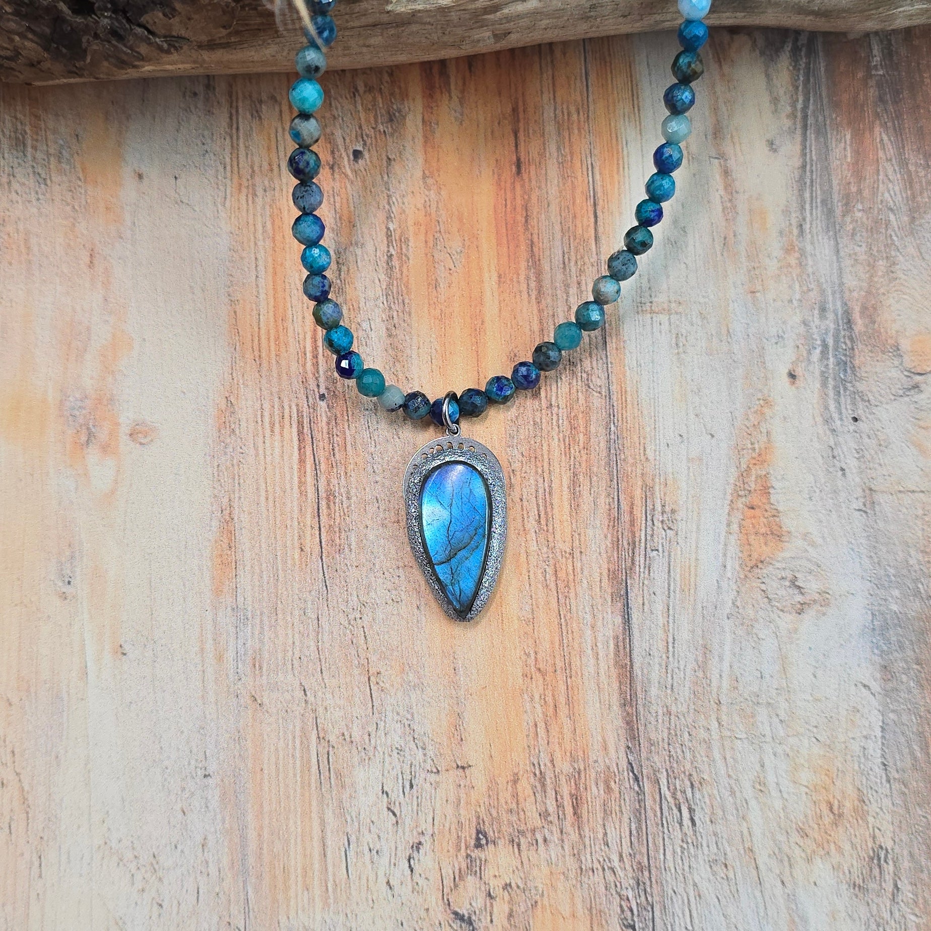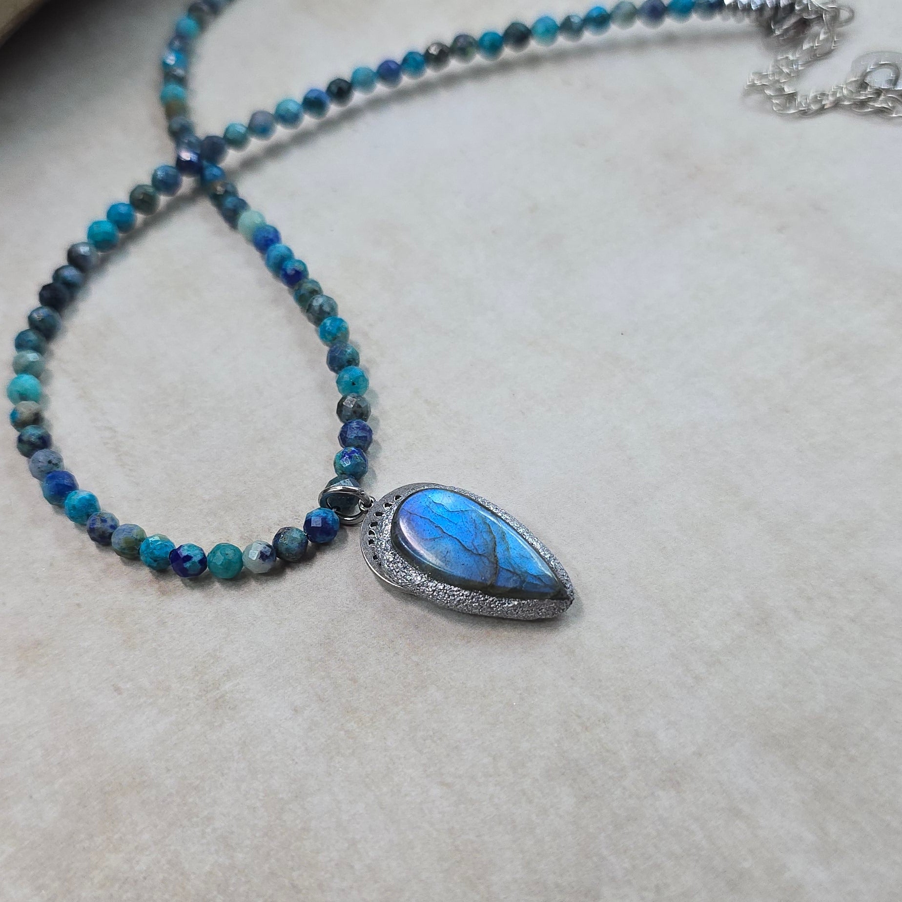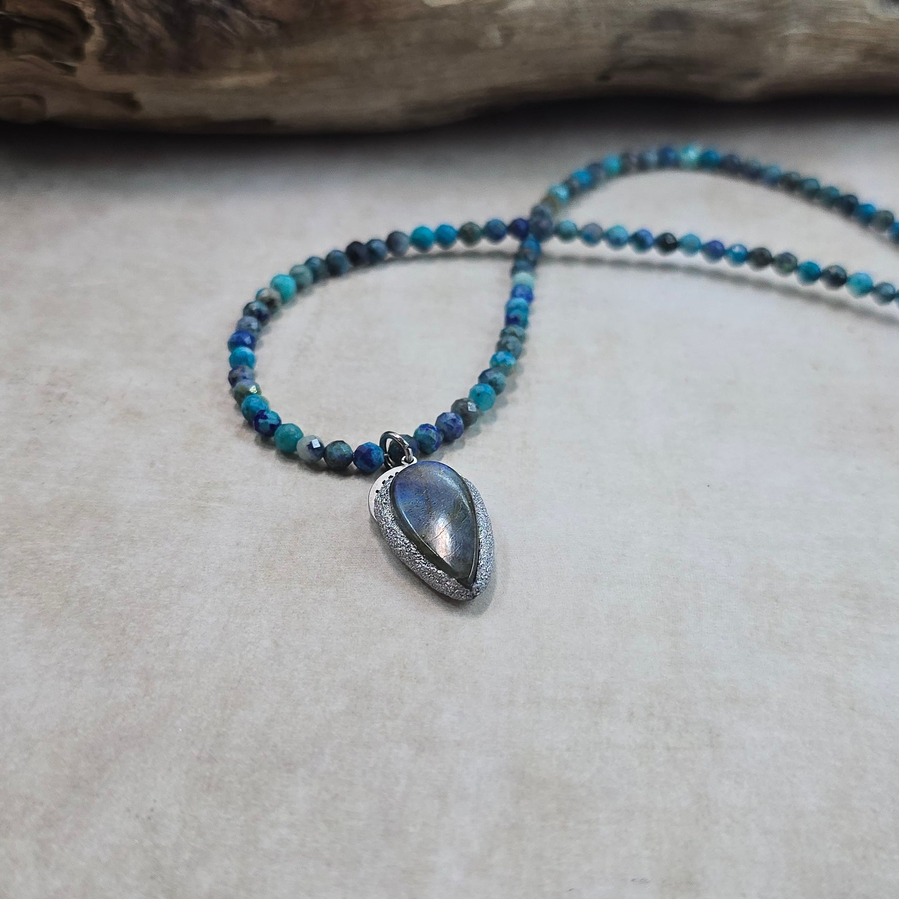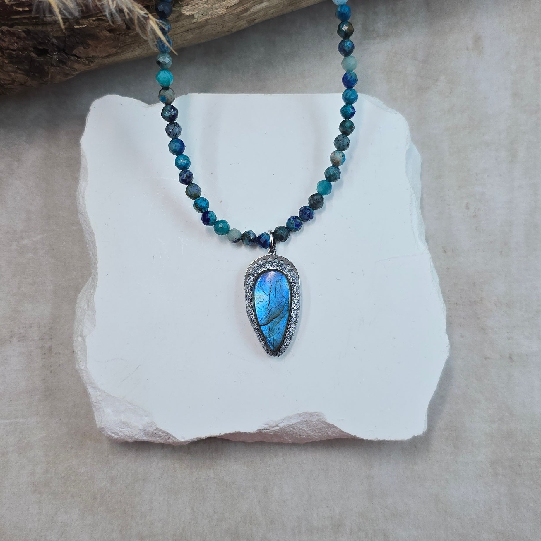 Trumpas vėrinys su labradoritu ir lapis lazuli
