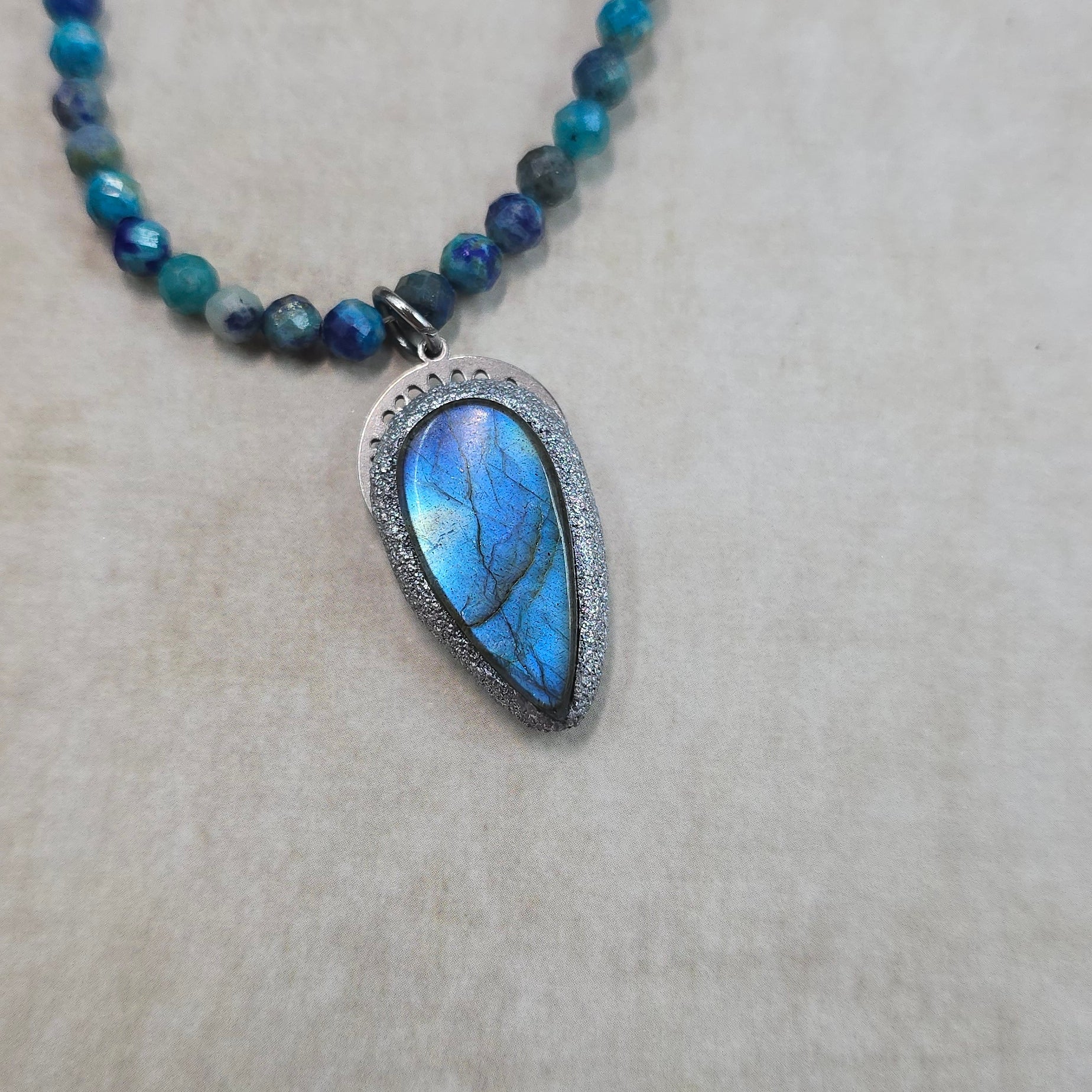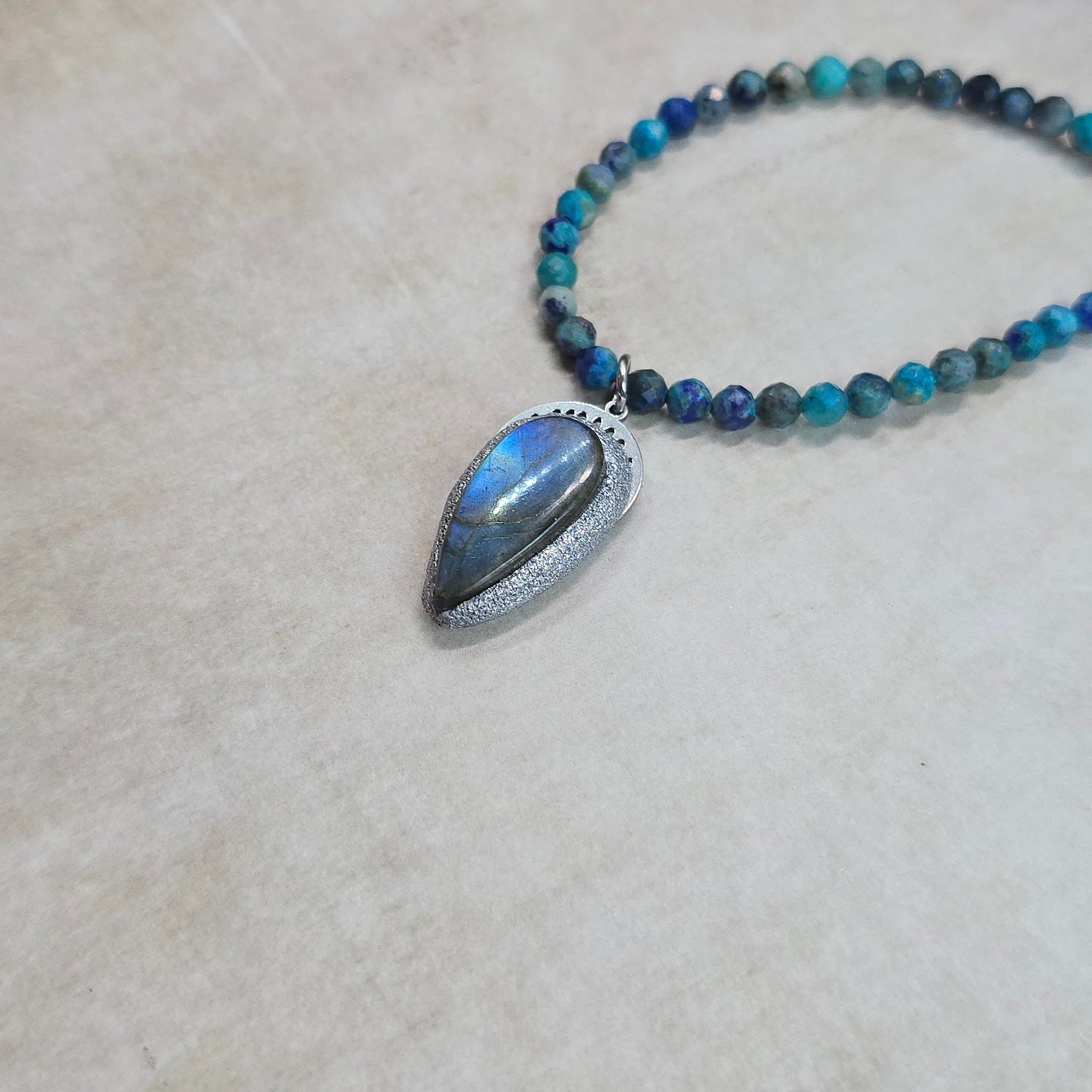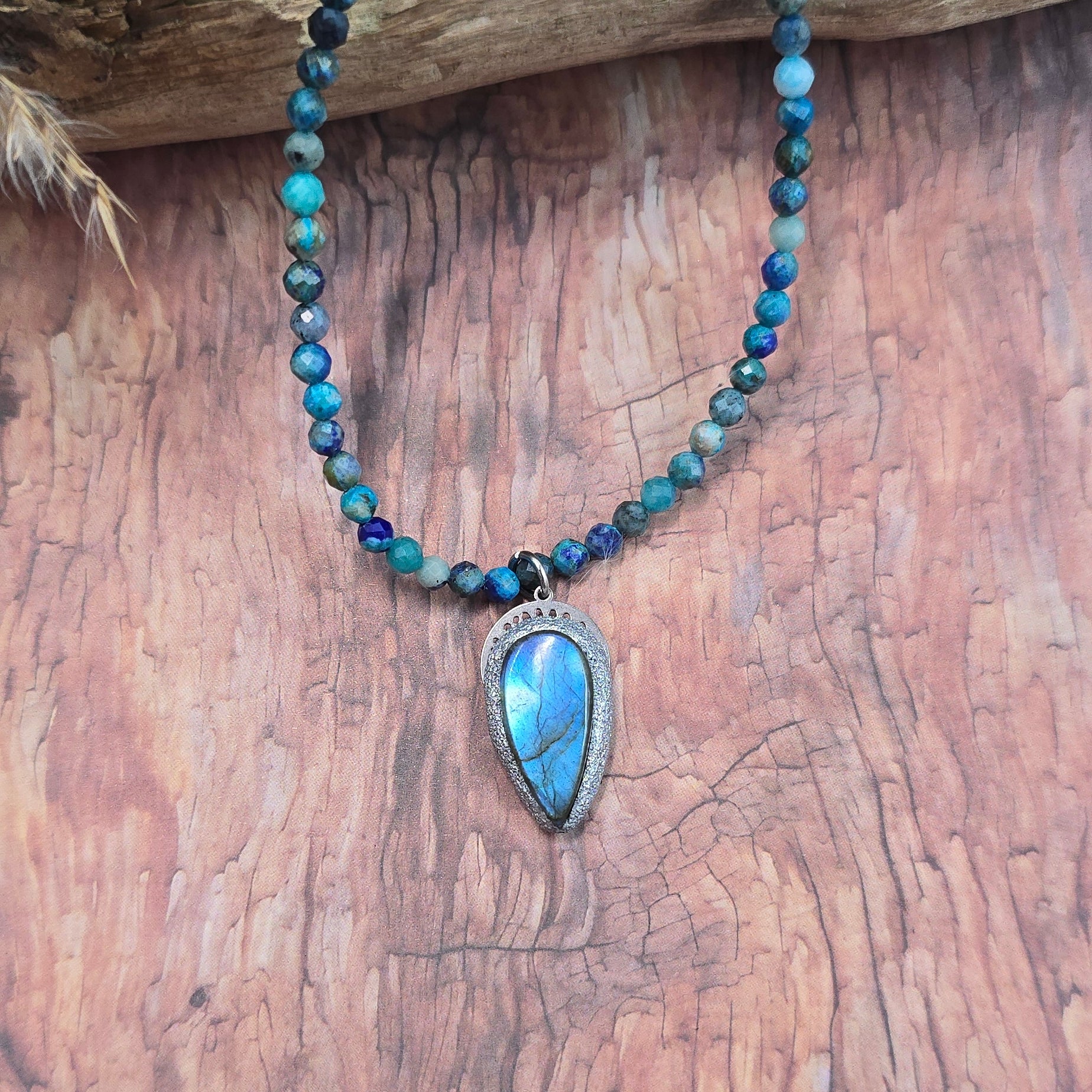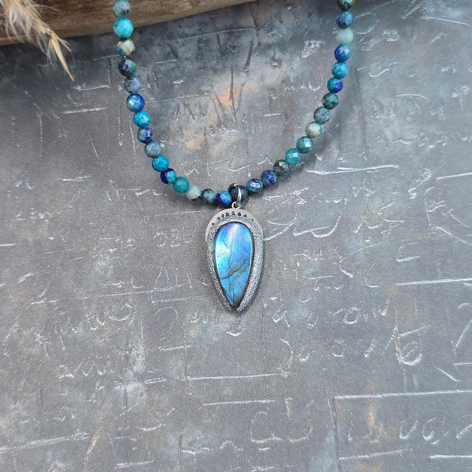 Trumpas vėrinys su labradoritu ir lapis lazuli