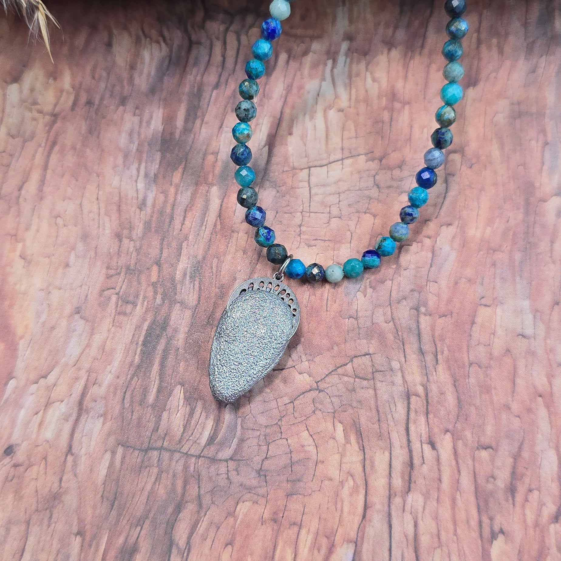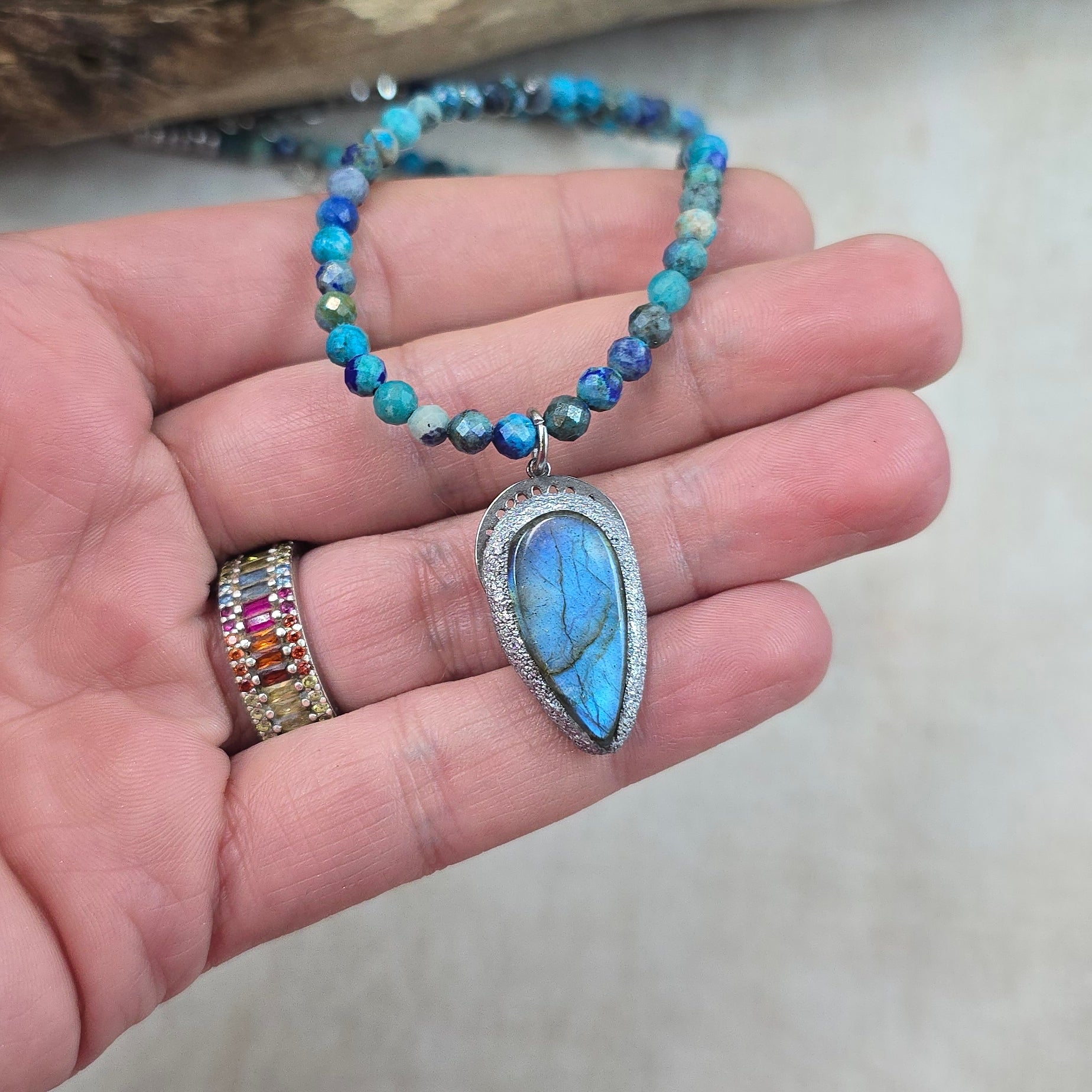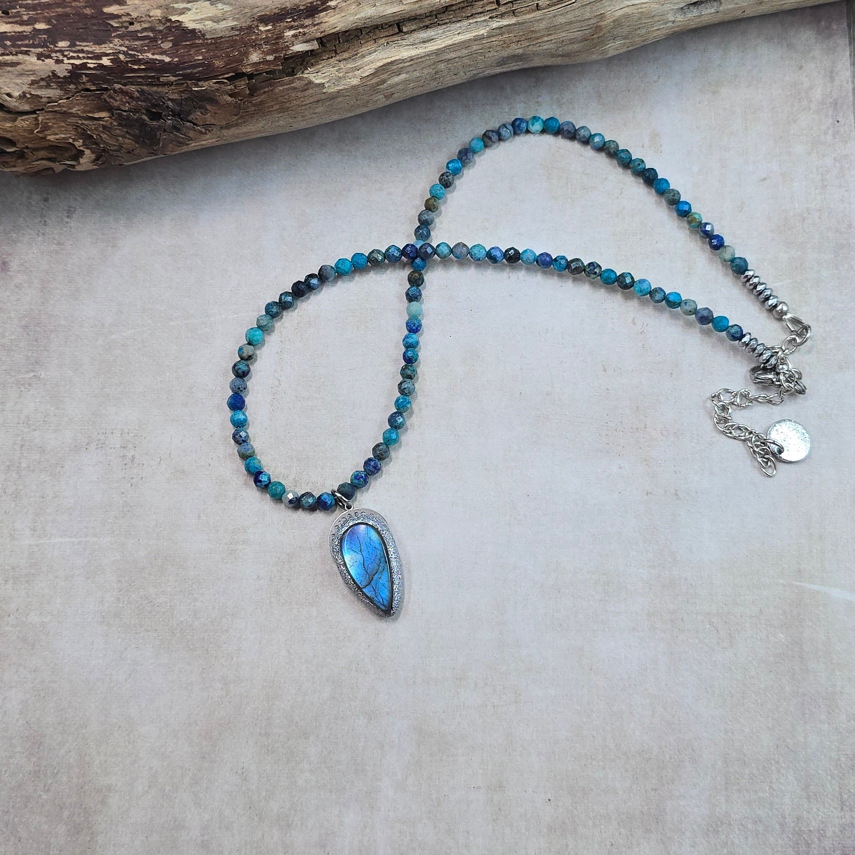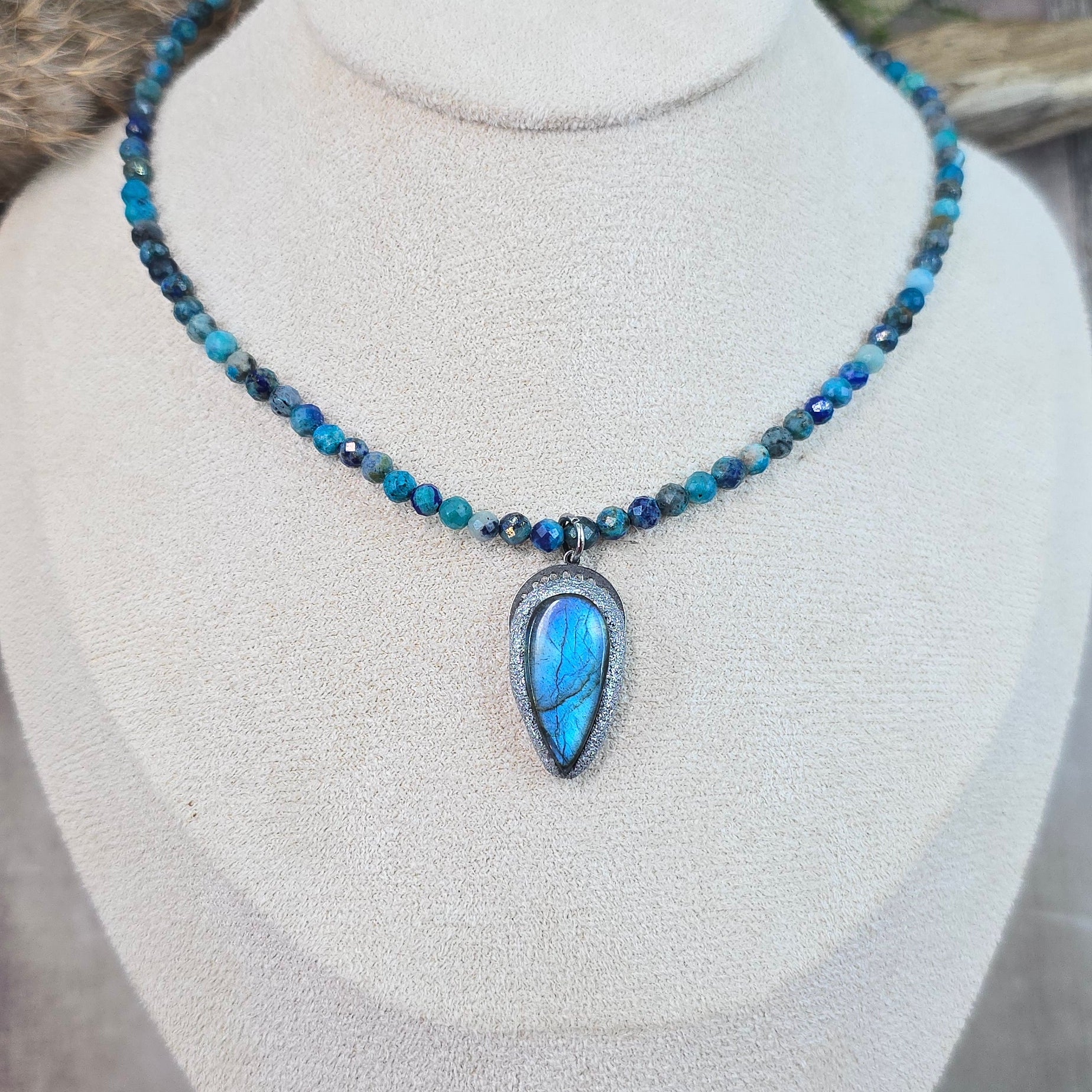 Trumpas vėrinys su labradoritu ir lapis lazuli