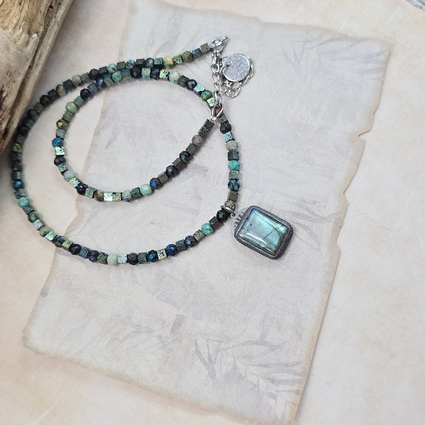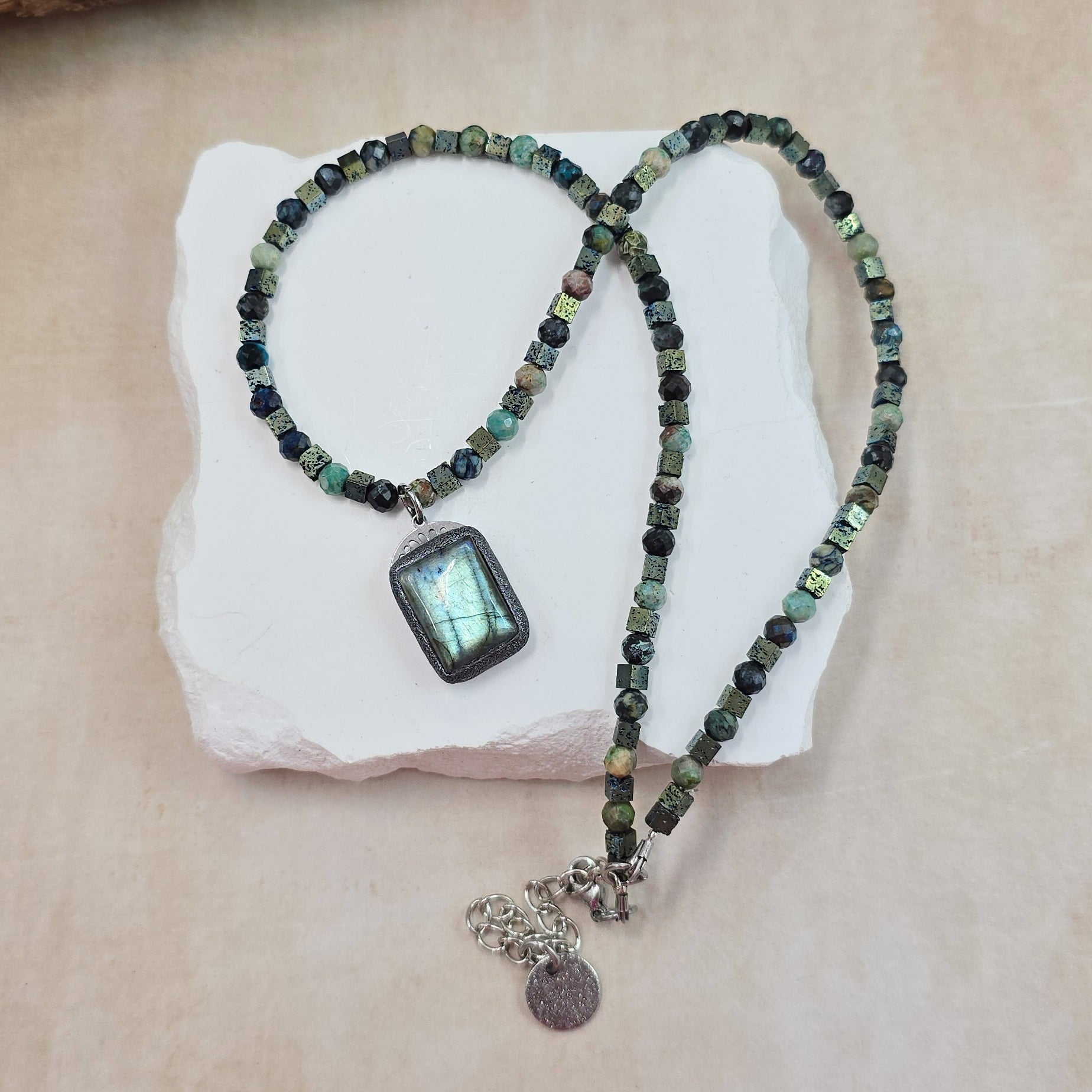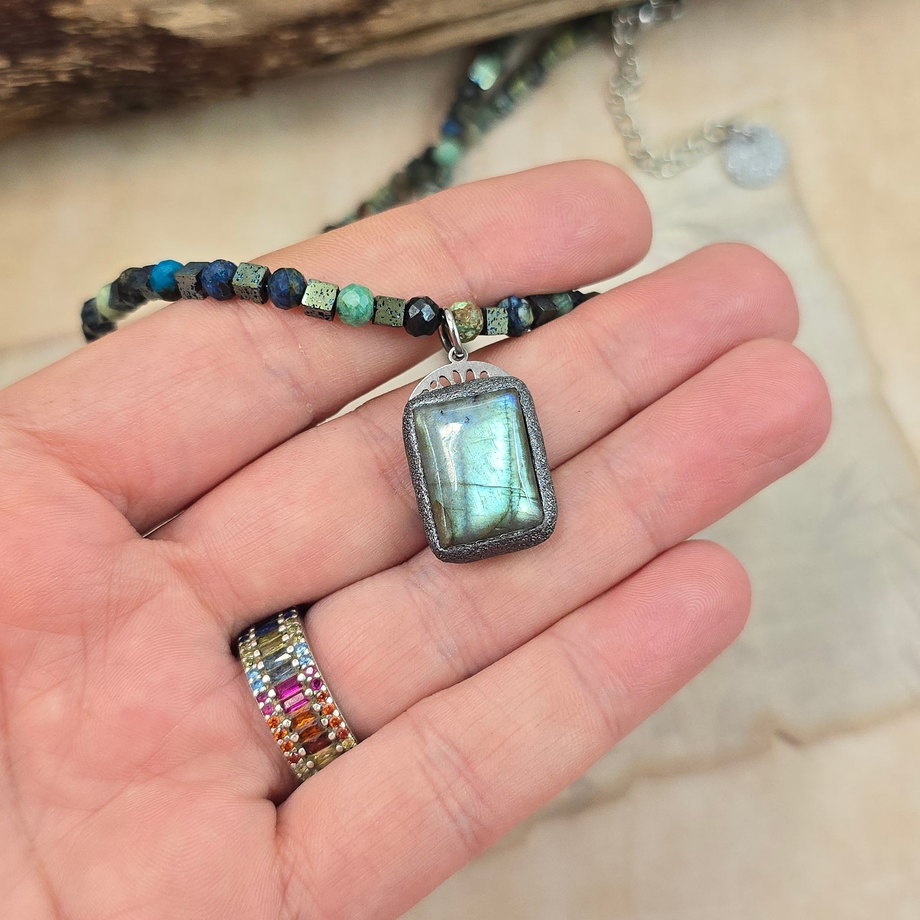 Labradoritas – tai paslapčių ir vidinės magijos akmuo. Jis laikomas stipriu apsauginiu talismanu, saugančiu aurą nuo neigiamos energijos ir padedančiu išlaikyti vidinę pusiausvyrą. Sakoma, kad šis akmuo pažadina intuiciją, sustiprina ryšį su pasąmone ir atveria duris į nematomą pasaulį. Jo švytėjimas – tarsi užuomina į tai, kas slypi giliau, už išorės ribų. Labradoritas skatina tikėti stebuklais, drąsina svajoti ir į pasaulį žvelgti širdimi. Ne veltui jį vadina šamanų ir ieškančiųjų akmeniu – jis primena, kad magija egzistuoja, jei tik pasiryžtame ją pastebėti.