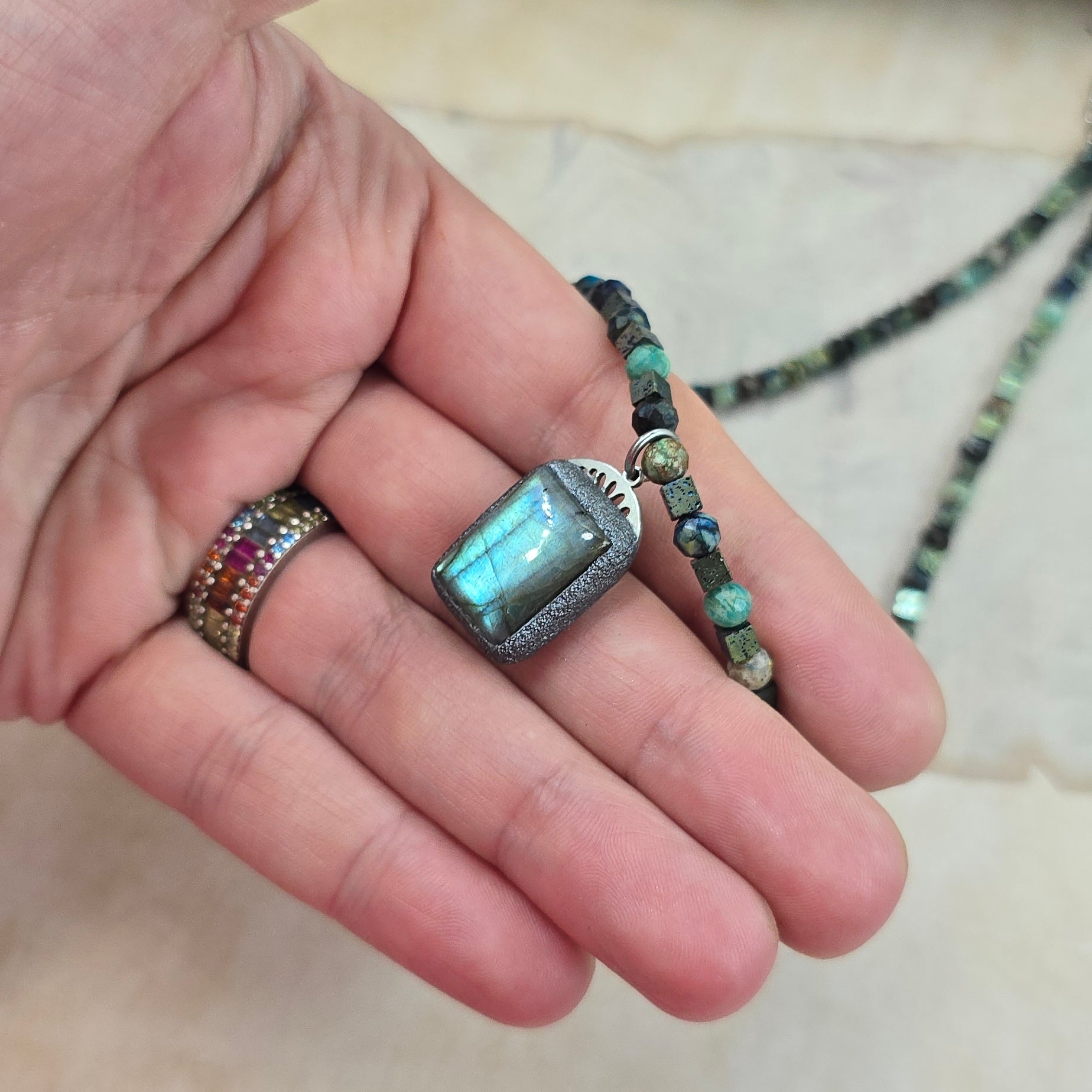 ·Pakabuko su labradoritu dydis: ~2,2x1,5cm