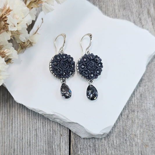 Trumpas vėrinys su juodu cirkoniu ir labradorito pakabuku