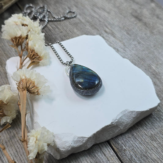 Labradorito pakabukas ant trumpesnės grandinėlės